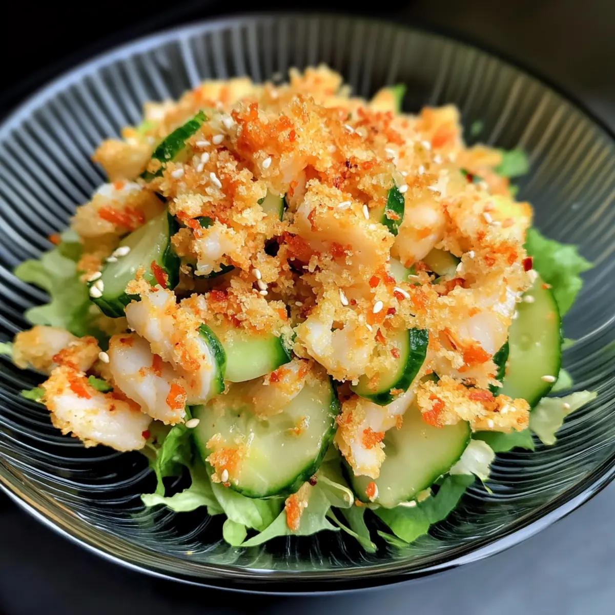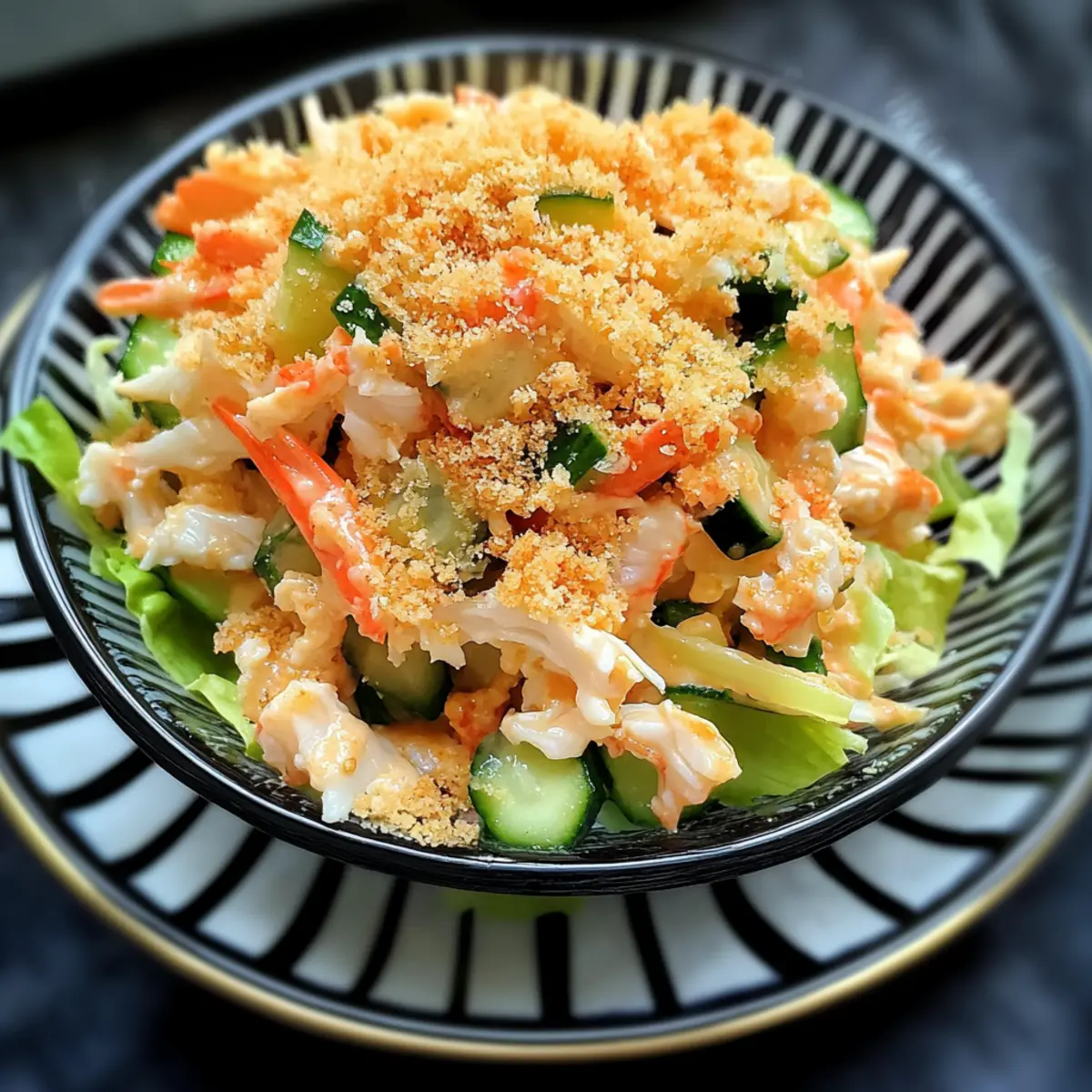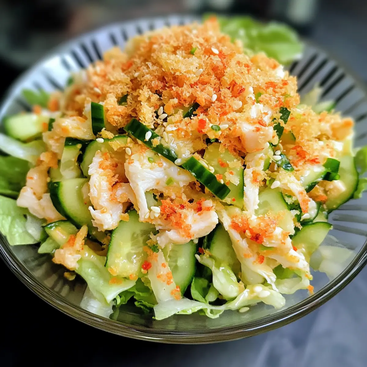 Es war einer dieser warmen Sommerabende, als ich beschloss, etwas Frisches und Leckeres für das Abendessen zuzubereiten. Mit einem Blick in meinen Kühlschrank fand ich die Zutaten für einen scharfen Kani-Salat. Diese köstliche Kombination aus zartem Krabbenfleisch und knackigen Gurken, vermischt mit einer würzigen, cremigen Mayonnaise, verführte nicht nur meinen Gaumen, sondern wird auch Ihre Freunde am Grill begeistern. Perfekt vorzubereiten und glutenfrei, ist dieser Salat nicht nur eine köstliche Option für Ihre nächste Zusammenkunft, sondern auch eine hervorragende Wahl für alle, die eine kohlenhydratarme Ernährung genießen. Sind Sie bereit, Ihre Geschmacksnerven zu kitzeln und mehr über dieses einfache, aber beeindruckende Rezept zu erfahren? Warum sollten Sie diesen Kani-Salat probieren? Aromatische Frische: Der scharfe Kani-Salat vereint zartes Krabbenfleisch mit knackigen Gurken und bietet somit ein außergewöhnliches Geschmackserlebnis. Einfach zuzubereiten: Mit nur wenigen Zutaten und einfachen Schritten ist dieser Salat schnell und unkompliziert, ideal für Ihre nächste Grillparty oder einen entspannten Abend. Gesunde Wahl: Der Salat ist glutenfrei und lässt sich problemlos in eine kohlenhydratarme Ernährung integrieren – perfekt für Gesundheitsbewusste! Vielseitig anpassbar: Ob mit Imitationskrabben oder echten Krabben, jeder kann seinen Lieblingsgeschmack finden. Sie können auch den Schärfegrad nach Ihren Wünschen anpassen. Attraktive Präsentation: Die ansprechende Optik auf einem Bett aus frischem grünen Salat macht diesen Salat zu einem echten Hingucker auf dem Tisch. Schauen Sie sich auch unsere anderen leckeren Rezepte wie Suesser Und Blumenkohl an, um mehr Inspiration zu finden! Scharfer Kani-Salat Zutaten Für den Salat • Krabbenfleisch – Hauptprotein, nutzen Sie entweder Imitationskrabben oder frisches Krabbenfleisch für reicheren Geschmack. • Gurke – Für den Crunch, verwenden Sie entkernte Gurken, die in Streifen geschnitten sind, um die richtige Textur zu erzielen. • Mayonnaise – Bindet die Zutaten und sorgt für Cremigkeit; Kewpie-Mayonnaise ist besonders lecker, aber normale Mayonnaise funktioniert auch. • Sriracha – Fügt Würze und Geschmack hinzu; passen Sie die Menge je nach gewünschtem Schärfegrad an. • Zitronensaft – Bringt den Geschmack zum Leuchten und fügt eine angenehme Säure hinzu. • Mirin – Süßt das Dressing; kann durch Sake, Reisessig oder trockenen Sherry ersetzt werden. • Panko-Brösel – Liefert den Crunch; glutenfreies Panko wird empfohlen, um empfindlichen Personen gerecht zu werden. • Butter – Wird verwendet, um Panko-Brösel für zusätzlichen Geschmack zu rösten. • Sesamkörner (optional) – Garnierung für eine ansprechende Optik. • Zerhackter Salat – Basis für die Servierung, sorgt für Frische. Für die Garnitur • Frische Kräuter – Ein Hauch von Koriander oder Schnittlauch sorgt für zusätzliche Aromen und visuelle Attraktivität. Schritt-für-Schritt-Anleitung für scharfer Kani-Salat Step 1: Panko rösten In einer Pfanne die Butter bei mittlerer Hitze schmelzen und die Panko-Brösel hinzufügen. Rösten Sie die Brösel unter häufigem Rühren, bis sie goldbraun und duftend sind, was etwa 5 Minuten dauern sollte. Achten Sie darauf, dass sie nicht verbrennen, und lassen Sie sie anschließend abkühlen, damit sie knusprig bleiben. Step 2: Dressing vorbereiten In einer Schüssel Mayonnaise, Sriracha, Zitronensaft und Mirin (wenn verwendet) gut vermischen. Rühren Sie alles zusammen, bis eine homogene Masse entsteht, und stellen Sie die Schüssel dann für mindestens 10 Minuten in den Kühlschrank, um die Aromen gut durchziehen zu lassen und das Dressing erfrischend kühl zu halten. Step 3: Zutaten kombinieren In einer mittleren Schüssel die in Streifen geschnittenen Gurken und das zarte Krabbenfleisch zusammengeben. Gießen Sie das vorbereitete Sriracha-Dressing über die Mischung und heben Sie alles vorsichtig unter, bis die Zutaten gleichmäßig bedeckt sind. Stellen Sie sicher, dass die Gurken und das Krabbenfleisch gut vermengt sind, bevor Sie mit dem nächsten Schritt fortfahren. Step 4: Salat anrichten Kurz vor dem Servieren die Mischung auf einem Bett aus zerhacktem Salat anrichten. Streuen Sie die angerösteten Panko-Brösel und nach Belieben Sesamkörner darüber. Der scharfe Kani-Salat sollte frisch und bunt präsentiert werden, um seinen vollen Geschmack und die Textur zur Geltung zu bringen. Was passt gut zu scharfem Kani-Salat? Um das Geschmackserlebnis Ihres scharfen Kani-Salats zu vervollständigen, probieren Sie diese köstlichen Beilagen und Getränke. Jede Kombination bringt zusätzliche Aromen und Texturen auf den Tisch! Geröstete Süßkartoffeln: Die süße Note von karamellisierten Süßkartoffeln harmoniert hervorragend mit der Schärfe des Salats und ergänzt die Textur. Kokosreis: Fluffiger Kokosreis ist eine perfekte Beilage, die die Gewürze des Salats sanft ausgleicht und eine tropische Note hinzufügt. Quinoa-Salat: Ein leichter, frischer Quinoa-Salat mit Gemüse und Zitrus-Dressing bringt eine gesunde, knackige Komponente in Ihr Menü. Zitronen-Limonade: Ein erfrischendes Getränk, das die Schärfe des Kani-Salats perfekt abschmeckt, während die Zitronennoten die Frische Ihres Essens unterstreichen. Miso-Suppe: Diese herzhafte Suppe schafft einen wunderbaren Kontrast und erwärmt die Seele, während der Umami-Geschmack die Krabbenaromen ergänzt. Frischer Obstsalat: Kombinieren Sie Ihren Salat mit einem bunten Obstsalat, um süße, fruchtige Akzente zu setzen, die den Geschmack abrunden und erfrischen. Genießen Sie die harmonischen Kombinationen und lassen Sie sich inspirieren! Scharfer Kani-Salat: Vorbereitungsanleitung für vielbeschäftigte Köche Der scharfe Kani-Salat ist perfekt für die Meal Prep! Sie können das Dressing bis zu 24 Stunden im Voraus zubereiten und im Kühlschrank aufbewahren, um die Aromen zu intensivieren. A