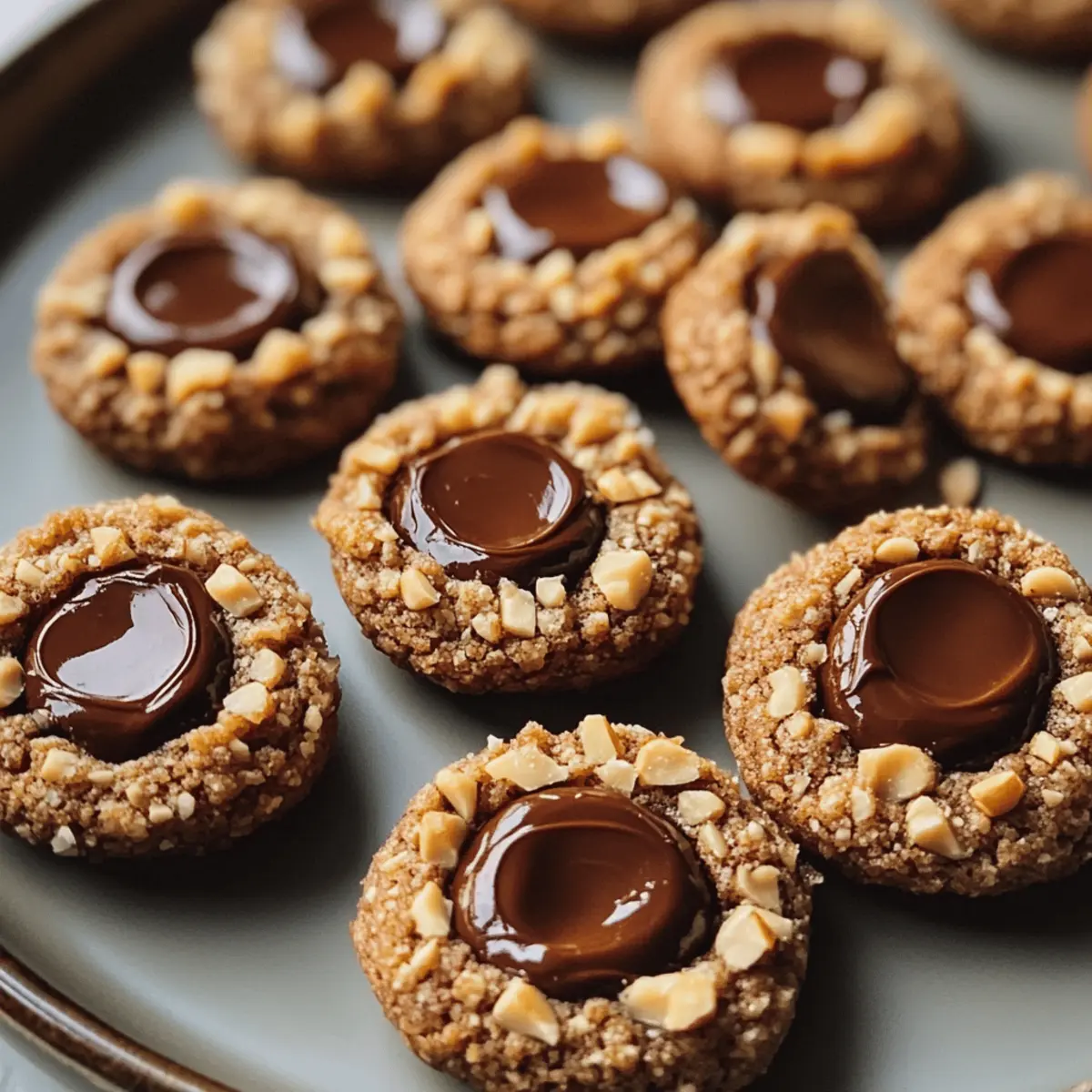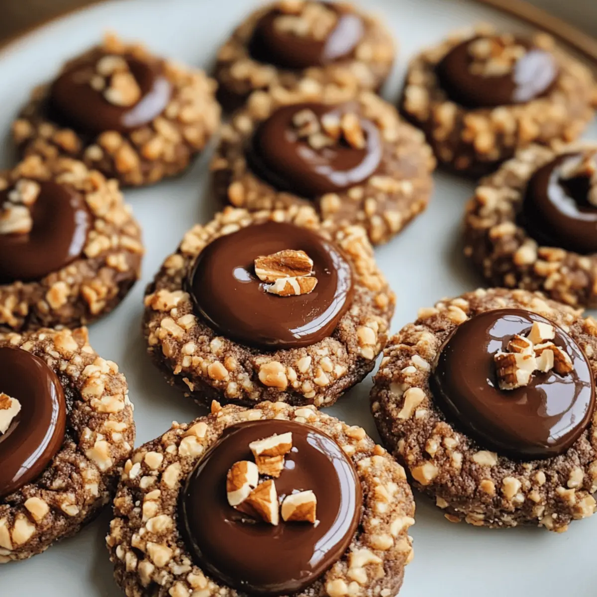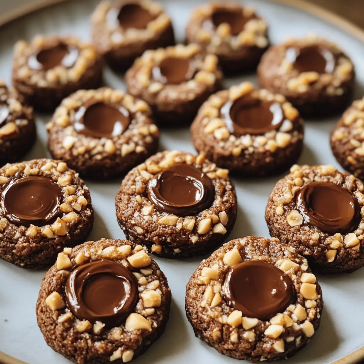 Köstliche Schokoladen-Haselnuss-Daumenabdruckkekse, die reichhaltig und buttrig sind. Der perfekte Genuss für Schokoladenliebhaber!