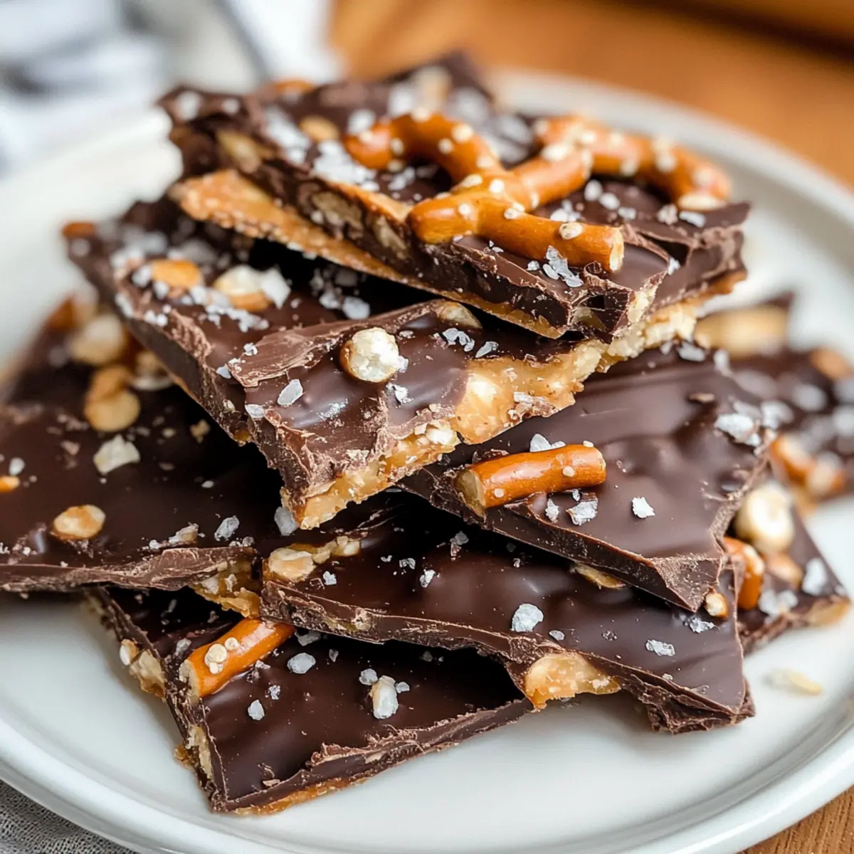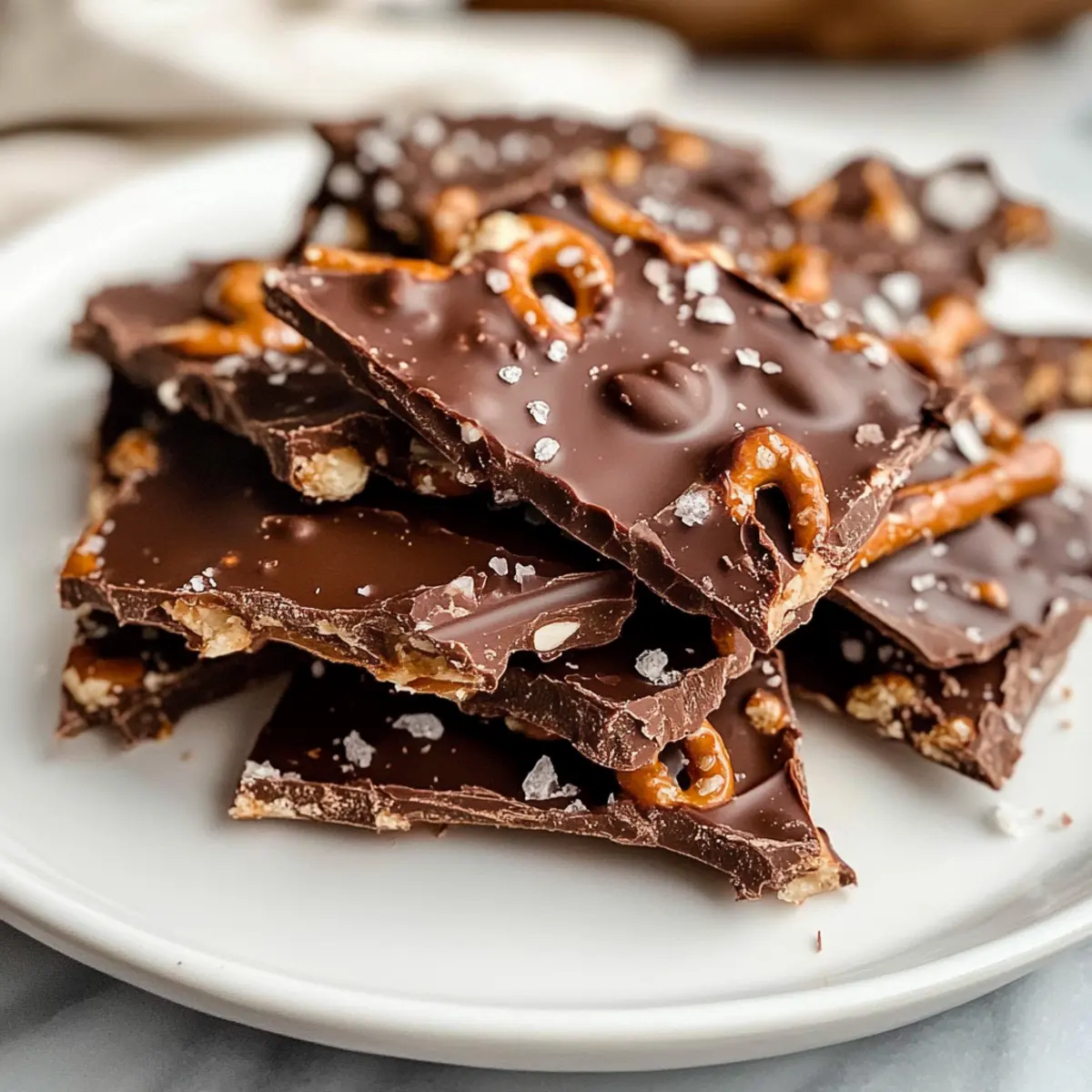 Stellen Sie sich vor, Sie stehen in Ihrer Küche und die süß-salzige Kombination dieser Schokoladenbrezel-Dattelschokolade überrascht Ihre Sinne. Dieses Rezept ist nicht nur ein Genuss für den Gaumen, sondern auch eine echte Freude für jeden, der unkomplizierte und gesunde Snacks liebt. Mit nur wenigen Zutaten zaubern Sie eine köstliche Leckerei, die sowohl glutenfrei als auch milchfrei ist. Perfekt für gesellige Runden oder einfach für den kleinen Hunger zwischendurch, vereint diese Dattelschokolade die cremige Textur von Erdnussbutter und den knackigen Biss von Brezeln. Wer kann da schon widerstehen? Lassen Sie uns gemeinsam herausfinden, wie einfach es ist, diese Gaumenfreude selbst zuzubereiten! Warum werden Sie dieses Rezept lieben? Einfachheit, die begeistert: Die Zubereitung ist unkompliziert und benötigt keine speziellen Kochkünste – ideal für jeden, der schnelle Snacks zaubern möchte. Gesund, aber lecker: Diese Schokoladenbrezel-Dattelschokolade ist nicht nur glutenfrei und milchfrei, sondern auch mit natürlichen Zutaten zubereitet, die jedem gut tun. Vielseitigkeit ist Trumpf: Experimentieren Sie mit verschiedenen Nussbuttern oder fügen Sie zusätzliche Toppings hinzu, um Ihre persönliche Note zu verleihen. Werfen Sie einen Blick auf unsere anderen Snack-Ideen für mehr Inspiration! Perfekt für jede Gelegenheit: Ob als Snack für den Filmabend oder als süßer Abschluss eines Essens – diese Dattelschokolade wird immer ein Hit sein. Schnell und unkompliziert: In nur wenigen Schritten sind Sie bereit, diese Delikatesse zu genießen, ohne viel Zeit in der Küche zu verbringen. Schokoladenbrezel-Dattelschokolade-Zutaten • Um Ihnen den Einstieg zu erleichtern, finden Sie hier die benötigten Zutaten für diese köstliche Schokoladenbrezel-Dattelschokolade: Für die Dattelschicht: Medjool-Datteln – Diese sorgen für natürliche Süße und eine weiche, kaubare Textur; verwenden Sie frische, weiche Datteln und weichen Sie harte Datteln nach Bedarf in warmem Wasser ein. Erdnussbutter – Sorgt für eine cremige Konsistenz; wählen Sie natürliche, cremige oder crunchy Erdnussbutter je nach Vorliebe. Für die Brezelschicht: Glutenfreie Brezeln – Diese fügen den perfekten Knusper hinzu und liefern einen salzigen Kontrast; wählen Sie jede Geschmacksrichtung, die Ihnen gefällt. Für die Schokoladenschicht: Schokoladenstückchen – Sie sorgen für eine dekadente, reichhaltige Schicht; nutzen Sie milchfreie oder herkömmliche dunkle Schokolade ganz nach Ihrem Geschmack. Kokosöl – Dieses hilft, eine glänzende Oberfläche beim Schmelzen der Schokolade zu erzielen und fügt einen dezenten Kokosgeschmack hinzu. Flockiges Meersalz – Verstärkt das Aroma; optional, aber empfohlen für einen zusätzlichen Salzkick. Fühlen Sie sich frei, mit den Zutaten zu experimentieren, denn diese Schokoladenbrezel-Dattelschokolade lässt sich wunderbar variieren! Schritt-für-Schritt-Anleitung für Schokoladenbrezel-Dattelschokolade Step 1: Dattelschicht vorbereiten Legen Sie die Medjool-Datteln auf ein mit Backpapier ausgelegtes Blech in einem Rechteck mit drei Datteln in der Breite und fünf in der Höhe. Drücken Sie die Datteln leicht mit einem Nudelholz flach, bis eine gleichmäßige Schicht entsteht, die etwa 1 cm dick ist. Sie benötigen diese Basis für Ihre köstliche Schokoladenbrezel-Dattelschokolade. Step 2: Erdnussbutterschicht hinzufügen Verteilen Sie die Erdnussbutter gleichmäßig über die flachgedrückten Datteln. Nutzen Sie einen Spatel, um die Erdnussbutter in einer gleichmäßigen Schicht zu verstreichen, sodass sie vollständig die Datteln abdeckt. Diese cremige Schicht sorgt für den tollen Geschmack und die bindende Konsistenz, die das Rezept so besonders machen. Step 3: Brezelstücke streuen Zerbrechen Sie die glutenfreien Brezeln in kleine Stücke und streuen Sie sie großzügig über die Erdnussbutterschicht. Drücken Sie die Brezelstücke leicht in die Erdnussbutter, damit sie gut haften bleiben. Diese salzige und knusprige Komponente bringt den perfekten Kontrast zur Süße der Datteln. Step 4: Schokolade schmelzen Geben Sie die Schokoladenstückchen und das Kokosöl in eine mikrowellengeeignete Schüssel. Erhitzen Sie die Mischung in 20-Sekunden-Intervallen in der Mikrowelle und rühren Sie zwischendurch um, bis die Schokolade vollständig geschmolzen und glatt ist. Achten Sie darauf, dass die Schokolade nicht überhitzt, um eine grüne Konsistenz zu bewahren. Step 5: Mit Schokolade toppen Gießen Sie die geschmolzene Schokolade über die Brezelschicht und verteilen Sie sie gleichmäßig. Nutzen Sie einen Spatel, um die Schokolade sorgfältig zu verstreichen, sodass alles gut bedeckt ist. Für zusätzlichen Geschmack streuen Sie flauschiges Meersalz gleichmäßig über die Schokoladenschicht, was der Schokoladenbrezel-Dattelschokolade einen köstlichen Salzkick verleiht. Step 6: Kühlen und servieren Stellen Sie das Blech für mindestens 30 Minuten in den Gefrierschrank, bis die Schokoladenbrezel-Dattelschokolade fest geworden ist. Nach dem Kühlen nehmen Sie die Schokolade aus dem Gefrierschrank und schneiden Sie sie in Stücke. Genießen Sie diese süße und salzige Leckerei am besten frisch oder bewahren Sie sie in einem luftdichten Behälter auf. Schokoladenbrezel-Dattelschokolade Variationen Lassen Sie Ihrer Kreativität freien Lauf und passen Sie diese köstliche Schokoladenbrezel-Dattelschokolade ganz nach Ihrem Geschmack an! Erdnussbutter: Ersetzen Sie die Erdnussbutter durch Mandelbutter für einen nussigeren Geschmack. Diese Variation ist vor allem bei Mandel-Liebhabern sehr beliebt. Vegane Schokolade: Nutzen Sie vegane Schokoladenstückchen, um die Dattelschokolade komplett milchfrei zu machen. So bleibt der Geschmack köstlich und bleibt für alle Diäten geeignet. Salzige Nüsse: Statt Brezeln können Sie auch geröstete, gesalzene Nüsse verwenden. Diese Kombination bietet eine herzhafte Note und zusätzliche Nährstoffe. Zusätzlic