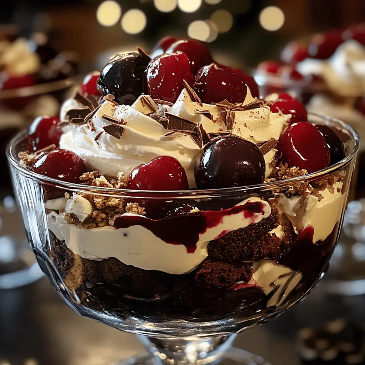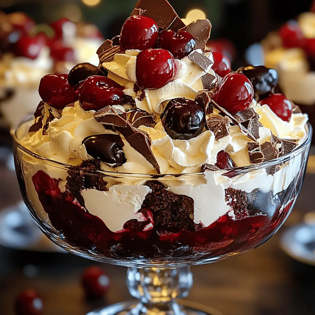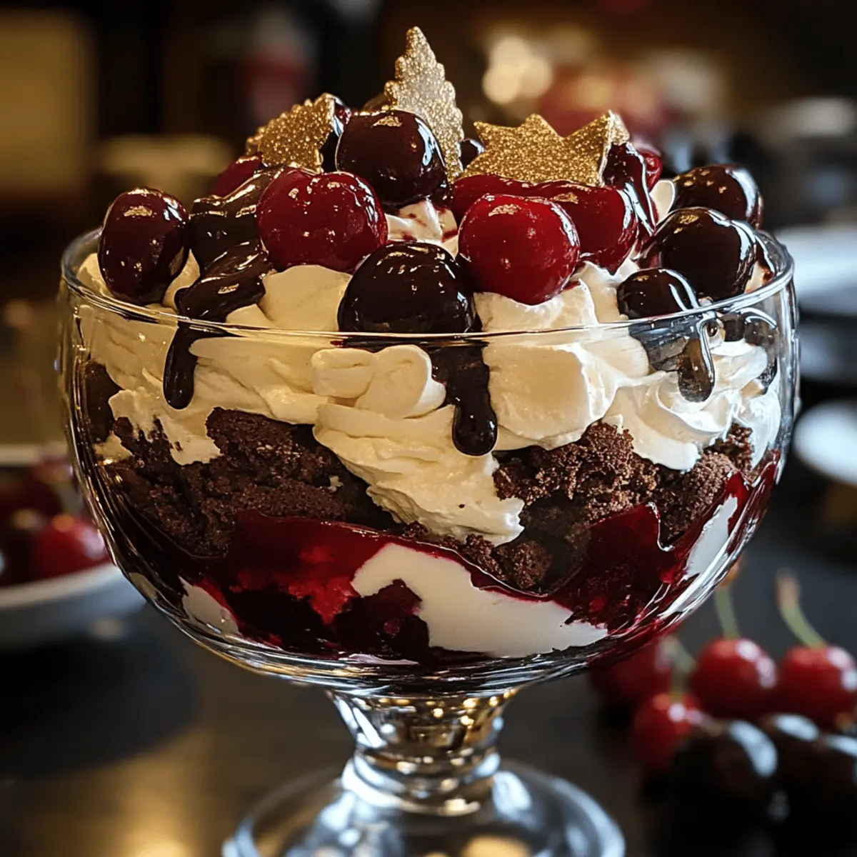 Wenn die ersten Schneeflocken fallen und der Duft von frisch gebackenen Plätzchen die Luft erfüllt, weiß ich, dass die festliche Zeit nicht mehr weit ist. In solch besinnlichen Momenten kommt der Gedanke an ein himmlisches Dessert, das nicht nur köstlich aussieht, sondern auch die Herzen meiner Liebsten erwärmt. Mein Schwarzwälder Trifle für Weihnachten ist genau das: eine schichtweise Komposition aus saftigem Schokoladenkuchen, luftiger Sahne und fruchtigen Kirschen, die sich perfekt für eure Feiertagsfeiern eignet. Das Beste? Es ist ein unkompliziertes No-Bake-Rezept, das sich wunderbar im Voraus zubereiten lässt, sodass ihr mehr Zeit für die schönen Dinge im Leben habt. Neugierig, wie ihr dieses festliche Highlight auf Eurem Tisch zaubern könnt? Warum ist dieses Rezept eine Freude? Unkompliziert und schnell: Die Zubereitung des Schwarzwälder Trifle erfordert keine speziellen Kochkünste. Ihr schichtet einfach die Zutaten, und schon wird es zum Hingucker auf jedem Tisch. Fabulous Geschmack: Die Kombination aus saftigem Schokoladenkuchen, frischen Kirschen und luftiger Sahne sorgt für ein Geschmackserlebnis, das eure Gäste begeistern wird. Ideal für stressfreie Feiertage: Dank der Möglichkeit, das Dessert im Voraus zuzubereiten, bleibt mehr Zeit für die gemütlichen Momente mit der Familie. Vielseitige Variationen: Ob mit Himbeeren oder einer Schicht Pudding – passt das Rezept euren Vorlieben an, um es noch besonderer zu machen. Ein Fest für die Augen: Die ansprechende Präsentation macht dieses Trifle zur perfekten Wahl für festliche Anlässe. Wenn ihr eine andere köstliche Option sucht, schaut euch unser Rezept für Pasta Zitronen Knoblauch oder Honig Feta Gourmetgenuss an! Schwarzwälder Trifle Zutaten Für die Schichten • Schokoladenkuchen – sorgt für die saftige Basis des Trifles; ihr könnt entweder einen fertigen kaufen oder selbst backen. • Schlagsahne – verleiht eine luftige Textur, die den Reichtum des Kuchens ausgleicht; verwendet am besten Schlagsahne aus schwerer Sahne. • Kirschen – bringen Süße und Farbe ins Spiel; frische oder eingelegte Kirschen sind möglich, aber frische dunkle Kirschen sorgen für das beste Aroma. • Kirsch (Kirschwasser) – gibt den Schichten den traditionellen Geschmack des Schwarzwälder Trifles; könnt ihr durch Kirschsaft ersetzen, wenn ihr eine alkoholfreie Version wünscht. • Schokoladenraspel – dienen als Garnitur und sorgen für einen eleganten Touch und verstärken den Schokoladengeschmack. Schritt-für-Schritt-Anleitung für Schwarzwälder Trifle für Weihnachten Step 1: Kuchenschichten vorbereiten Schneidet den Schokoladenkuchen in gleichmäßige Schichten, etwa 2,5 cm dick. Wenn ihr einen fertigen Kuchen verwendet, sorgt dafür, dass die Scheiben gleichmäßig geschnitten sind, damit sie beim Schichten stabil sind. Legt die Stücke bereit und bereitet euch darauf vor, sie mit Kirsch oder Kirschsaft zu befeuchten. Step 2: Den Kuchen aromatisieren Befeuchtet die Kuchenscheiben gleichmäßig mit Kirsch oder Kirschsaft. Verwendet dabei einen Esslöffel, um den Alkohol oder Saft gleichmäßig zu verteilen, bis die Kuchenstücke leicht feucht, aber nicht durchtränkt sind. Das sorgt für zusätzlichen Geschmack und Saftigkeit in eurem Schwarzwälder Trifle für Weihnachten. Step 3: Die Schichtung beginnen Nehmt eine durchsichtige Trifle-Schüssel und beginnt mit einer Schicht von den befeuchteten Kuchenscheiben. Darauf kommt eine Schicht frischer Kirschen und danach eine großzügige Schicht Schlagsahne. Achtet darauf, die Schichten so anzuordnen, dass sie gut sichtbar sind und eine ansprechende Präsentation bieten. Wiederholt die Schichtung, bis alle Zutaten aufgebraucht sind. Step 4: Kühlzeit einhalten Deckt das Trifle mit Frischhaltefolie ab und stellt es für mindestens 4 Stunden in den Kühlschrank. Dadurch können sich die Aromen wunderbar miteinander verbinden und die Texturen harmonieren. Je länger ihr wartet, desto besser wird der Geschmack, also plant genügend Zeit ein, um diese Festlichkeit optimal genießen zu können. Step 5: Garnieren und Servieren Kurz vor dem Servieren dekoriert das Topping mit Schokoladenraspeln und den restlichen Kirschen. Diese letzte Berührung verbindet nicht nur die Geschmäcker, sondern macht auch sehr viel her. Serviert den Schwarzwälder Trifle für Weihnachten in großen Löffeln, damit jeder einen vollendeten Blick auf die köstlichen Schichten erhält. Was passt zum Schwarzwälder Trifle für Weihnachten? Genießen Sie eine festliche Atmosphäre, während Sie mit diesen begleiteten Köstlichkeiten ein vollständiges Festmahl schaffen. Zimtige Apfelspalten: Diese warmen, gewürzten Äpfel bieten eine fruchtige Note, die wunderbar mit dem schokoladigen Dessert harmoniert. Ihre süße Zimt- und Zuckerkruste verleiht dem Tisch eine festliche Note. Klassischer Weihnachts-Punsch: Ein warmer, fruchtiger Punsch mit Gewürzen sorgt für Gemütlichkeit und bildet einen tollen Kontrast zur Kühle des Trifles. Der Punsch erweckt Erinnerungen an fröhliche Feiern und versüßt die Zusammenkunft. Lebkuchen-Plätzchen: Diese köstlichen Kekse mit ihrem würzigen Aroma ergänzen den Schokoladengenuss des Trifles perfekt. Eine kräftige Beilage, die das festliche Flair unterstreicht. Schokolade mit Meersalz: Dunkle Schokoladenstücke mit einem Hauch von Meersalz bieten einen reichhaltigen, herben Geschmack, der die süßen Schichten im Trifle wunderbar ergänzt. Ein Genuss für wahre Schokoladenliebhaber. Frischer Minztee: Erfrischend und voller Geschmack unterstützt dieser Tee das süße Dessert und erfrischt den Gaumen. Die Kombination sorgt für ein ausgewogenes Geschmackserlebnis. Eisige Himbeeren: Diese gefrorenen Beeren bieten einen erfrischenden Biss, der das Dessert auflockert. Sie können sowohl als Garnitur verwendet werden als auch als leichtes, fruchtiges Element dazu gereicht werden. Expertentipps für Schwarzwälder Trifle Zutaten sorgfältig wählen: Nut