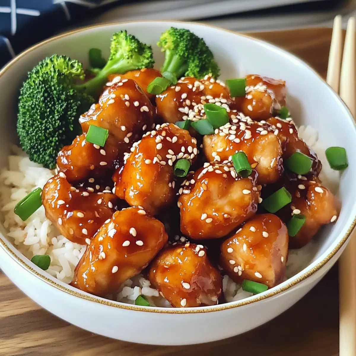 Es war einer dieser hektischen Wochentage, an denen ich dringend etwas Einfaches und Köstliches zubereiten wollte. Da fiel mein Blick auf mein Rezept für Sesam-Hühnchen, das nicht nur im Handumdrehen fertig ist, sondern auch meine Geschmacksknospen zum Tanzen bringt. Diese schmackhafte Kombination aus zartem Hähnchen, aromatischen Gewürzen und knusprigen Sesamsamen ist die perfekte Lösung, um nicht nur die Familie zu begeistern, sondern auch um mich selbst verwöhnen zu können. Warum sich mit schnellem Fast Food zufriedengeben, wenn man so einfach ein gesundes und leckeres Gericht auf den Tisch bringen kann? Lassen Sie uns gemeinsam in die Welt der aromatischen asiatischen Küche eintauchen! Auf welches Gemüse würden Sie bei Ihrer eigenen Kreation setzen? Warum sollten Sie Sesam-Hühnchen probieren? Einfachheit: Dieses Rezept erfordert nur wenige Zutaten und ist im Handumdrehen zubereitet. Geschmacksexplosion: Die Kombination von zartem Hähnchen mit süß-salzigen Aromen ist unwiderstehlich und sorgt für Begeisterung am Esstisch. Vielseitigkeit: Sie können das Gemüse nach Lust und Laune variieren, ob mit Brokkoli, Paprika oder Zucchini – Ihrer Kreativität sind keine Grenzen gesetzt! Gesundheitsbewusst: Mit weniger als 350 kcal pro Portion ist es eine leichte, nährstoffreiche Option, die dennoch satt macht. Perfekt für jede Gelegenheit: Ob für ein schnelles Abendessen unter der Woche oder um Gäste zu beeindrucken, dieses Gericht passt immer! Genießen Sie auch dazu köstliche Beilagen wie gedämpftes Gemüse oder Frühlingsrollen. Sesam-Hühnchen Zutaten • Entdecken Sie die köstlichen Zutaten für Ihr Sesam-Hühnchen! Für das Hähnchen Hähnchenbrustfilet – Zartes Hauptprotein, das bei Bedarf auch durch Putenbrust ersetzt werden kann. Sojasauce – Fügt umami und Salzgeschmack hinzu; für glutenfreie Variante verwenden Sie Tamari. Honig – Sorgt für Süße und Glanz; alternativ kann Ahornsirup verwendet werden. Sesamöl – Verleiht einen nussigen Geschmack; Erdnussöl ist eine gute Substitution. Knoblauch – Aromatische Würze; frisch gehackt sorgt für den besten Geschmack. Ingwer – Frische Schärfe und Aroma; geriebener Ingwer steigert die Geschmacksintensität. Sesamsamen – Für Textur und Geschmack, können auch geröstet werden, um einen intensiveren Nussgeschmack zu erhalten. Pflanzenöl – Zum Braten geeignet; Olivenöl kann ebenfalls genutzt werden. Für die Beilage Frühlingszwiebel – Frische Garnitur, die optional, aber optisch ansprechend ist. Brokkoli – Fügt zusätzliche Nährstoffe hinzu; kann mit Paprika oder Zucchini ersetzt werden. Jasminreis – Perfekte Beilage; kann durch Vollkornreis oder Quinoa ausgetauscht werden. Schritt-für-Schritt-Anleitung für Sesam-Hühnchen Schritt 1: Hähnchen vorbereiten Schneiden Sie das Hähnchenbrustfilet in gleichmäßige Würfel, etwa 2 cm groß. Legen Sie die Würfel in eine große Schüssel. Achten Sie darauf, ein scharfes Messer zu verwenden, um saubere Schnittflächen zu erzielen. Dies sorgt für eine gleichmäßige Garzeit. Schritt 2: Marinade anrühren Vermengen Sie in einer separaten Schüssel die Sojasauce, den Honig und das Sesamöl. Fügen Sie den frisch gehackten Knoblauch und den geriebenen Ingwer hinzu. Gießen Sie diese Mischung über die Hähnchenwürfel und rühren Sie gut um, damit das Hähnchen gleichmäßig mariniert ist. Lassen Sie es etwa 30 Minuten abgedeckt im Kühlschrank ziehen. Schritt 3: Reis kochen Bringen Sie in einem mittelgroßen Topf Wasser zum Kochen und fügen Sie den Jasminreis hinzu. Kochen Sie den Reis nach Packungsanleitung, normalerweise etwa 15 Minuten, ohne den Deckel während des Köchelns abzunehmen. Wenn der Reis fertig ist, nehmen Sie ihn vom Herd und lassen Sie ihn noch einige Minuten stehen, damit er fluffig wird. Schritt 4: Öl erhitzen Erhitzen Sie in einer großen Pfanne bei mittlerer Hitze etwas Pflanzenöl. Warten Sie, bis das Öl heiß ist und leicht zu glänzen beginnt. Dies ist wichtig, um das Hähnchen gleichmäßig und goldbraun zu braten. Schritt 5: Hähnchen braten Legen Sie die marinierten Hähnchenwürfel vorsichtig in die heiße Pfanne. Braten Sie das Hähnchen für 5-7 Minuten an, bis es goldbraun und durchgegart ist. Rühren Sie regelmäßig um, damit alle Seiten gleichmäßig braten und das Hähnchen nicht anhaftet. Schritt 6: Gemüse hinzufügen Fügen Sie in den letzten 2 Minuten der Kochzeit die Brokkoliröschen hinzu. Braten Sie das Gemüse kurz mit, bis es bissfest ist und eine leuchtend grüne Farbe hat. Achten Sie darauf, das Gemüse nicht zu lange zu garen, damit es frisch und knackig bleibt. Schritt 7: Sesamsamen hinzufügen Streuen Sie die Sesamsamen über das Hähnchen und rühren Sie gut um. Lassen Sie sie für etwa eine Minute mitbraten, bis sie goldbraun sind und ihr nussiges Aroma entfalten. Dies verleiht Ihrem Sesam-Hühnchen eine köstliche Textur und zusätzliche Geschmacksschichten. Schritt 8: Anrichten und servieren Servieren Sie das fertige Sesam-Hühnchen auf einem Bett aus dem fluffigen Jasminreis. Garnieren Sie es optional mit geschnittenen Frühlingszwiebeln für zusätzliche Frische und Farbe. Genießen Sie dieses schnelle, hausgemachte Gericht, das perfekt für jeden Anlass geeignet ist! Sesam-Hühnchen: Variationen und Substitutionen Lassen Sie Ihrer Kreativität freien Lauf und passen Sie das Rezept ganz nach Ihrem Geschmack an! Die folgenden Optionen bieten Ihnen verschiedene Möglichkeiten, um das Gericht zu individualisieren. Dairy-Free: Verwenden Sie pflanzliche Saucen und Öle, um eine milchfreie Variante zu kreieren, die dennoch lecker ist. Schärfer: Fügen Sie frische Chilis oder einen Spritzer Sriracha zur Marinade hinzu, um die Geschmacksknospen zu kitzeln. Gemüsevielfalt: Experimentieren Sie mit Paprika, Zucchini oder Karotten, um zusätzliche Farben und Nährstoffe hinzuzufügen. Glutenfrei: Ersetzen Sie die Sojasauce durch glutenfreie Tamari, um dieses Gericht für alle zugänglich zu mach