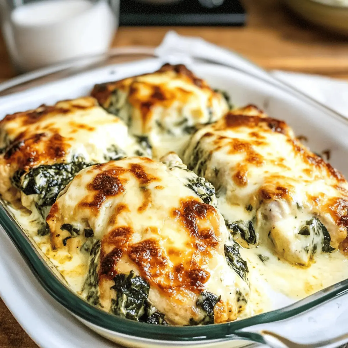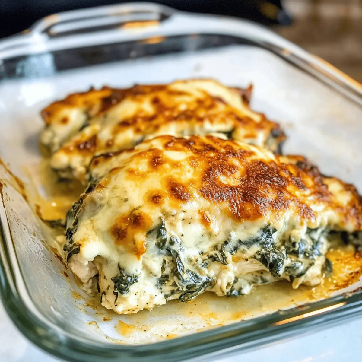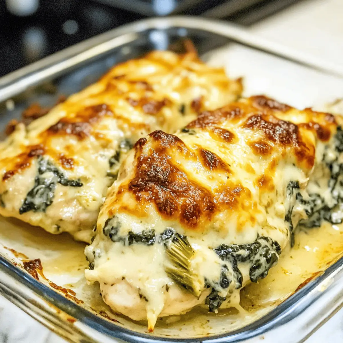 Verteilen Sie die Spinat-Artischocken-Mischung gleichmäßig über die Hühnerfilets in der Auflaufform. Achten Sie darauf, dass die Mischung die gesamte Oberfläche der Hühnchenbrust bedeckt, damit jedes Stück während des Backens gleichmäßig Geschmack aufnimmt. Diese Schicht ist das Herzstück Ihres Spinat-Artischocke-Hühnchen-Auflaufs.