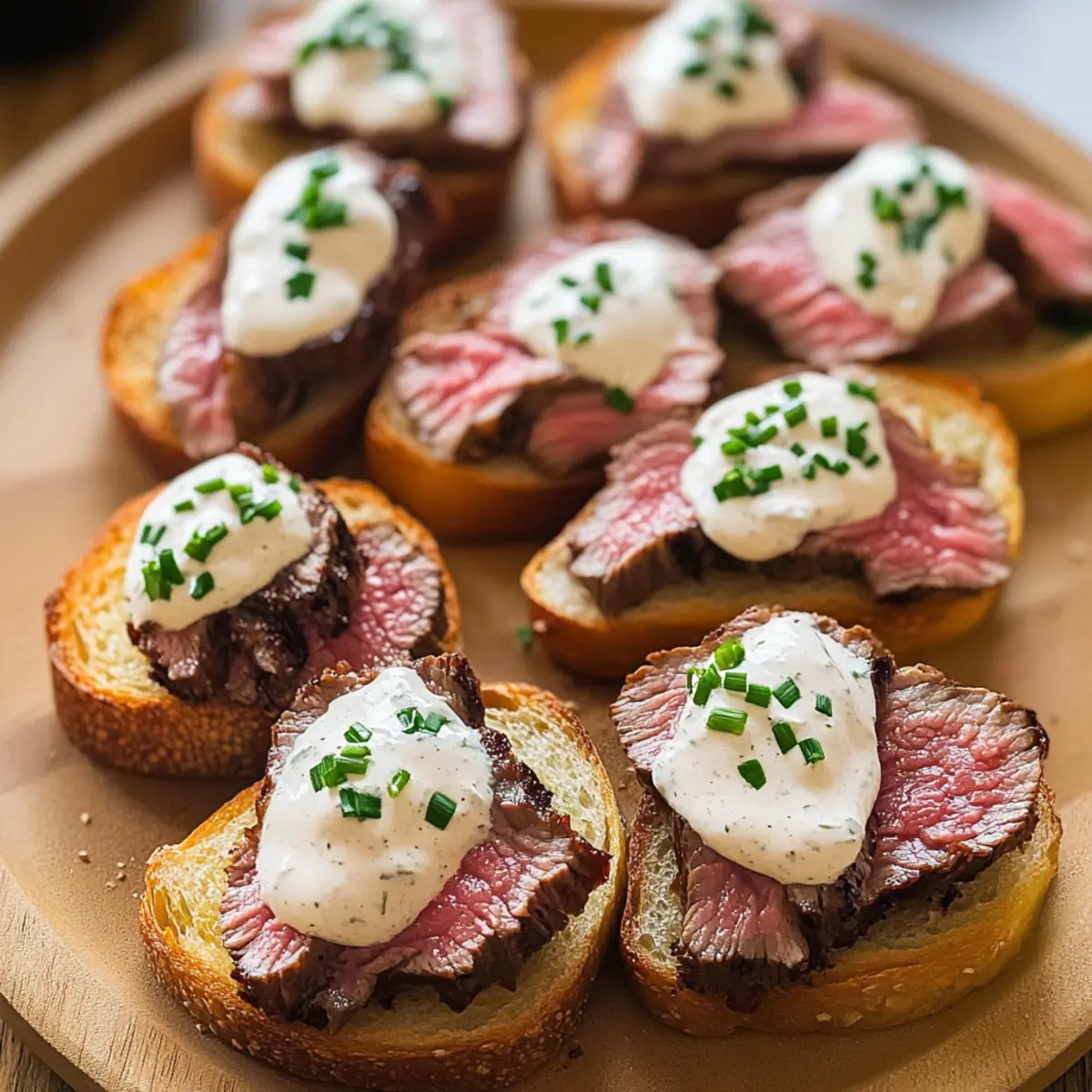 Servieren Sie die Steak-Crostini warm für das beste Geschmackserlebnis.
