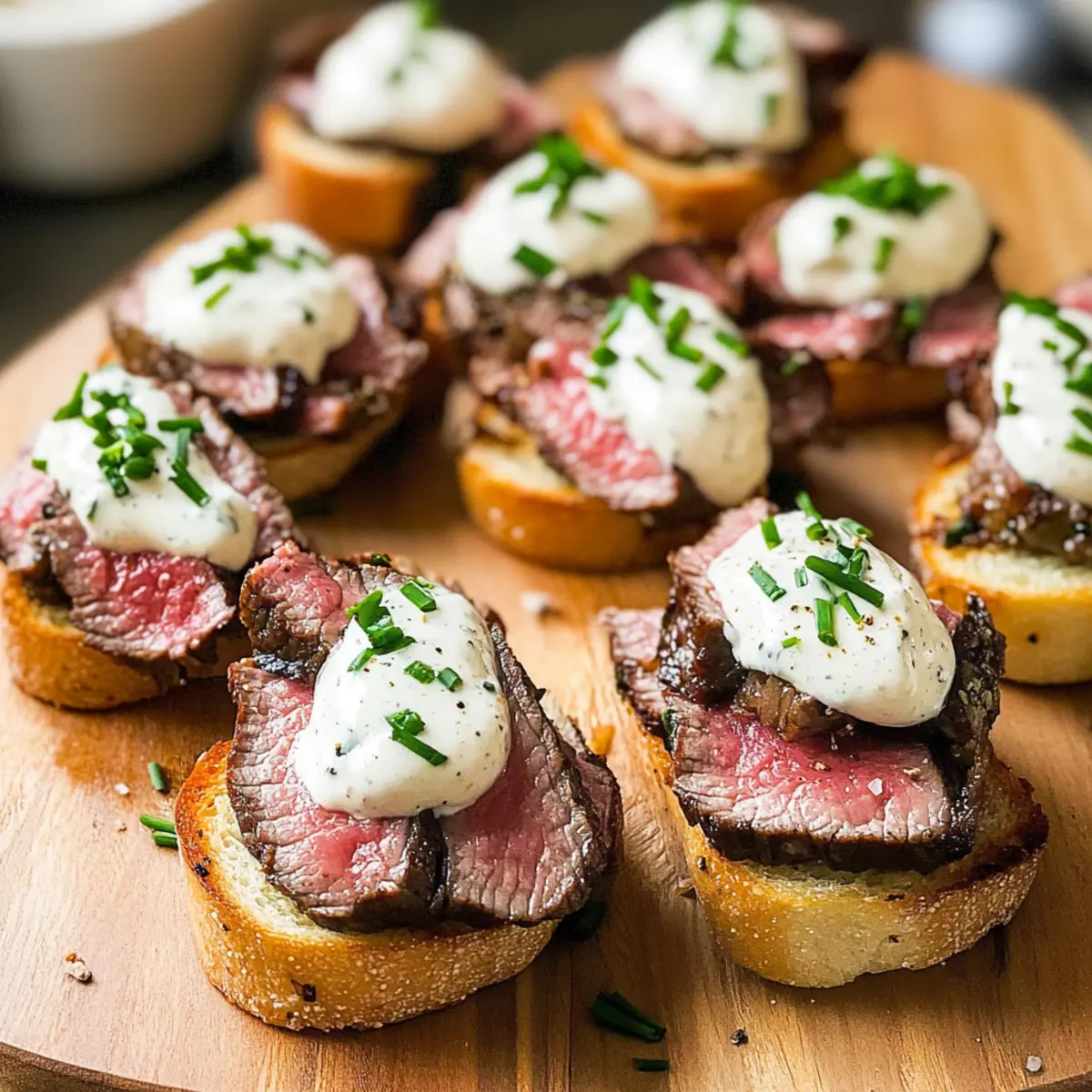 Genießen Sie Steak-Crostini mit Meerrettichcreme für unvergessliche Geschmackserlebnisse.