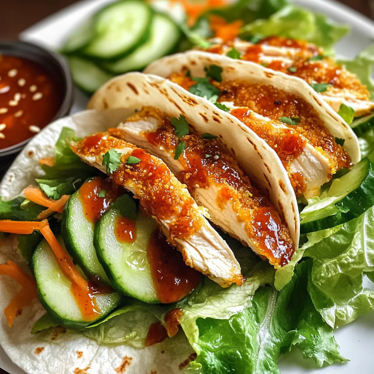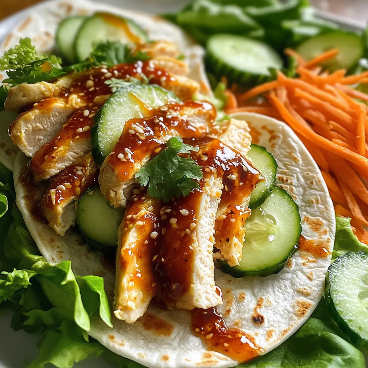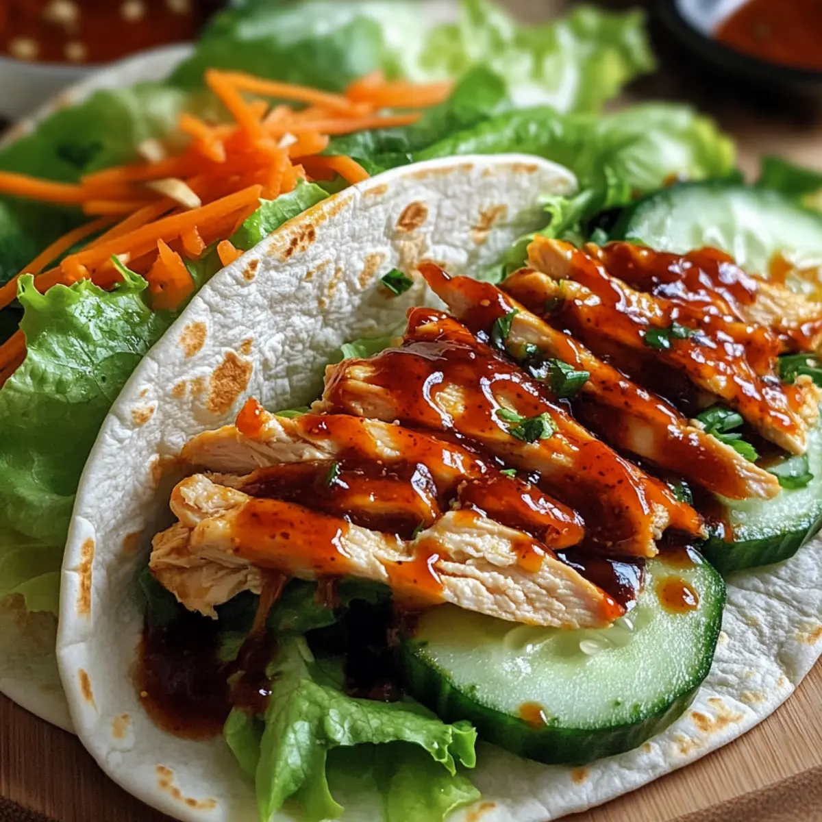 Hast du schon einmal das Gefühl gehabt, dass dein Abendessen mehr Spaß machen könnte? Diese Süße Chili Hühnchen Wraps sind genau das, was du brauchst! Zarte Hühnchenbruststücke, die in einer köstlichen süß-würzigen Sauce mariniert sind, gepaart mit frischem Salat, knackigen Karotten und erfrischenden Gurken – dieses Rezept bringt Farbe und Geschmack auf deinen Tisch. Es ist nicht nur einfach zuzubereiten, sondern auch perfekt für hektische Wochentage oder entspannte Mittagessen mit Freunden. Außerdem kannst du die Füllung ganz nach Geschmack anpassen, indem du zum Beispiel Tofu oder Garnelen anstelle von Hühnchen verwendest. Neugierig auf die einfache Zubereitung? Lass uns gleich ins Detail gehen! Warum wirst du diese Wraps lieben? Einfachheit, die begeistert: Die Zubereitung ist kinderleicht und benötigt nur grundlegende Kochkenntnisse. Reichhaltiger Geschmack, der begeistert: Die perfekte Balance von süß und herzhaft verleiht jedem Bissen das gewisse Etwas. Vielseitigkeit, die Freude bereitet: Du kannst das Rezept mit Tofu oder Garnelen abwandeln, sodass jeder auf seine Kosten kommt. Zeitersparnis, die du genießt: In nur wenigen Minuten hast du ein frisches und köstliches Essen auf dem Tisch. Crowd-Pleasing, das überzeugt: Diese Wraps sind ein Hit bei Familie und Freunden und eignen sich ideal für gesellige Abende! Süße Chili Hühnchen Wraps Zutaten • Diese Zutaten sorgen für ein geschmackvolles Erlebnis! Für das Hühnchen Hühnchenbrust – Die proteinreiche Basis sorgt für zarte, saftige Stücke. Süße Chili Sauce – Verleiht den Wraps die charakteristische süß-würzige Note. Sojasauce – Bringt eine umami Tiefe ohne die Süße zu überlagern. Olivenöl – Perfekt zum Braten, sorgt für eine goldene Kruste und verhindert das Ankleben. Knoblauchpulver – Für einen milden Knoblauchgeschmack ohne frische Zehen. Gemahlener Ingwer – Fügt ein warmes, würziges Aroma hinzu, das die Süße ergänzt. Salz & Pfeffer – Einfache Gewürze für ausgewogene Aromen. Für die Wraps Mehltortillas – Groß und biegsam für ein ordentliches Einwickeln der Zutaten. Salat – Für eine frische, knusprige Schicht als Kontrast zum warmen Hühnchen. Karotten – Bringt Farbe und knackige Textur in jeden Bissen. Gurken – Sorgen für erfrischende Knackigkeit und bringen Balance. Koriander (Optional) – Fügt eine kräuterige Frische hinzu und verbessert das Geschmacksprofil. Limettenviertel – Für einen spritzigen Abschluss, der die Aromen der Wraps ergänzt. Mit diesen Zutaten bereitest du köstliche Süße Chili Hühnchen Wraps zu, die jeden begeistern werden! Step-by-Step Instructions for Süße Chili Hühnchen Wraps Step 1: Hühnchen vorbereiten Die Hühnchenbrust mit Salz, Pfeffer, Knoblauchpulver und gemahlenem Ingwer gut einreiben. Achte darauf, dass die Gewürze gleichmäßig verteilt sind, um den Geschmack zu intensivieren. Lass das Hühnchen für einen Moment beiseite und erhitz eine Pfanne auf mittlerer Stufe. Step 2: Marinade zubereiten Vermische in einer Schüssel die süße Chili Sauce und die Sojasauce gut miteinander. Nachdem du eine homogene Masse hergestellt hast, gieße diese Mischung über das Hühnchen und lasse es für mindestens 30 Minuten marinieren. Dies sorgt dafür, dass das Hühnchen die köstlichen Aromen aufnimmt. Step 3: Hühnchen garen Erhitze das Olivenöl in der vorgeheizten Pfanne. Lege die marinierten Hühnchenstücke hinein und brate sie ca. 6–7 Minuten auf jeder Seite, bis sie goldbraun und durchgegart sind (eine Innentemperatur von 75°C/165°F ist ideal). Achte darauf, das Hühnchen nicht zu überladen, damit es gleichmäßig gart. Step 4: Hühnchen ruhen lassen und schneiden Nimm das fertig gebratene Hühnchen aus der Pfanne und lasse es für 5 Minuten ruhen. Dies hilft, die Säfte einzuschließen, und sorgt dafür, dass das Fleisch saftig bleibt. Danach schneide das Hühnchen in dünne Scheiben, um es leichter in die Wraps zu integrieren. Step 5: Tortillas erwärmen Um die Mehltortillas weich und flexibel zu machen, kannst du sie entweder kurz in der Mikrowelle oder in einer trockenen Pfanne anwärmen. Etwa 15–20 Sekunden in der Mikrowelle oder 1–2 Minuten pro Seite in der Pfanne sind genug. Warme Tortillas machen das Einwickeln einfacher und sorgen für einen besseren Genuss. Step 6: Wraps zusammenstellen Lege eine warme Tortilla auf einen Teller und beginne, mit einer Schicht Salat, gefolgt von den geschnittenen Hühnchenstücken, Karotten und Gurken zu belegen. Lass genug Platz am Rand, damit du sie später einfach einschlagen kannst. Optional kannst du frischen Koriander hinzufügen, um einen zusätzlichen Geschmacksakzent zu setzen. Step 7: Sauce hinzufügen Gib einen Spritzer der verbleibenden süßen Chili Sauce über die Füllungen in der Tortilla. Diese zusätzliche Sauce verstärkt die Aromen und gibt den Wraps die charakteristische süß-würzige Note, die die Süße des Hühnchens hervortreten lässt. Step 8: Wraps einrollen Beginne, die Tortilla an der unteren Kante aufzurollen, während du die Seiten nach innen klappst, um die Zutaten zu umschließen. Stelle sicher, dass du es fest genug machst, damit beim Essen nichts herausfällt. Eine saubere Rolltechnik sorgt für ein ästhetisches und praktisches Ergebnis. Step 9: Schneiden und servieren Schneide die fertigen Wraps diagonal in der Mitte durch und richte sie auf einem Teller an. Optional kannst du sie mit Limettenvierteln servieren, die deinen Gästen helfen, einen spritzigen Geschmack hinzuzufügen. Jedes Stück kann nun genossen werden und bringt sofortiges Glück! Meal Prep für Süße Chili Hühnchen Wraps Die Süßen Chili Hühnchen Wraps sind perfekt für die Zubereitung im Voraus! Du kannst das Hühnchen bis 24 Stunden vor dem Kochen marinieren, um die Aromen zu intensivieren. Einfach die Hühnchenbrust mit der Marinade aus süßer Chili Sauce und Sojasauce einreiben und in den Kühlschrank stellen. Zusätzlich kannst du die geschnittenen
