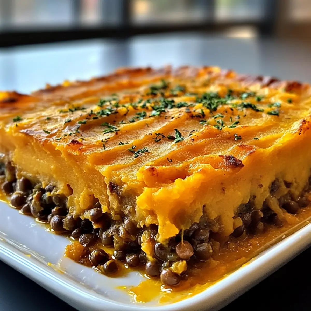 Die kühle Brise des Herbstes erinnert mich an die wohlige Behaglichkeit eines frisch gebackenen Eintopfs. Heute präsentiere ich euch meinen Lieblingsklassiker, den Süßkartoffel- und Linseneintopf. Dieses vegane Gericht verbindet auf wunderbare Weise die cremige Süße von Süßkartoffeln mit der herzhaften Würze von Linsen. Perfekt für hektische Wochentage, lässt sich dieses Comfort Food in weniger als einer Stunde zubereiten. Es ist nicht nur nährstoffreich, sondern auch frei von Gluten, sodass es für viele von uns eine geeignete Option darstellt. Mit seiner warmen, einladenden Textur und den satten Aromen wird dieser Eintopf nicht nur euren Magen, sondern auch eure Seele wärmen. Seid ihr bereit, gemeinsam die Küche zu erobern und euch dieses köstliche Gericht zuzubereiten? Warum wirst du diesen Eintopf lieben? Einfachheit ist Trumpf: Mit nur wenigen Zutaten und einer klaren Anleitung gelingt dieser Eintopf jedem, auch Kochanfängern! Herzhafter Geschmack: Die Kombination aus süßen Kartoffeln und würzigen Linsen schafft ein harmonisches Geschmackserlebnis, das euch umhauen wird. Vielseitig und anpassbar: Möchtet ihr etwas mehr Gemüse? Fügt einfach Paprika oder Spinat hinzu! So bleibt das Gericht spannend und gesund. Ideale Vorbereitung: Dieser Eintopf kann bereits im Voraus zubereitet und im Kühlschrank aufbewahrt werden. Ideal für geschäftige Wochentage! Nährstoffreich: Vollgepackt mit Ballaststoffen und Proteinen ist dieses Gericht nicht nur lecker, sondern auch nährstoffreich – perfekt, um euch den ganzen Tag über Energie zu geben. Probiert auch unsere anderen köstlichen veganen Rezepte, um eure Sammlung an gesunden und schmackhaften Gerichten zu erweitern! Süßkartoffel- und Linseneintopf Zutaten Für die Füllung Süßkartoffeln – Sie sorgen für eine cremige und süße Basis; einfach kochen, bis sie weich sind, und dann mit Salz und Pfeffer zerdrücken. Linsen – Diese liefern eine herzhafte Proteinquelle; grüne oder braune Linsen verwenden, da rote Linsen zu schnell kochen. Olivenöl – Perfekt zum Anbraten der Gemüse; kann durch Gemüsebrühe ersetzt werden, um die Fettaufnahme zu reduzieren. Zwiebeln, Karotten, Sellerie – Die aromatische Grundlage; können durch eure Lieblingsmischung ersetzt werden. Knoblauch – Bringt zusätzlichen Geschmack ins Spiel; frischer Knoblauch ist ideal, kann aber auch durch Knoblauchpulver ersetzt werden. Thymian und Rosmarin – Frische Kräuter, die Tiefe verleihen; bei Verwendung von getrockneten Kräutern weniger verwenden. Gemüsebrühe – Liefert die nötige Feuchtigkeit; darauf achten, dass sie glutenfrei ist, wenn erforderlich. Chiliflocken – Für einen optionalen scharfen Kick; wer empfindlich auf Schärfe reagiert, lässt sie einfach weg. Veganer Käse (optional) – Für eine extra cremige Kruste; je nach persönlichen Vorlieben könnt ihr darauf verzichten. Genießt die Zubereitung dieses Süßkartoffel- und Linseneintopfs und lasst euch von den Aromen verzaubern! Schritt-für-Schritt-Anleitung für Süßkartoffel- und Linseneintopf Step 1: Ofen Vorheizen Heize deinen Ofen auf 200°C (400°F) vor, damit er gleichmäßig warm wird. Dies ist der erste Schritt, um deinen Süßkartoffel- und Linseneintopf perfekt zu backen, damit die Oberseite goldbraun und knusprig wird. Step 2: Süßkartoffeln Vorbereiten Schäle und schneide die Süßkartoffeln in gleichmäßige Stücke, um ein gleichmäßiges Kochen zu gewährleisten. Koche die Kartoffeln 15 Minuten lang in einem großen Topf mit kochendem Wasser, bis sie weich sind. Danach abgießen und mit einer Prise Salz und Pfeffer cremig zerdrücken. Step 3: Gemüse Anbraten In einem großen Topf erhitze 2 Esslöffel Olivenöl bei mittlerer Hitze. Füge die gewürfelten Zwiebeln, Karotten und Sellerie hinzu und brate sie 5-7 Minuten lang an, bis sie weich sind und ein angenehmer Duft das Zimmer erfüllt. Step 4: Aromen Hinzufügen Gib den frisch gehackten Knoblauch, Thymian und Rosmarin zu den angeschwitzten Gemüse und koche alles für eine weitere Minute, bis der Knoblauch duftet. Diese Aromen verleihen deinem Süßkartoffel- und Linseneintopf eine köstliche Tiefe. Step 5: Linsen Kochen Rühre die abgespülten Linsen und 500 ml Gemüsebrühe in den Topf. Bring die Mischung zum Kochen und lasse sie dann 20-25 Minuten lang köcheln, bis die Linsen zart sind und die Flüssigkeit größtenteils aufgesogen ist. Step 6: Eintopf Zusammensetzen Verteile die Linsen-Gemüse-Mischung gleichmäßig in einer Auflaufform. Anschließend gebe die pürierten Süßkartoffeln darüber und streiche sie vorsichtig glatt, damit eine gleichmäßige Topfschicht entsteht und alles gut aussieht. Step 7: Backen Setze die Auflaufform in den vorgeheizten Ofen und backe den Eintopf 25-30 Minuten lang. Achte darauf, dass die Oberfläche goldbraun wird und die Füllung blubbert. Dies ist das Zeichen, dass dein Süßkartoffel- und Linseneintopf fertig gebacken ist. Vorbereitung für deinen Süßkartoffel- und Linseneintopf Der Süßkartoffel- und Linseneintopf eignet sich hervorragend für die Vorbereitung im Voraus! Du kannst die Süßkartoffeln bis zu 24 Stunden vorher schälen, schneiden und gekocht lagern. Ebenso können die Linsen bereits gekocht und mit den angebratenen Zwiebeln und Karotten kombiniert werden – diese Mischung bleibt im Kühlschrank bis zu 3 Tage frisch. Wenn du bereit bist zu backen, gib einfach die vorbereitete Füllung in die Auflaufform, bedecke sie mit den pürierten Süßkartoffeln und backe sie bei 200°C (400°F) für 25-30 Minuten. So erhältst du den gleichen köstlichen Geschmack, ohne den vollen Aufwand an einem geschäftigen Wochentag! Lagerungstipps für Süßkartoffel- und Linseneintopf Kühlschrank: Bewahre den assembled Eintopf bis zu drei Tage in einem luftdichten Behälter auf. So bleiben die Aromen frisch und er wird zart. Gefrierschrank: Du kannst den Eintopf auch bis zu drei Monate einfrieren. Achte darauf, ihn gut einzufrieren und beschrift