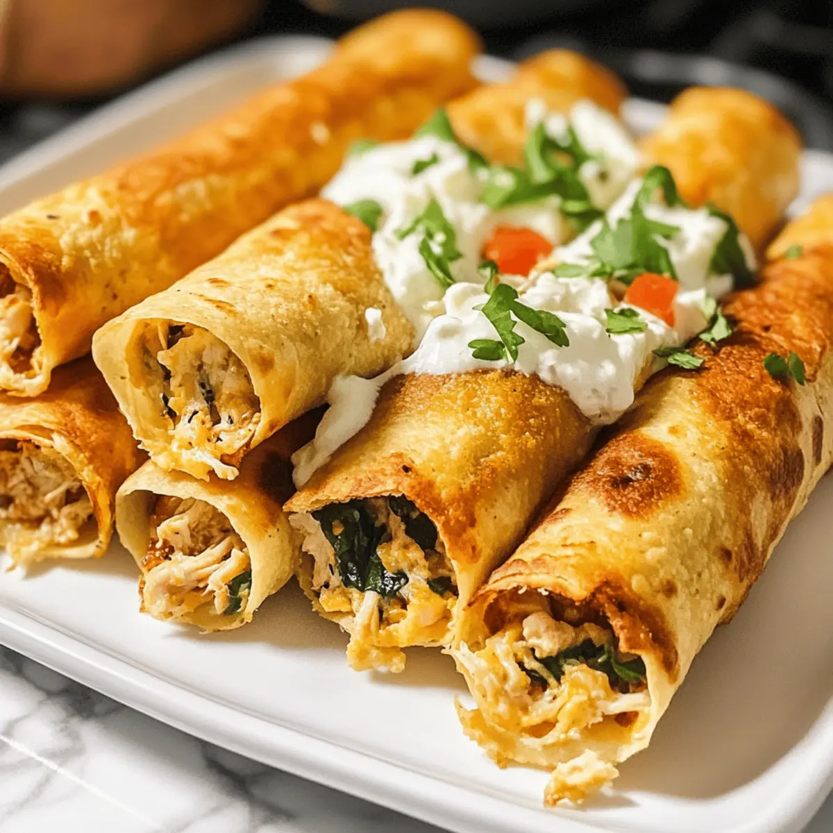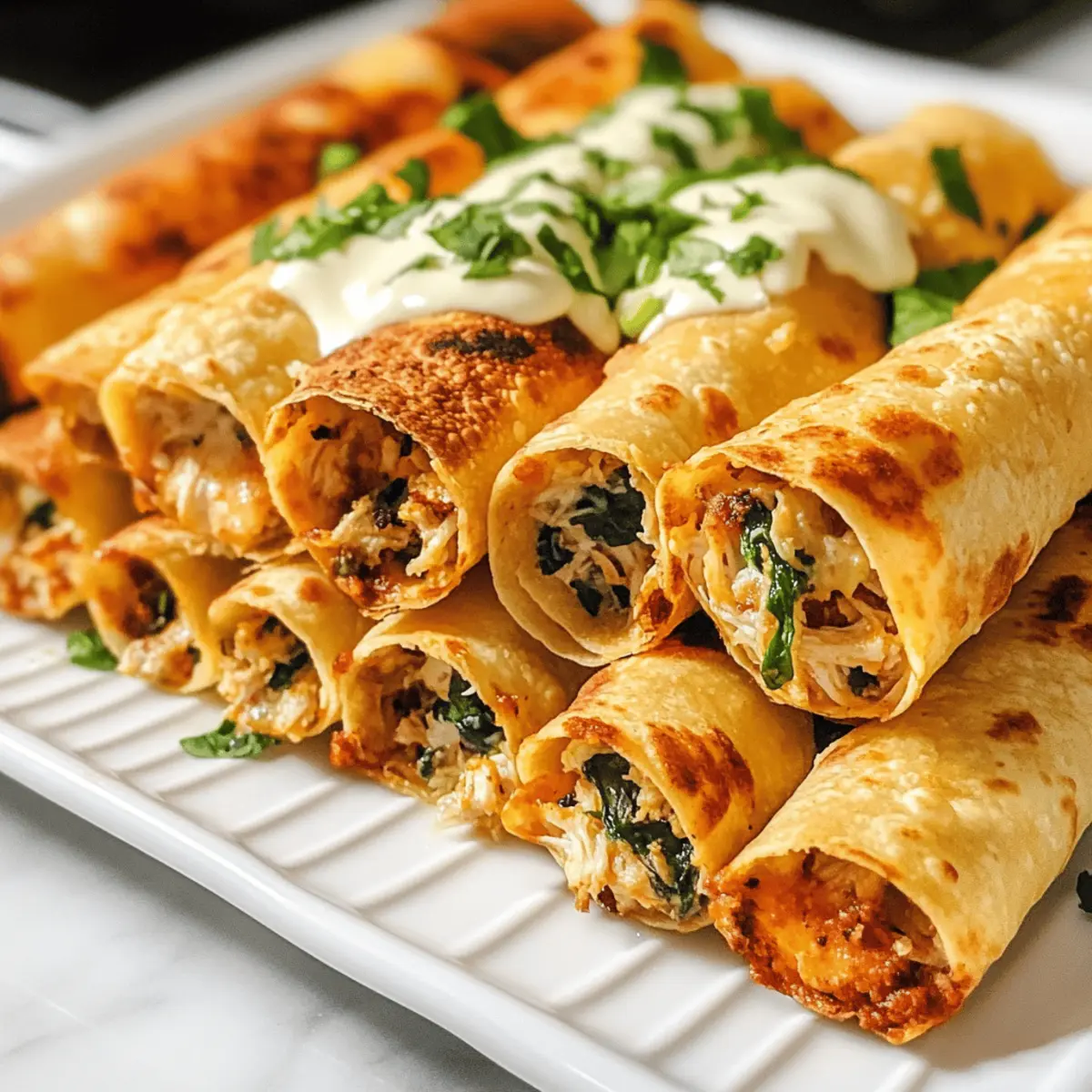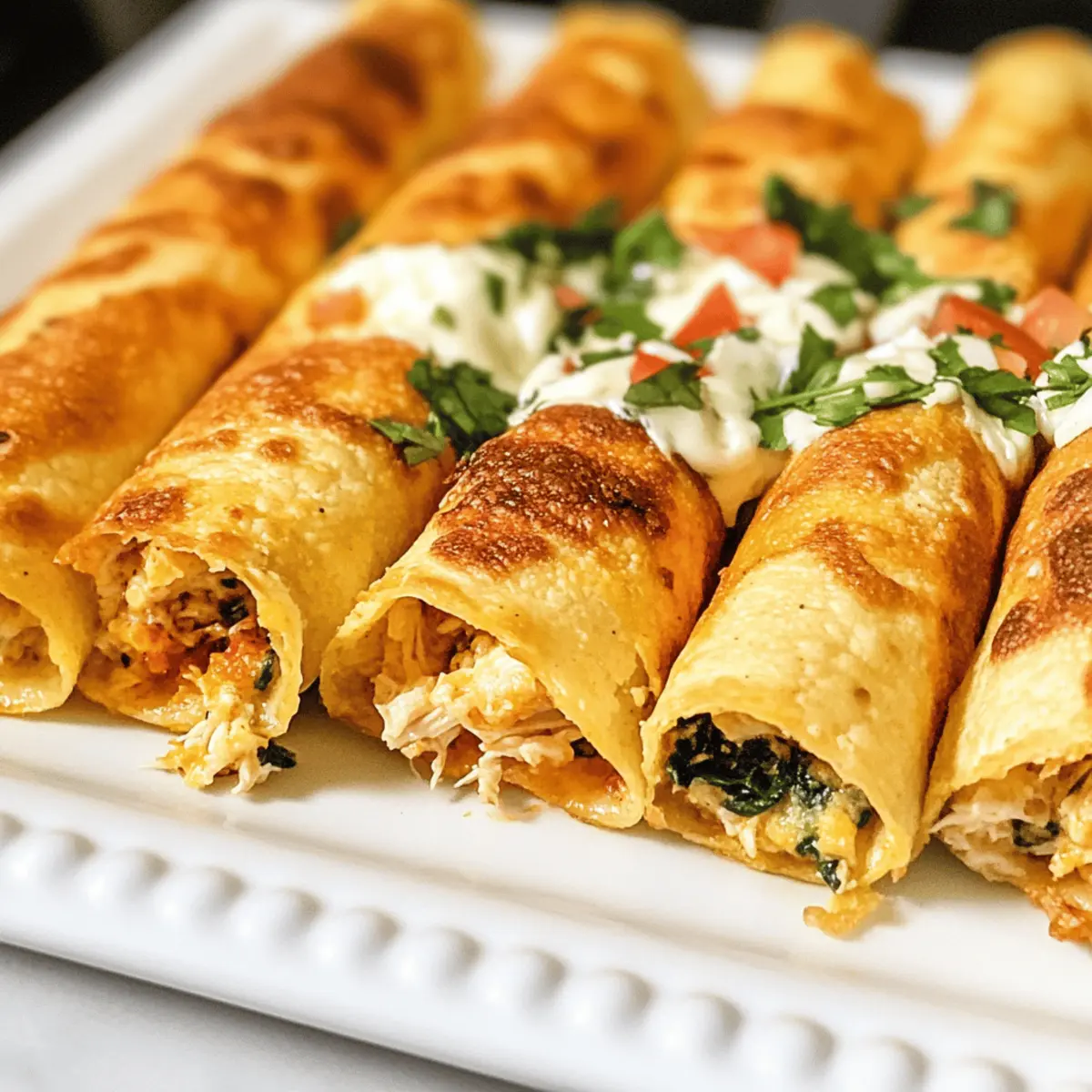 „Hast du schon einmal die knackige Köstlichkeit von frisch zubereiteten Taquitos erlebt?“ Diese kleinen, goldbraunen Rollen sind ein wahres Fest der Aromen und Texturen. In meinem Rezept für Crispy Chicken Taquitos vereinen sich herzhaft gefüllte Tortillas mit einer cremigen Mischung aus Hühnchen, Käse und Spinat – perfekt für diejenigen unter uns, die keine Lust auf Fast Food haben. Sie sind nicht nur blitzschnell zubereitet, sondern eignen sich auch hervorragend als köstliche Appetizer für dein nächstes Zusammenkommen mit Freunden oder Familie. Was könnte besser sein, als gemeinsam um den Tisch zu sitzen und diese herzhaften Bissen zu genießen? Lass uns gemeinsam entdecken, wie du diese mexikanischen Fingerfood-Schätze zaubern kannst! Warum sind Taquitos so unwiderstehlich? Einfachheit, die du lieben wirst: Mit nur wenigen Zutaten und einfachen Schritten kannst du köstliche Taquitos zaubern, die nie aus der Mode kommen. Vielseitigkeit, die begeistert: Variiere das Rezept nach Lust und Laune – probiere Rind- oder Schweinefleisch oder experimentiere mit verschiedenen Salsas, um nie den gleichen Taquito zweimal zu servieren. Perfekte Textur: Knusprige Tortillas umhüllen eine cremige Füllung, die einfach im Mund zergeht. Familienfreundlich: Ideal, um gemeinsam zu genießen – ob beim Abendessen oder als Snack bei einer Feier, sie bringen jeden zum Schlemmen. Entdecke auch unsere Tipps für homemade salsa und anderen köstlichen Beilagen, um deine Taquitos noch mehr zu verfeinern! Taquito-Zutaten • Um deine Taquitos zum Leben zu erwecken, hier die Liste der benötigten Zutaten: Für die Füllung Gerupftes Hühnchen (3 Tassen) – Gibt den Taquitos die Hauptproteinquelle; Rind- oder Schweinefleisch kann als schmackhafte Alternative verwendet werden. Frischkäse (6 Unzen, weich) – Sorgt für eine cremige Textur; du kannst auch Hüttenkäse für eine leichtere Variante nehmen. Babyspinat (1½ Tassen, gehackt) – Fügt Farbe und Nährstoffe hinzu; kann durch andere grüne Sorten wie Grünkohl ersetzt werden. Geriebener Colby Jack Käse (1½ Tassen) – Für einen tollen Geschmack und schmelzenden Spaß; ein mexikanischer Käsemix bringt eine interessante Geschmacksnote. Salsa (½ Tasse) – Verleiht den Taquitos eine zusätzliche Geschmacksdimension; nutze selbstgemachte oder gekaufte Salsa nach deinem Geschmack. Sauerrahm (⅓ Tasse) – Für eine cremige Note; griechischer Joghurt ist eine gesunde Alternative. Salz und Pfeffer – Zum Würzen; nach Belieben anpassen. Für die Tortillas Mais-Tortillas (12, 15 cm) – Die perfekte Basis für die Füllung; du kannst auch Weizentortillas verwenden, wenn du das bevorzugst. Für das Frittieren Pflanzen- oder Rapsöl – Zum Frittieren; wähle ein Öl mit hohem Rauchpunkt für die besten Ergebnisse. Bereite diese hochwertigen Zutaten vor und genieße das Kochen deiner köstlichen Taquitos! Schritt-für-Schritt-Anleitung für Crispy Chicken Taquitos Step 1: Öl erhitzen Erhitze in einem mittelgroßen Topf 1,5 cm Pflanzen- oder Rapsöl bei mittlerer Hitze, bis es 175 °C erreicht. Verwende ein Küchenthermometer, um die Temperatur zu überprüfen, damit deine Taquitos beim Frittieren schön knusprig werden. Achte darauf, dass das Öl schimmert, was dir signalisiert, dass es bereit ist für die nächste Phase. Step 2: Füllung zubereiten In einer großen Schüssel vermische das gerupfte Hühnchen, den Frischkäse, den gehackten Babyspinat, den geriebenen Colby Jack Käse, die Salsa und den Sauerrahm. Rühre gut um, bis alle Zutaten gleichmäßig verteilt sind. Schmecke die Mischung mit Salz und Pfeffer ab, um die Aromen zu intensivieren, bevor du mit dem Füllen der Tortillas beginnst. Step 3: Tortillas füllen Nimm eine Mais-Tortilla und platziere einige Esslöffel der Hühnchenfüllung in der Mitte. Rolle die Tortilla von unten nach oben fest zusammen und achte darauf, die Seiten einzuklappen, um die Füllung zu sichern. Wiederhole diesen Vorgang mit den restlichen Tortillas und der Füllung, um alle Crispy Chicken Taquitos vorzubereiten. Step 4: Taquitos frittieren Sobald das Öl heiß genug ist, lege die gefüllten Tortillas mit der Nahtseite nach unten vorsichtig in das Öl. Brate sie 2-3 Minuten lang oder bis sie goldbraun und knusprig sind. Verwende eine Zange, um die Taquitos vorsichtig zu wenden, und brate die andere Seite ebenfalls knusprig. Step 5: Abtropfen lassen Nehme die goldbraunen Taquitos aus dem Öl und lasse sie auf einem Teller mit Küchenpapier abtropfen. Das Papier hilft dabei, das überschüssige Öl zu entfernen, sodass deine Taquitos schön leicht und knusprig bleiben. Step 6: Servieren Sobald alle Crispy Chicken Taquitos frittiert sind, serviere sie warm mit deinen Lieblingsdips wie Salsa, Guacamole oder Sauerrahm. Diese köstlichen Häppchen sind perfekt für ein gemeinsames Essen oder als Snack für eine Party. Enjoy your meal! Taquitos: Köstliche Variationen Gestalte dein Taquito-Erlebnis einzigartig, indem du mit verschiedenen Zutaten und Geschmäckern experimentierst. Lass deiner Kreativität freien Lauf! Rind- oder Schweinefleisch: Tausche das Hühnchen gegen zartes Rind- oder Schweinefleisch aus. Die herzhaften Aromen bringen einen neuen Twist! Ziegenkäse: Verwende Ziegenkäse statt Frischkäse für einen würzigen und cremigen Effekt. Das verleiht deinen Taquitos eine ganz besondere Note. Mango-Salsa: Probier eine süße Mango-Salsa für eine fruchtige und erfrischende Variante. Die Kombination macht die Taquitos zu einem echten Hit! Schärfer mit Jalapeños: Füge einige gehackte Jalapeños in die Füllung oder als Topping hinzu. Ein kleiner Scharfmacher, der den Kick bringt! Spinat und Feta: Ersetze den Frischkäse durch Feta und füge zusätzlich Spinat hinzu. Die mediterrane Note wird neue Höhen erreichen. Vegan: Verwende pflanzliche Alternativen wie Soja- oder Tempeh-Füllungen und nimm vegane Käsealternativen. So kannst du die Taquitos in eine gesunde, pflanzenbasierte Mahlzeit v
