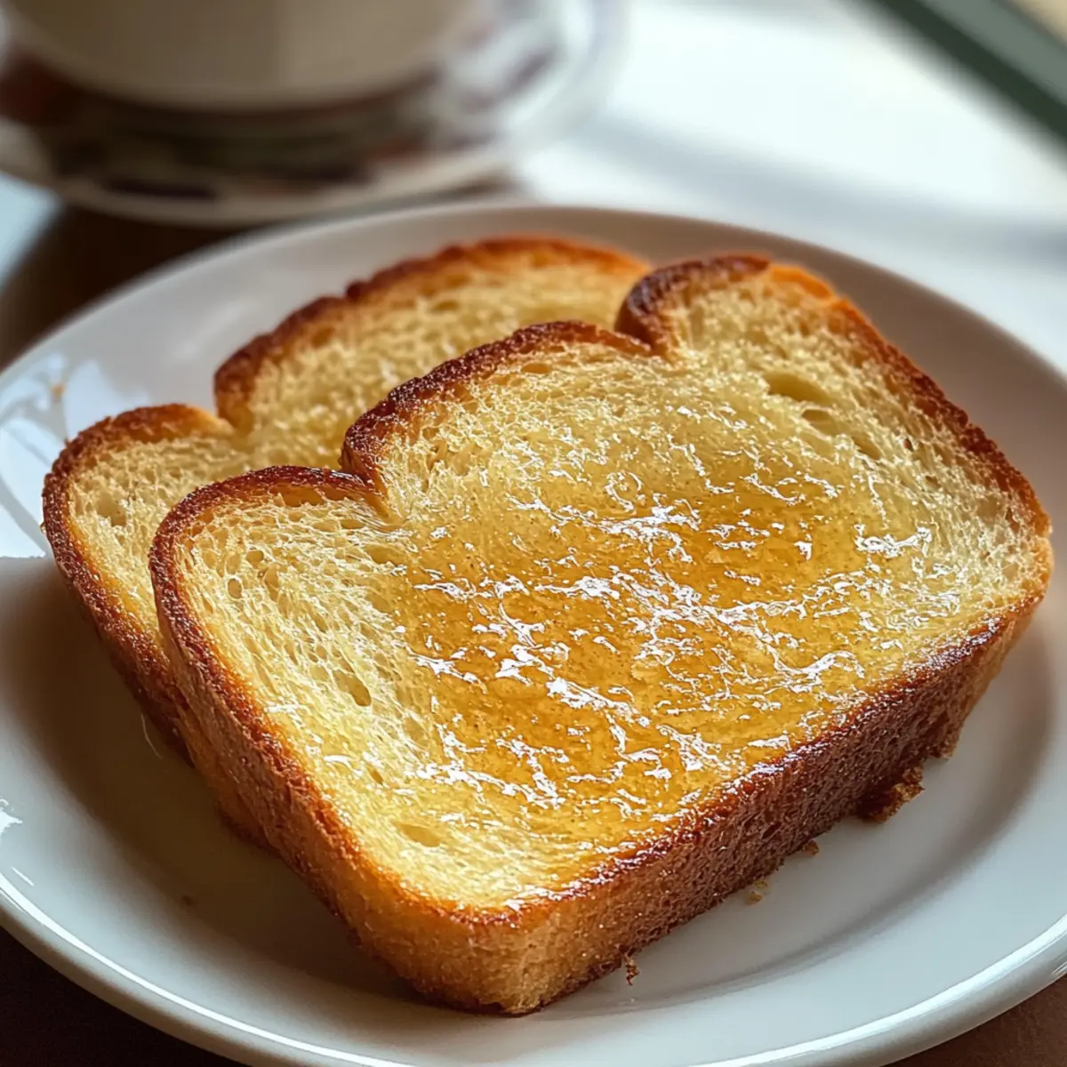 Es ist kaum zu glauben, dass etwas so Einfaches wie Texas-Toast-Brot so viel Freude bereiten kann! Wenn ich in die dicken, fluffigen Scheiben beiße, die mit butteriger Köstlichkeit geküsst sind, fühle ich mich sofort in meine Kindheit zurückversetzt, wo das Brot den perfekten Begleiter zu jeder Mahlzeit war. Dieses Rezept für Texas-Toast-Brot ist nicht nur kinderleicht zuzubereiten, sondern es verwandelt jede Brotzeit in ein wahres Festmahl. In nur 20 Minuten Vorbereitung zaubert man frisches, warmes Brot, das sich perfekt für gemütliche Brunches oder herzhafte Abendessen eignet. Mit etwa 250 Kalorien pro Scheibe bietet es zudem eine köstliche, aber trotzdem verantwortungsvolle Option für jeden Anlass. Welche kulinarischen Abenteuer planst du, um dieses fluffige Brot noch aufregender zu machen? Warum ist Texas-Toast-Brot so besonders? Fluffiges Texas-Toast-Brot ist der perfekte Begleiter für jede Mahlzeit! Einfachheit trifft auf Genuss: Mit nur wenigen Zutaten und unkomplizierten Schritten kannst du dieses himmlische Brot zaubern. Vielseitigkeit ist hier das A und O – ob zum Frühstück, Mittagessen oder Abendessen, es passt immer. Butterige Konsistenz und leicht knusprige Ränder machen jede Scheibe zum Genuss! Du kannst es sogar für French Toast verwenden; probiere es mal! Und wenn du nach weiteren köstlichen Brotrezepten suchst, schau dir unbedingt unser Hawaiianisches Bananenbrot an! Texas-Toast-Brot Zutaten • Hier sind die Zutaten, um dein perfektes Texas-Toast-Brot zuzubereiten: Für den Teig Allzweckmehl – sorgt für die Struktur und den Körper des Brotes; du kannst auch Vollkornmehl verwenden, was jedoch zu einem dichteren Brot führt. Warmes Wasser – hydratisiert das Mehl und aktiviert die Hefe; die ideale Temperatur ist etwa 43°C. Zucker – nährt die Hefe und fördert das Aufgehen; ersetzbar durch Honig für eine natürliche Süße. Aktive Trockenhefe – das wichtigste Hebemittel für den Teig; achte darauf, dass sie frisch ist. Salz – balanciert den Geschmack und stärkt das Gluten-Netzwerk; essentiell für den guten Geschmack. Ungesalzene Butter (geschmolzen) – verleiht dem Brot Reichtum und Zartheit; alternativ kannst du Margarine oder Olivenöl verwenden, um es milchfrei zu gestalten. Milch – sorgt für zusätzliche Feuchtigkeit und Fett; jede Milchvariante, ob tierisch oder pflanzlich, ist hier geeignet. Großes Ei – trägt zur Reichhaltigkeit und zur Verbesserung der Textur bei; für eine vegane Option kannst du einen Leinsamen-Ei-Ersatz nutzen. Für das Aroma (optional) Knoblauchpulver – fügt dem Brot eine herzhafte Note hinzu; kann weggelassen werden für schlichteres Brot. Zwiebelpulver – verstärkt die Geschmacksintensität; kann je nach Vorliebe weggelassen werden. Diese Zutaten sind die Grundlage für köstliche Texas-Toast-Brot-Scheiben, die du lieben wirst! Schritt-für-Schritt-Anleitung für Fluffiges Texas-Toast-Brot Step 1: Hefe aktivieren Zuerst löse einen Teelöffel Zucker in 240 ml warmem Wasser (ca. 43°C) auf. Streue dann die aktive Trockenhefe gleichmäßig darüber und lasse sie für 5–10 Minuten stehen, bis die Mischung schaumig wird. Diese Aktivierung ist wichtig, um sicherzustellen, dass die Hefe lebendig ist und das Texas-Toast-Brot richtig aufgeht. Step 2: Trockene Zutaten mischen In einer großen Schüssel vermische 500 g Allzweckmehl und 1 Teelöffel Salz. Wenn du Knoblauch- oder Zwiebelpulver für zusätzlichen Geschmack verwendest, füge diese jetzt hinzu. Stelle sicher, dass die trockenen Zutaten gut vermengt sind, um Klumpen zu vermeiden und eine gleichmäßige Textur für das fluffige Texas-Toast-Brot zu gewährleisten. Step 3: Nasse Zutaten hinzufügen Wenn die Hefe schaumig ist, gib die geschmolzene 60 g Butter, 120 ml Milch und ein großes Ei in die Hefe-Mischung. Verrühre alles gründlich, bis eine homogene Masse entsteht. Diese Mischung sorgt dafür, dass das Brot reichhaltig und saftig wird und einen köstlichen Geschmack erhält. Step 4: Teig mischen Füge nun die Flüssigkeit zu den trockenen Zutaten hinzu und vermenge sie, bis ein grober Teig entsteht. Vermeide übermäßiges Mischen; der Teig sollte gerade so zusammenkommen, um eine fluffige Textur für dein Texas-Toast-Brot zu erreichen. Du möchtest kleine Stückchen von Mehl sehen, das ist normal. Step 5: Teig kneten Gib den Teig auf eine bemehlte Arbeitsfläche und knete ihn für 8–10 Minuten. Achte darauf, dass der Teig glatt und elastisch wird; dies zeigt, dass das Gluten gut entwickelt ist. Dieser Schritt ist entscheidend für die fluffige Konsistenz deines finalen Texas-Toast-Brots. Step 6: Teig gehen lassen Forme den gekneteten Teig zu einer Kugel und lege ihn in eine leicht gefettete Schüssel. Decke die Schüssel mit einem sauberen Küchentuch ab und lasse den Teig an einem warmen Ort für etwa 1 Stunde ruhen, bis er sich verdoppelt hat. Der Teig sollte bei Berührung weich und elastisch sein. Step 7: Teig formen Nachdem der Teig gegangen ist, drücke ihn vorsichtig zusammen, um die Luft herauszulassen, und forme ihn zu einem Rechteck mit einer Dicke von etwa 2,5 cm. Diese Form hilft, deine Scheiben später gleichmäßig zu schneiden und gibt dem Texas-Toast-Brot seine charakteristische Form. Step 8: Scheiben schneiden Schneide den Teig mit einem scharfen Messer in dicke Scheiben von 2,5–4 cm. Platziere die geschnittenen Scheiben auf ein mit Backpapier ausgelegtes Backblech. Achte darauf, dass genügend Platz zwischen den Scheiben bleibt, damit sie beim Aufgehen nicht zusammenkleben. Step 9: Zweites Gehen Bedecke die geschnittenen Brotscheiben mit einem Tuch und lasse sie für 30–60 Minuten gehen, bis sie leicht aufgegangen und fluffig sind. Sie sollten bei sanfter Berührung federnd sein. In dieser Phase wird das Texas-Toast-Brot seine gewünschte Höhe erreichen. Step 10: Backen Heize den Ofen auf 190°C vor. Backe die Brotscheiben für 15–20 Minuten, bis sie goldbraun und beim Klopfen auf die Unterseite hohl klingen. D
