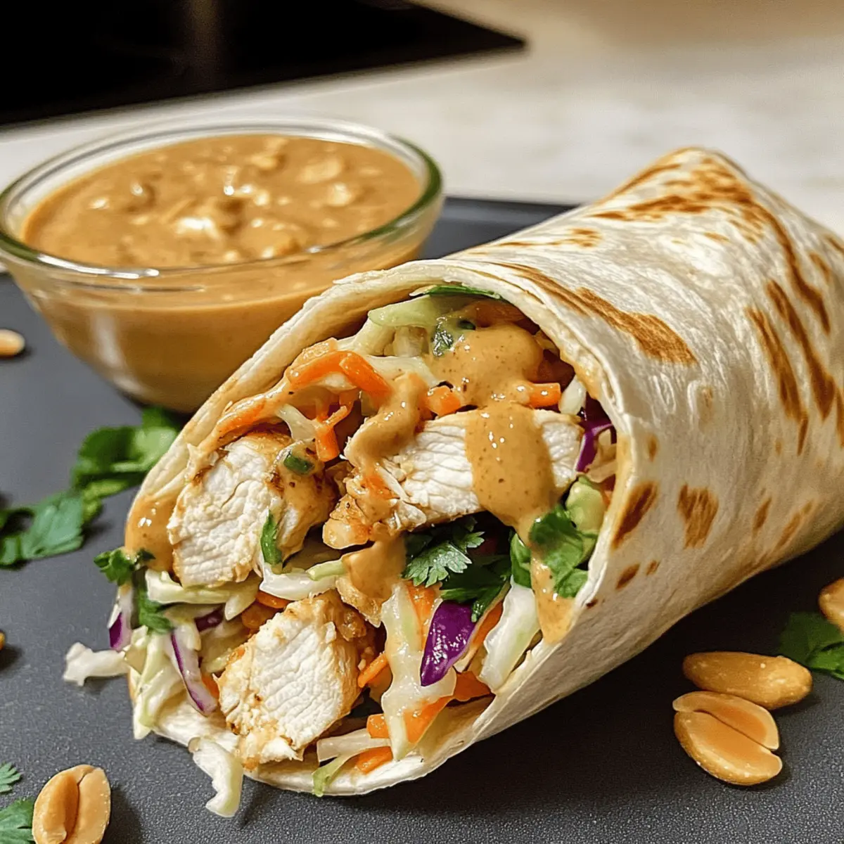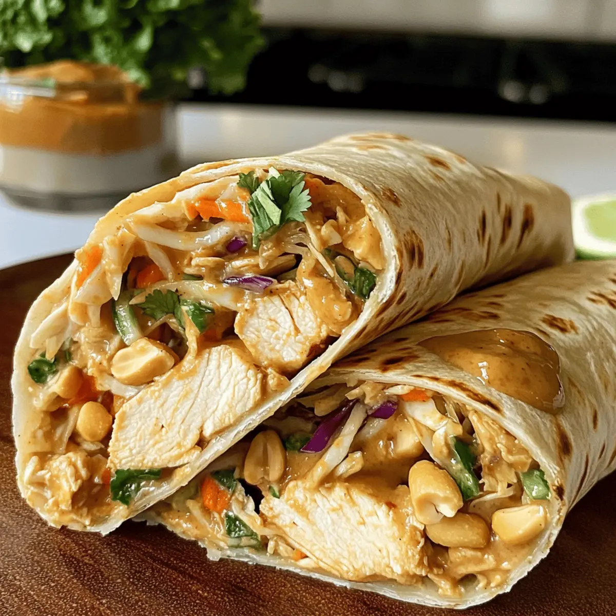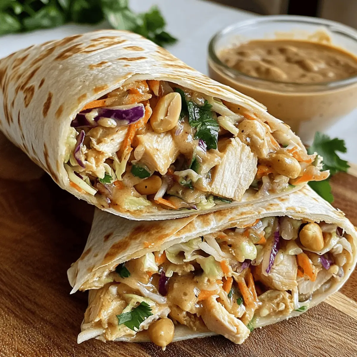 Auf meiner letzten Reise durch Thailand entdeckte ich die Köstlichkeit von Street Food, das mit einem unverwechselbaren Kick begeistert. Diese Thailändischen Erdnuss-Hühnchen-Wraps bringen all diese Aromen direkt in deine Küche. In nur 15–20 Minuten zauberst du ein schnelles, gesundes Gericht, das sowohl ein einfacher Wochenend-Snack als auch ein vollwertiges Mittagessen sein kann. Mit zartem Hühnchen, knackigem Krautsalat und einer cremigen, leicht scharfen Erdnusssauce sind diese Wraps nicht nur proteinreich, sondern auch anpassbar, damit du sie nach deinem Geschmack variieren kannst. Lust auf ein neues Küchenabenteuer? Lass uns in die Zubereitung eintauchen! Warum sind diese Wraps so unwiderstehlich? Einfachheit: Die Zubereitung dieser Thailändischen Erdnuss-Hühnchen-Wraps ist ein Kinderspiel und benötigt nur minimale Kochkenntnisse. Vielseitigkeit: Du kannst das Rezept ganz nach deinem Geschmack anpassen, sei es mit Tofu für eine vegetarische Variante oder anderem Gemüse. Wunderbarer Geschmack: Die Kombination aus zartem Hühnchen, knackigem Krautsalat und cremiger Erdnusssauce sorgt für ein Geschmackserlebnis, das dich begeistern wird. Schnell: In nur 15–20 Minuten hast du eine köstliche Mahlzeit zubereitet, die perfekt für hektische Tage ist. Gesundheitlich wertvoll: Diese Wraps sind proteinreich und könnten leicht glutenfrei sein, wenn du die richtigen Tortillas verwendest. Genieß diese kulinarische Entdeckung und zaubere dir ganz einfach leckere Wraps für die Mittagspause in nur wenigen Schritten! Thailändische Erdnuss-Hühnchen-Wraps Zutaten Für die Sauce Erdnussbutter – Gibt der Sauce Cremigkeit und Reichhaltigkeit; bei dickflüssiger Erdnussbutter für 30 Sekunden in die Mikrowelle stellen, um das Mischen zu erleichtern. Reduzierte Sojasauce – Fügt der Sauce Salz und Tiefe hinzu; lässt sich durch Tamari oder Kokosnuss-Aminos ersetzen für eine glutenfreie Option. Brauner Zucker oder Honig – Balanciert die Salzigkeit mit Süße; verwende Honig für einen natürlicheren Süßstoff. Reiswein-Essig – Verleiht der Sauce Säure und Frische; Apfelessig kann als Substitute verwendet werden. Gehackter Knoblauch – Fügt Schärfe und Aroma hinzu. Gehackter Ingwer – Bringt Wärme und Gewürz. Sriracha-Sauce – Einführung von Schärfe; nach Geschmack anpassen für deinen Würzgeschmack. Wasser – Verdünnt die Sauce für eine bessere Konsistenz; nach Bedarf verwenden, je nach gewünschter Dicke. Für die Füllung Hähnchenbrustfilets – Hauptproteinquelle; gekocht und gewürfelt verwenden, auch bereits zubereitetes Hähnchen ist praktisch. Krautsalat-Mix – Sorgt für eine knusprige Textur; passt einfach an oder füge Rotkohl für mehr Farbe hinzu. Geriebene Karotte (optional) – Zusätzliche Knusprigkeit und Süße. Gehackter Koriander – Frische Kräuter für mehr Geschmack; weglassen, wenn du kein Fan bist; alternativ mit Petersilie ersetzen. Geröstete, gesalzene Erdnüsse – Fügen Crunch und nussigen Geschmack hinzu; kann auch ungesalzen verwendet werden, wenn weniger Salz gewünscht ist. Für die Wraps Tortillas – Hülle für die Füllung; große Tortillas verwenden; Mais- oder Vollkornvarianten sind gute Alternativen. Diese Thailändischen Erdnuss-Hühnchen-Wraps sind nicht nur köstlich, sondern auch schnell und einfach zuzubereiten! Step-by-Step Instructions für Thailändische Erdnuss-Hühnchen-Wraps Step 1: Sauce zubereiten Mische in einer kleinen Schüssel die Erdnussbutter, Sojasauce, braunen Zucker oder Honig, Reiswein-Essig, gehackten Knoblauch, gehackten Ingwer, Sriracha und optional etwas Wasser. Rühre alles mit einem Schneebesen gut durch, bis eine glatte Sauce entsteht. Dies sollte etwa 2–3 Minuten dauern. Stelle die Sauce beiseite, damit sich die Aromen entfalten können. Step 2: Füllung vorbereiten In einer großen Schüssel kombiniere das gekochte und gewürfelte Hähnchen, den Krautsalat-Mix, die geriebene Karotte, den gehackten Koriander und die gerösteten Erdnüsse. Mische die Zutaten gründlich, bis sie gut verteilt sind. Diese Mischung sollte knackig und bunt aussehen, was die Frische der Thailändischen Erdnuss-Hühnchen-Wraps unterstreicht. Step 3: Dressing hinzufügen Träufle die vorbereitete Erdnuss-Sauce über die Hühnerfüllung in der großen Schüssel. Vermenge alles gut, damit die Sauce gleichmäßig an allen Zutaten haftet. Lasse die Mischung für etwa 5 Minuten ruhen, damit die Aromen besser durchziehen und die Füllung noch saftiger wird. Step 4: Tortillas erwärmen Erhitze die Tortillas in der Mikrowelle für 30 Sekunden, bis sie warm und flexibler sind. Dies erleichtert das Rollen. Achte darauf, sie nicht zu lange zu erhitzen, sonst könnten sie austrocknen. Gut erwärmte Tortillas sind ideal für die Zubereitung deiner Thailändischen Erdnuss-Hühnchen-Wraps. Step 5: Wraps füllen und servieren Teile die Füllung gleichmäßig auf die warmen Tortillas auf. Wickle jede Tortilla straff um die Füllung und klappe die Seiten ein, damit sie gut verschlossen sind. Serviere die Wraps sofort, um die Frische und den knusprigen Biss voll zu genießen. Expert Tips für Thailändische Erdnuss-Hühnchen-Wraps Füllung ruhen lassen: Lasse die Füllung nach dem Mischen für einige Minuten ruhen, damit die Aromen noch besser durchziehen. Tortillas richtig erwärmen: Überhitze die Tortillas nicht, um ein Austrocknen zu vermeiden. Die ideale Erwärmung sorgt für eine geschmeidige Hülle. Menge anpassen: Fülle die Wraps nicht zu voll, um das einfache Rollen zu gewährleisten. Optimal portionieren verhindert ein Auslaufen. Variationen ausprobieren: Nutze das Grundrezept für Thailändische Erdnuss-Hühnchen-Wraps und experimentiere mit anderen Proteinen wie Tofu oder Kichererbsen. Frisches Gemüse wählen: Wähle knackiges Gemüse für die Füllung, um den Wraps eine tolle Textur und Frische zu verleihen. Aufbewahrungstipps für Thailändische Erdnuss-Hühnchen-Wraps Raumtemperatur: Die Wraps sollten nicht läng