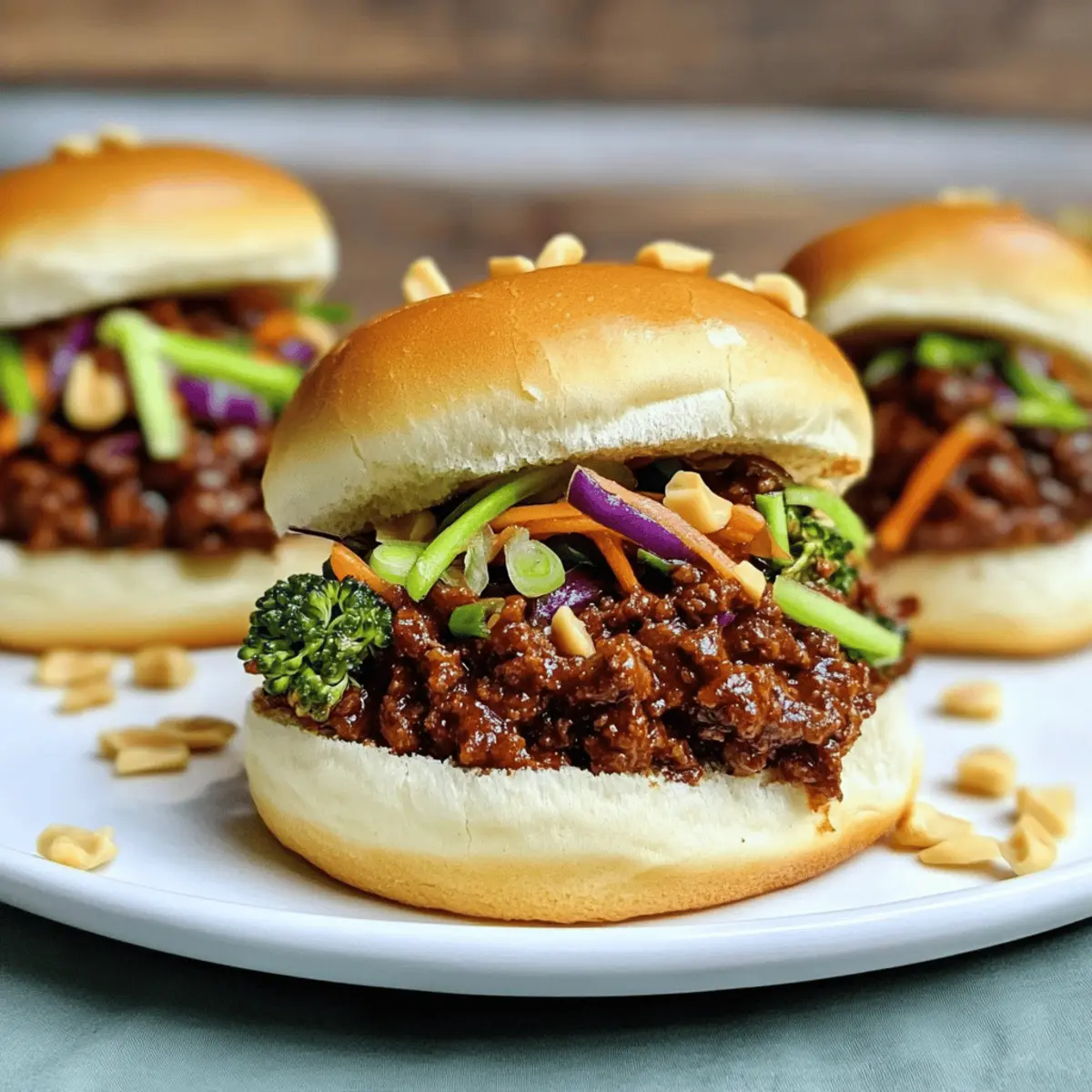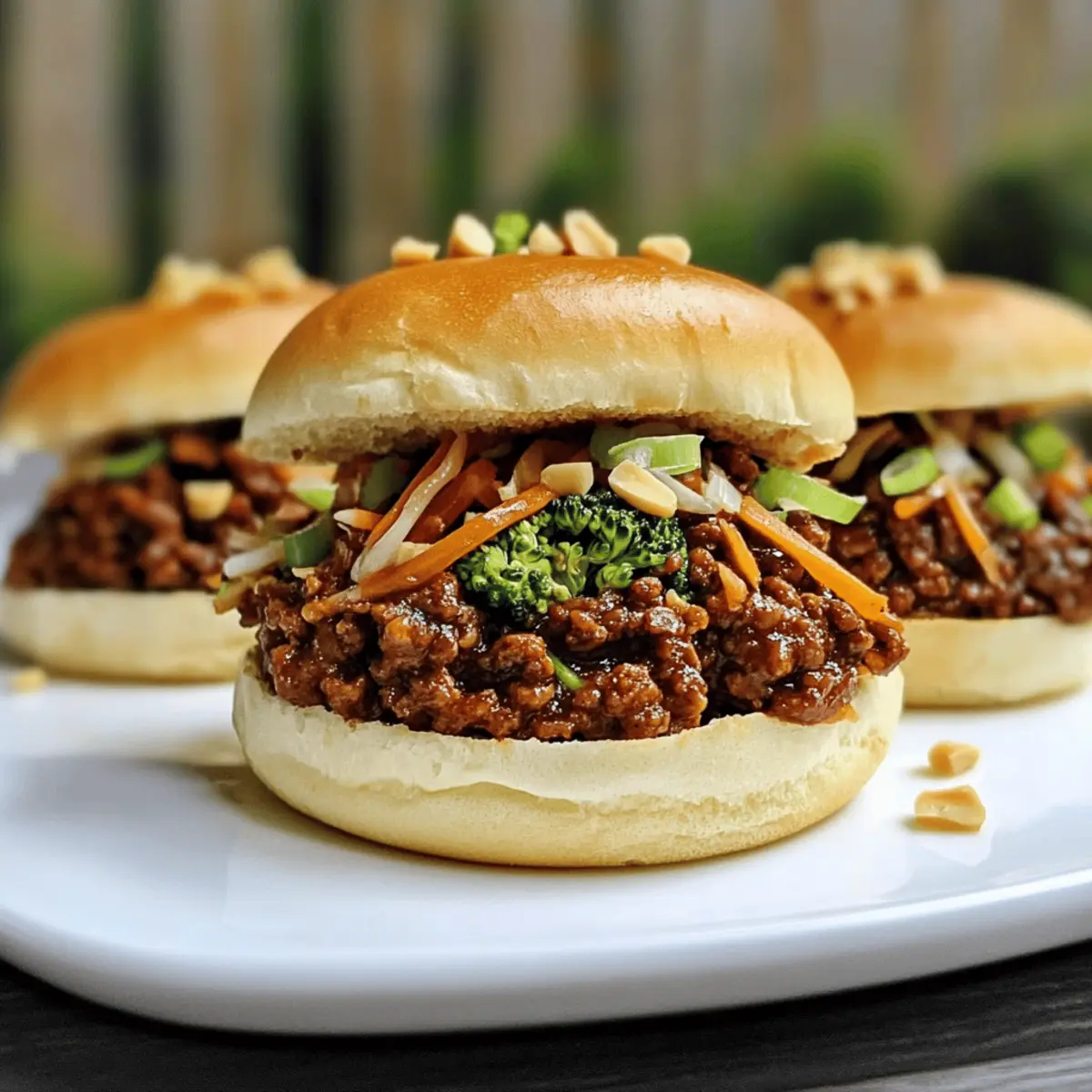 Wenn ich an einen schnellen Abendessen-Klassiker denke, kommen mir sofort die Sloppy Joes in den Sinn. Aber jetzt stelle ich mir vor, wie ich diesen geliebten Genuss mit einem aufregenden, thailändischen Twist kombiniere. Diese Thailändischen Sloppy Joe Slider bringen eine perfekte Mischung aus süßen und scharfen Aromen, die einfach unwiderstehlich sind. In nur 30 Minuten zaubern Sie ein Gericht, das nicht nur schnell zubereitet, sondern auch die ganze Familie begeistert. Der knusprige Brokkoli-Slaw und unser geliebter Hoisinsauce verleihen den Slidern das besondere Etwas. Neugierig, wie dieses Rezept Ihre Woche revolutionieren kann? Lass uns gleich loslegen! Warum Thailändische Sloppy Joe Slider lieben? Einzigartiger Geschmack: Die Kombination aus süßem Hoisin und würzigem Sriracha sorgt für einen aufregenden Geschmacksrausch. Schnelle Zubereitung: In nur 30 Minuten sind diese Slider fertig – perfekt für stressige Abendessen. Familienfreundlich: Jeder wird diese köstliche Fusion von klassischen Aromen lieben, selbst die Kriterien für das abendliche Essen sind erfüllt! Vielfältig anpassbar: Tauschen Sie das Rinderhackfleisch gegen Hähnchen oder Truthahn und experimentieren Sie mit verschiedenen Slaw-Varianten für zusätzlichen Crunch. Perfekte Portionen: Die kleinen Brötchen sind ideal für Buffets oder einfach zum Teilen bei einem gemütlichen Abendessen. Ein Hingucker: Beeindrucken Sie Ihre Gäste mit einem Gericht, das sowohl das Auge als auch den Gaumen anspricht! Thailändische Sloppy Joe Slider Zutaten Für die Füllung • Rinderhackfleisch (1,5 lbs) – Hauptproteinquelle, die eine herzhafte Textur bietet. Wählen Sie 80/20 für ein gutes Geschmacks- und Zartheitsverhältnis. • Gehackter Knoblauch (2 EL) – Fügt robusten Geschmack hinzu. Frischer Knoblauch kann durch abgepackten Knoblauch ersetzt werden. • Sesamöl (2 TL) – Verbessert die Tiefe und den Reichtum im Geschmack. Kann durch Pflanzenöl ersetzt werden, wenn es nicht verfügbar ist. • Ketchup (1/2 Tasse) – Bringt Süße und Feuchtigkeit in die Füllung. Tomatensauce kann als Variation verwendet werden. • Hoisinsauce (1/2 Tasse) – Verleiht dem Gericht seine charakteristische Süße; ein Muss für dieses Geschmacksprofil der thailändischen Sloppy Joe Slider. • Wasser (1/2 Tasse) – Passt die Konsistenz der Sauce an. Keine Substitution nötig. • Sojasauce mit reduziertem Natrium (2 EL) – Fügt Umami und salzigen Geschmack hinzu, ohne zu überladen. Reguläre Sojasauce kann auch verwendet werden, aber die Menge nach Geschmack reduzieren. • Reisweinessig (1 EL) – Sorgt für Säure und balanciert die Aromen. Weißer Essig kann eine Alternative sein. • Sriracha (1 TL) – Bringt Schärfe; erhöhen Sie die Menge für mehr Würze. • Frühlingszwiebeln (2, in Ringe geschnitten) – Bieten Frische und Crunch. Kann durch gehackte Schnittlauch ersetzt werden. • Süße Hawaiianische Sliderbrötchen (8) – Weiche, leicht süße Brötchen für die Zubereitung der Slider. Traditionelle Burgerbrötchen sind eine mögliche Alternative. • Brokkoli-Slaw (1 Tasse) – Fügt Crunch und Nährstoffe hinzu. Kann durch geschnittenen Kohl oder einen Coleslaw-Mix ersetzt werden. • Erdnüsse (1 EL, gehackt) – Optionale Garnitur für zusätzlichen Crunch; weglassen für eine nussfreie Option. Für die Garnitur • Zusätzliche Frühlingszwiebeln – Mehr Frische für das Finish. • Geröstete Erdnüsse – Steigert den crunchigen Genuss – besonders lecker! Schritt-für-Schritt-Anleitung für Thailändische Sloppy Joe Slider Step 1: Rinderhackfleisch anbraten Heizen Sie eine große Pfanne bei mittlerer Hitze vor. Geben Sie das Rinderhackfleisch hinein und braten Sie es für etwa 5-6 Minuten an, bis es vollständig durchgegart ist und eine goldbraune Farbe annimmt. Achten Sie darauf, das Fleisch während des Bratens mit einem Kochlöffel zu zerkleinern, um eine gleichmäßige Garung zu gewährleisten. Step 2: Knoblauch und Sesamöl hinzufügen Fügen Sie den gehackten Knoblauch und das Sesamöl zum angebratenen Rinderhackfleisch in der Pfanne hinzu. Braten Sie diese Mischung für eine weitere Minute an, bis der Knoblauch duftet und leicht goldbraun ist. Dies verleiht der Füllung für die Thailändischen Sloppy Joe Slider ein intensives Aroma. Step 3: Sauce mischen Gießen Sie Ketchup, Hoisinsauce, Wasser, Sojasauce, Reisweinessig und Sriracha in die Pfanne. Rühren Sie alles gründlich um, sodass sich die Zutaten gut vermischen. Diese Sauce sorgt für die köstliche süß-scharfe Note, die den Thailändischen Sloppy Joe Slider ausmacht. Step 4: Sauce köcheln lassen Lassen Sie die Mischung für etwa 5-6 Minuten bei niedriger Hitze köcheln, damit sich die Aromen entfalten können und die Sauce etwas eindickt. Rühren Sie gelegentlich um, um ein Anbrennen zu verhindern. Die Füllung sollte dann eine schöne, cremige Konsistenz erreichen. Step 5: Buns toasten Während die Füllung köchelt, nehmen Sie eine separate Pfanne oder einen Toaster und toasten die süßen Hawaiianischen Sliderbrötchen, bis sie goldbraun sind. Dies dauert in der Regel 2-3 Minuten. Ein leicht geröstetes Brötchen sorgt dafür, dass die Slider nicht durchweichen. Step 6: Füllung auf Brötchen geben Nehmen Sie die gerösteten Brötchen aus der Pfanne und löffeln Sie die köstliche Rinderhackfüllung gleichmäßig auf die Unterseite jedes Brötchens. Achten Sie darauf, großzügig zu sein, damit jeder Biss des Thailändischen Sloppy Joe Slider voller Geschmack ist. Step 7: Mit Garnituren belegen Füllen Sie die Slider mit frischem Brokkoli-Slaw, gehackten Erdnüssen und den geschnittenen Frühlingszwiebeln. Diese Zutaten bringen zusätzliches Gemüse und Crunch, was die Slider noch unwiderstehlicher macht. Legen Sie die obere Brötchenhälfte darauf und bereiten Sie sich darauf vor, Ihre Gäste zu beeindrucken! Lagerungstipps für Thailändische Sloppy Joe Slider Zimmertemperatur: Diese Slider sollten nicht bei Zimme