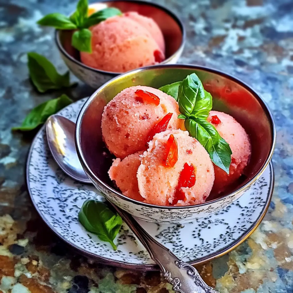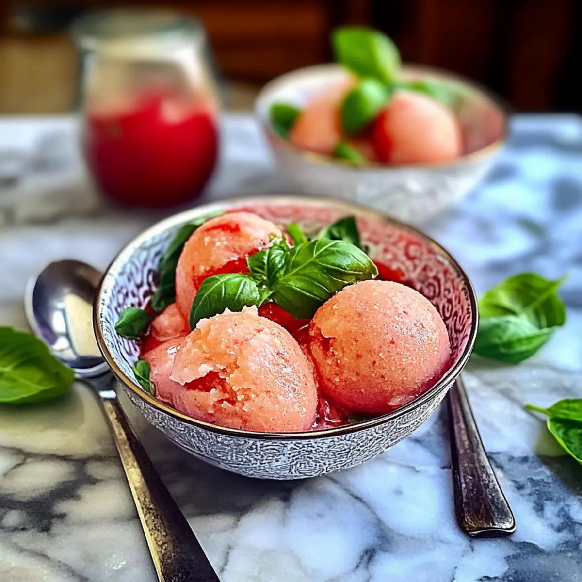 Stell dir vor, du bist im Hochsommer, die Sonne scheint, und du hast Lust auf etwas Erfrischendes, das nicht nur kühlt, sondern auch begeistert. Genau das ist mein Tomatensorbet, eine unverhoffte Köstlichkeit, die deine Geschmacksknospen auf eine ganz neue Art stimuliert! Diese einzigartige Kombination aus reifen Tomaten, spritzigem Zitronensaft und einem Hauch von Chili vereint die frischen Aromen des Sommers und bietet dir eine schmackhafte, gesunde Wahl – perfekt als Vorspeise oder als erfrischender Gaumenschmeichler zwischen den Gängen. Und das Beste? Die Vorbereitung ist schnell und unkompliziert! Lass uns gemeinsam entdecken, wie du dieses köstliche Sorbet in deiner eigenen Küche zubereiten kannst – bist du bereit für einen aufregenden Twist auf das klassische Dessert? Warum wirst du dieses Rezept lieben? Frische Aromen: Die Kombination aus reifen Tomaten und spritzigem Zitronensaft gibt deinem Gaumen ein Sommer-Upgrade. Einfache Zubereitung: Mit nur wenigen Zutaten und einfachen Schritten ist dieses Sorbet in kürzester Zeit fertig. Gesundheitsbewusst: Glutenfrei, vegan und kalorienarm – der perfekte Genuss, ohne ein schlechtes Gewissen! Vielfältig: Serviere es als frischen Starter oder zwischen den Gängen, um das Aroma zu beleben. Ungewöhnliche Überraschung: Diese ausgefallene Geschmacksrichtung wird deine Gäste garantiert beeindrucken und sorgt für Gespräche am Tisch. Probier die Kombination mit Mozzarella-Spiessen für ein schmackhaftes Erlebnis! Tomatensorbet Zutaten Für das Sorbet: • 600g große, reife Tomaten – die Basis für den vollen Tomatengeschmack; wähle die besten, um ein intensives Aroma zu erzielen. • Saft von 1 Zitrone – bringt eine spritzige Frische; Limettensaft kann als alternative Zitrusnote verwendet werden. • 200g feiner Zucker – süßt das Sorbet ausgleichend zu den Tomaten; in dringenden Fällen kann auch Haushaltszucker verwendet werden. • 4 Scheiben rote Chili – fügt eine milde Schärfe hinzu; passe die Menge nach Geschmack an oder lasse sie weg für eine milde Variante. • 12 Basilikumblätter – bringen eine aromatische Note, die hervorragend zu Tomate passt; alternativ kannst du auch Minze für eine frische Wendung nehmen. Schritt-für-Schritt-Anleitung für Tomatensorbet Schritt 1: Tomaten vorbereiten Bringe einen Topf mit Wasser zum Kochen und blanchiere die großen, reifen Tomaten für etwa 30 Sekunden, bis sich die Haut leicht löst. Die Tomaten anschließend in kaltes Wasser tauchen, um den Kochvorgang zu stoppen. Danach die Haut abziehen und die Tomaten grob hacken. Dies ist der erste Schritt zur Zubereitung deines frischen Tomatensorbets. Schritt 2: Zutaten mixen Gib die geschälten und gehackten Tomaten zusammen mit dem Saft von 1 Zitrone, 200g feinem Zucker, den Chili-Scheiben und 12 Basilikumblättern in einen Mixer. Mixe die Mischung auf hoher Stufe, bis sie vollkommen glatt ist und eine lebendige Farbe erreicht wird. Der Zucker sollte sich vollständig aufgelöst haben und das Ergebnis wird die ausgeglichene Süße und Frische für dein Tomatensorbet liefern. Schritt 3: Kühlen Fülle die gemixte Mischung in einen luftdichten Behälter und stelle ihn für mindestens eine Stunde in den Kühlschrank. Dadurch wird die Basis des Tomatensorbets gut durchgekühlt, was für die Textur beim späteren Einfrieren entscheidend ist. Achte darauf, dass die Mischung eine angenehme Kälte erreicht, bevor du mit dem nächsten Schritt fortfährst. Schritt 4: Gefrieren Nehme die abgekühlte Mischung aus dem Kühlschrank und gieße sie in eine Eismaschine. Churnen gemäß den Anweisungen des Herstellers, in der Regel für etwa 20-30 Minuten, bis die Konsistenz deines Tomatensorbets glatt und cremig ist. Achte darauf, dass sich eine luftige Textur bildet, die für ein perfektes Sorbet unerlässlich ist. Schritt 5: Servieren oder Lagern Sobald das Tomatensorbet die gewünschte Konsistenz erreicht hat, kannst du es sofort servieren oder in einen gefriergeeigneten Behälter umfüllen. Decke den Behälter ab und lagere das Sorbet im Gefrierfach für bis zu einer Woche. Sollte das Sorbet zu fest gefroren sein, lasse es einige Minuten bei Raumtemperatur stehen, damit es leichter portionierbar wird. Expertentipps für Tomatensorbet Reife Tomaten wählen: Achte darauf, dass die Tomaten vollreif sind, um den besten Geschmack für dein Tomatensorbet zu erzielen. Unreife Tomaten können bitter sein. Zucker anpassen: Probiere die Mischung vor dem Hinzufügen des gesamten Zuckers und passe die Menge je nach Süße der Tomaten an. Ein Übermaß kann den frischen Tomatengeschmack überdecken. Gut kühlen: Lasse die Mischung ausreichend im Kühlschrank kühlen, bevor du sie in die Eismaschine gibst. Dies verbessert die Textur und sorgt für ein besseres Endergebnis. Alternativen ohne Eismaschine: Wenn du keine Eismaschine hast, fülle die Mischung in eine flache Schale und rühre alle 30 Minuten um, um Eis-Kristalle zu verhindern und ein cremiges Tomatensorbet zu erhalten. Chili nach Geschmack: Passe die Menge der Chili je nach gewünschtem Schärfegrad an. Wenn du einen milden Geschmack bevorzugst, kannst du sie auch ganz weglassen. Tomatensorbet Vorausschauend Zubereiten Dieses Tomatensorbet ist ideal für alle, die ihre Mahlzeiten im Voraus planen möchten! Du kannst die geschälten und grob gehackten Tomaten sowie die anderen Zutaten bis zu 24 Stunden im Voraus vorbereiten, indem du sie in einem luftdichten Behälter im Kühlschrank lagerst. So behalten sie ihre Frische und den intensiven Geschmack. Wenn du bereit bist, das Sorbet zuzubereiten, einfach die Mischung in die Eismaschine geben und gemäß den Herstelleranweisungen für etwa 20-30 Minuten churnen. Um die Qualität zu erhalten, achte darauf, das Sorbet nicht zu lange einzufrieren; es bleibt am besten, wenn es innerhalb einer Woche verzehrt wird. Auf diese Weise hast du immer einen erfrischenden Genuss zur Hand! Lagerungstipps für Tomatensorbet Fridge: Bewahre das Tomaten