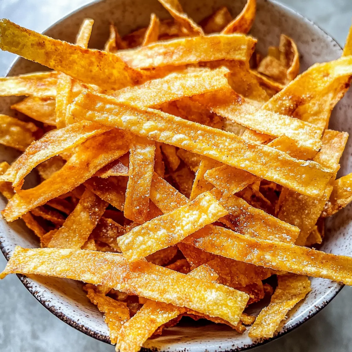Als ich neulich in meiner Küche stand, überkam mich die Lust auf etwas Knuspriges. Ich wollte unbedingt meine Lieblingsgerichte aufpeppen und entdeckte, dass ich im Handumdrehen Tortilla-Streifen zaubern kann—mit nur drei Zutaten! Diese kleinen, aber feinen Streifen sind unwiderstehlich knusprig und verleihen jeder Suppe, jedem Chili oder Salat den perfekten Crunch. Ob Sie sich für das gesunde Backen im Ofen entscheiden oder die klassische Frittiermethode wählen, diese Tortilla-Streifen sind so vielseitig, dass sie in jede Küche passen. Außerdem sind sie eine tolle Möglichkeit, ein einfaches Gericht im Handumdrehen aufzupeppen. Neugierig, wie Sie diese gesunden und schmackhaften Snacks zubereiten können? Lassen Sie uns gemeinsam den nächsten Schritt wagen! Warum sind Tortilla-Streifen so unwiderstehlich? Einfachheit pur: Mit nur drei Zutaten zaubern Sie diese köstlichen Tortilla-Streifen im Handumdrehen. Sie eignen sich perfekt für schnelle Snacks oder als Topping für Ihre Lieblingsgerichte. Knuspriger Genuss: Egal, ob Sie sie backen oder frittieren, die Streifen werden garantiert knusprig und goldbraun. Vielseitige Verwendung: Verwenden Sie sie als crunchy Extra auf Chili, Salaten oder als Dip-Begleiter für Guacamole. Gesunde Wahl: Diese selbstgemachten Snacks sind eine ausgezeichnete Alternative zu herkömmlichen Chips—genießen Sie puren Geschmack ohne die Zusatzstoffe des Fast Foods. Blickfang auf dem Tisch: Die frischen, knusprigen Streifen sind nicht nur lecker, sondern auch optisch ein Genuss für Ihre Gäste. Sie werden sicher nach mehr verlangen! Tortilla-Streifen Zutaten • Hinweis: Hier sind die einfachen Zutaten, um Ihre perfekten Tortilla-Streifen zuzubereiten! Für die Streifen Maistortillas – Sie bilden die Grundlage und bieten die richtige Struktur; frische Tortillas liefern das beste Ergebnis. Koscheres Salz – Verstärkt den Geschmack; passen Sie die Menge je nach Vorliebe an. Olivenöl-Spray (oder Pflanzen-/Rapsöl) – Fürs Backen oder Frittieren sorgt es für zusätzliche Knusprigkeit; das Sprühen ist eine leichte Option, während das Frittieren einen traditionelleren Crunch liefert. Schritt-für-Schritt-Anleitung für Krosse Tortilla-Streifen Schritt 1: Ofen vorheizen Heizen Sie den Ofen auf 190°C vor, idealerweise mit der Umluftfunktion, um eine gleichmäßige Hitzeverteilung zu erreichen. Ein vorgeheizter Ofen sorgt dafür, dass Ihre Tortilla-Streifen kross und goldbraun werden. Während der Ofen aufheizt, können Sie die Tortillas vorbereiten. Schritt 2: Tortillas würzen Sprayen Sie die Oberseite der Maistortillas leicht mit Olivenöl und streuen Sie gleichmäßig mit koscherem Salz darüber. Diese Zubereitung trägt dazu bei, dass die Tortilla-Streifen nicht nur knusprig werden, sondern auch einen fantastischen Geschmack entwickeln. Achten Sie darauf, die Tortillas gut zu bedecken, um das ideale Aroma zu erreichen. Schritt 3: Tortillas backen Legen Sie die gewürzten Tortillas auf ein mit Backpapier belegtes Backblech. Backen Sie die Tortillas für 6 Minuten und drehen Sie anschließend das Blech um genau wie beim Backen von Tortilla-Streifen. Setzen Sie das Backen für weitere 6 Minuten fort, bis die Streifen goldbraun und knusprig sind. Schritt 4: Öl für das Frittieren erhitzen Wenn Sie sich für die Frittiermethode entscheiden, erhitzen Sie in einer großen Pfanne bei mittlerer bis hoher Hitze genügend Pflanzen- oder Rapsöl, damit der Boden der Pfanne ca. 1,5 cm hoch ist. Überprüfen Sie die Temperatur, indem Sie einen kleinen Tropfen Wasser ins Öl geben; es sollte sofort sizzeln. Schritt 5: Tortillas schneiden Schneiden Sie die Tortillas zunächst in der Mitte durch und schneiden Sie dann jede Hälfte in 1,5 cm breite Streifen. Diese Größe sorgt dafür, dass die Tortilla-Streifen gleichmäßig garen. Sehen Sie, wie die Streifen sich auf dem Schneidebrett ansammeln—bald werden sie knusprig sein! Schritt 6: Streifen frittieren Frittieren Sie die Tortilla-Streifen portionsweise für 3-5 Minuten bis sie goldbraun und knusprig sind. Wenden Sie die Streifen regelmäßig, um sicherzustellen, dass sie gleichmäßig gegart werden und einen wunderbaren Crunch erhalten. Die goldene Farbe zeigt Ihnen an, dass sie perfekt sind. Schritt 7: Abtropfen und würzen Verwenden Sie eine Schöpfkelle, um die frittierten Streifen vorsichtig aus dem Öl zu heben, und legen Sie sie auf einen mit Küchenpapier ausgelegten Teller. Während die Streifen noch warm sind, streuen Sie sofort etwas koscheres Salz darüber, um den Geschmack zu intensivieren und den knusprigen Genuss zu verstärken. Tortilla-Streifen Variationen für jeden Geschmack Lassen Sie Ihrer Kreativität freien Lauf und passen Sie die Rezeptur ganz nach Ihren Vorlieben an! Glutenfrei: Verwenden Sie maiz-basierte Tortillas, um eine glutenfreie Variante zu kreieren, die den klassischen Geschmack behält. Würzige Variante: Fügen Sie vor dem Backen etwas Paprika oder Cayennepfeffer hinzu. Spüren Sie die angenehme Schärfe bei jedem Bissen! Käse-Streifen: Bestreuen Sie die Tortilla-Streifen nach dem Backen mit etwas geriebenem Käse, um einen köstlichen, schmelzigen Geschmack zu erzielen. Perfekt für Käseliebhaber! Taco-Gewürz: Mischen Sie etwas Taco-Gewürz mit dem Salz, bevor Sie die Tortillas würzen. Ein aufregender Geschmack, der Erinnerungen an Ihre Lieblings-Tacos weckt! Limonen-Dekoration: Spritzen Sie frischen Limettensaft über die fertigen Streifen für einen frischen, spritzigen Kick. Auch ideales Pairing mit Guacamole! Süße Variante: Für eine süße Snackalternative können Sie etwas Zimt und Zucker über die Streifen streuen. Unglaublich lecker zu Eis oder Quark! Avocado-Öl verwenden: Tauschen Sie das Olivenöl gegen Avocado-Öl aus, um zusätzliche gesunde Fette und einen feinen Geschmack zu erhalten. Ideal für eine gesunde Ernährung. Nacho-Stil: Fügen Sie nach dem Backen etwas geschmolzenen Käse und Jalapeños hinzu, um eine würzige Nacho-Version zu kreier