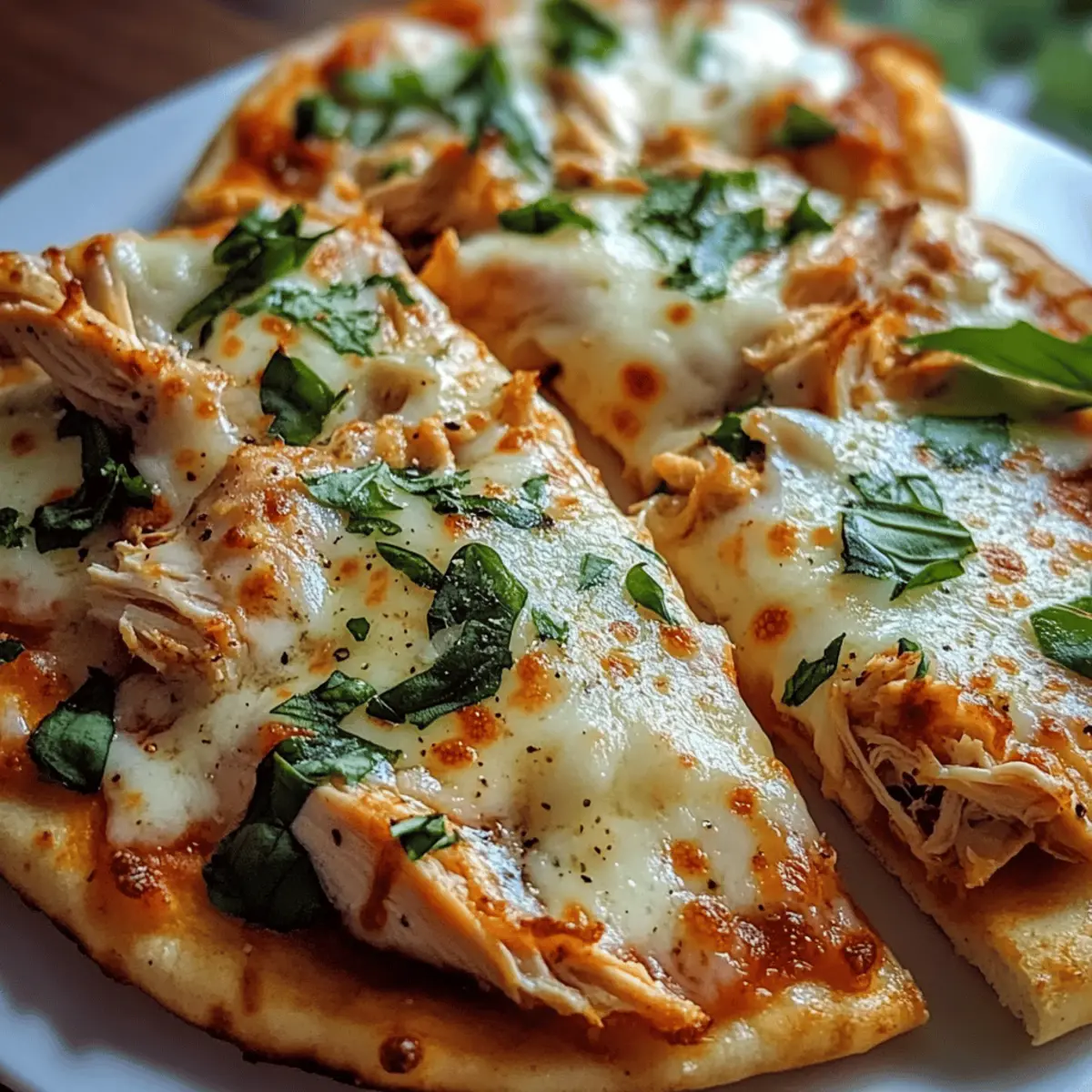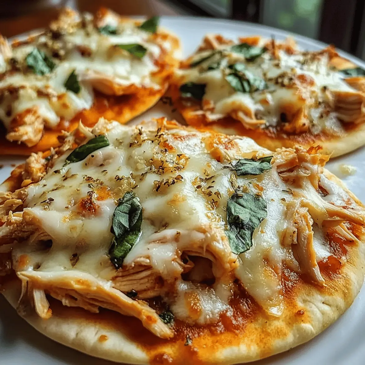 Das Knacken von frisch gebackenem Pita-Brot ist Musik in meinen Ohren, besonders wenn es mit verführerischem, toskanischem Knoblauch-Hühnchen belegt wird. Diese Toskanischen Knoblauch-Hühnchen Pita Pizzen sind nicht nur ein schnelles und einfaches Rezept für ein köstliches Abendessen, sondern auch ein wahrer Publikumsliebling, der Herzen (und Mägen!) im Sturm erobert. Mit ihrer knackigen Textur und dem geschmolzenen Käse sind sie die perfekte Lösung für stressige Wochenabende oder spontane Zusammenkünfte. Und das Beste daran? Diese Pizzen sind vielseitig und lassen sich nach Belieben anpassen – so kommt garantiert jeder auf seinen Geschmack. Neugierig, wie Sie mit nur wenigen Zutaten ein Stück Italien auf Ihren Tisch zaubern können? Warum sind diese Pita-Pizzen so besonders? Vielseitigkeit: Diese Toskanischen Knoblauch-Hühnchen Pita Pizzen bieten Ihnen unzählige Anpassungsmöglichkeiten – von verschiedenen Käsesorten bis hin zu einer Vielzahl an knackigem Gemüse. Schnelligkeit: In weniger als 15 Minuten auf dem Tisch, ist dieses Rezept perfekt für hektische Abende, an denen man dennoch etwas Leckeres genießen möchte. Gesundheitlich bewusst: Mit einer leichten, knusprigen Basis und frischen Zutaten sind diese Pizzen eine großartige, kalorienbewusste Option, die dennoch zufriedenstellt. Aromatische Intensität: Der köstliche Knoblauch und die italienischen Gewürze bringen jede Portion zum Strahlen und machen sie unwiderstehlich. Küchenliebe: Ideal für alle, die schnell etwas selbstgemachtes und Köstliches zaubern möchten, ohne auf Fast Food zurückgreifen zu müssen – schauen Sie sich auch unsere schnellen und gesunden Rezepte an! Zutaten für Toskanische Knoblauch-Hühnchen Pita Pizzen • Eine schnelle und einfache Zusammenstellung, die Ihre Küche in eine italienische Oase verwandelt! Für das Pita-Brot Pita-Brot – Die ideale Grundlage für die Pizza, die beim Backen eine schöne Knusprigkeit erhält. Für den Belag Rotisserie-Hühnchen – Bringt einen reichen, herzhaften Geschmack; kann durch gegrilltes Hühnchen ersetzt werden für mehr Frische. Gehackter Knoblauch – Fügt aromatische Tiefe hinzu; erhöhen Sie die Menge, wenn Sie es intensiver mögen. Geriebener Käse – Schmilzt wunderbar und sorgt für Cremigkeit; versuchen Sie eine Kombination aus Mozzarella und Provolone für zusätzlichen Geschmack. Italienische Gewürzmischung – Optimiert das Aroma; kann durch gleiche Teile getrockneten Basilikum, Oregano und Thymian ersetzt werden. Marinara-Sauce – Dient als Basis für die Pizza; tauschen Sie sie gegen Pesto aus, um einen frischen, kräuterigen Geschmack zu erzielen. Zusätzliche Toppings (optional) Frisches Gemüse – Zum Beispiel Spinat, Paprika oder Artischocken für mehr Nährstoffe und Farbe. Diese Toskanischen Knoblauch-Hühnchen Pita Pizzen sind nicht nur köstlich, sondern lassen sich auch leicht nach Ihren Vorlieben anpassen! Schritt-für-Schritt-Anleitung für Toskanisches Knoblauch-Hühnchen Pita Pizzen Step 1: Ofen vorheizen Heizen Sie den Ofen auf 200 °C (400 °F) vor, damit die Pizzen beim Backen gleichmäßig knusprig werden. Diese Temperatur sorgt dafür, dass der Käse herrlich schmilzt und die Pita-Brote eine schöne goldene Farbe annehmen. Alles bereit? Dann können Sie mit dem nächsten Schritt fortfahren. Step 2: Marinara-Sauce verteilen Nehmen Sie die Pita-Brote und verstreichen Sie eine großzügige Schicht Marinara-Sauce auf jedem Stück. Achten Sie darauf, die Ränder dabei frei zu lassen, damit die Pitas beim Backen schön aufgehen können. Der aromatische Geschmack der Sauce bildet die perfekte Basis für Ihr Toskanisches Knoblauch-Hühnchen. Step 3: Hühnchen und Käse hinzufügen Belegen Sie die Sauce gleichmäßig mit dem zerkleinerten Rotisserie-Hühnchen. Streuen Sie dann eine großzügige Menge geriebenen Käse darüber. Diese Kombination sorgt für eine köstliche Füllung und ergibt beim Schmelzen ein verlockendes Aroma. Ihre Pita-Pizzen bekommen nun langsam Gestalt. Step 4: Knoblauch und Gewürze streuen Verteilen Sie den gehackten Knoblauch gleichmäßig über die Käse-Hühnchen-Mischung und streuen Sie die italienische Gewürzmischung darüber. Der Knoblauch wird beim Backen verführerisch duften und das Gericht mit seinen Aromen bereichern. Diese zweite Geschmacksnote macht Ihre Toskanischen Knoblauch-Hühnchen Pita Pizzen ganz besonders. Step 5: Backen Schieben Sie die belegten Pitas in den vorgeheizten Ofen und backen Sie sie circa 10-12 Minuten lang. Halten Sie ein Auge auf die Pizzen: Wenn der Käse anfängt zu blubbern und eine goldene Farbe annimmt, sind sie bereit, serviert zu werden. Diese kurze Backzeit macht das Rezept besonders schnell und einfach. Step 6: Servieren Nehmen Sie die Toskanischen Knoblauch-Hühnchen Pita Pizzen vorsichtig aus dem Ofen und lassen Sie sie kurz abkühlen. Schneiden Sie sie in Viertel und servieren Sie sie sofort, um die beste Textur und den vollsten Geschmack zu genießen. Kombinieren Sie sie nach Belieben mit frischem Gemüse oder einem Salat als Beilage. Lagerungstipps für Toskanische Knoblauch-Hühnchen Pita Pizzen Raumtemperatur: Lassen Sie die Pizzen vollständig abkühlen und bewahren Sie sie in einem luftdichten Behälter auf, wo sie bis zu 2 Tage frisch bleiben. Kühlschrank: Die Pizzen können im Kühlschrank bis zu 3 Tage aufbewahrt werden. Wickeln Sie sie sorgfältig in Frischhaltefolie oder lagern Sie sie in einem luftdichten Behälter. Gefrierschrank: Für eine längere Lagerung lassen sich die Pizzen bis zu 2 Monate im Gefrierfach aufbewahren. Wickeln Sie sie gut in Aluminiumfolie, um Gefrierbrand zu vermeiden. Aufwärmen: Zum Aufwärmen backen Sie die Pizzen für etwa 10-15 Minuten bei 180°C (350°F) im Ofen, damit sie wieder knusprig und köstlich wie frisch zubereitet werden. Variationen & Alternativen für Toskanisches Knoblauch-Hühnchen Pita Pizzen Lassen Sie Ihrer Kreativität freien Lauf und gestalten Sie dieses Rezept ganz nach Ihre