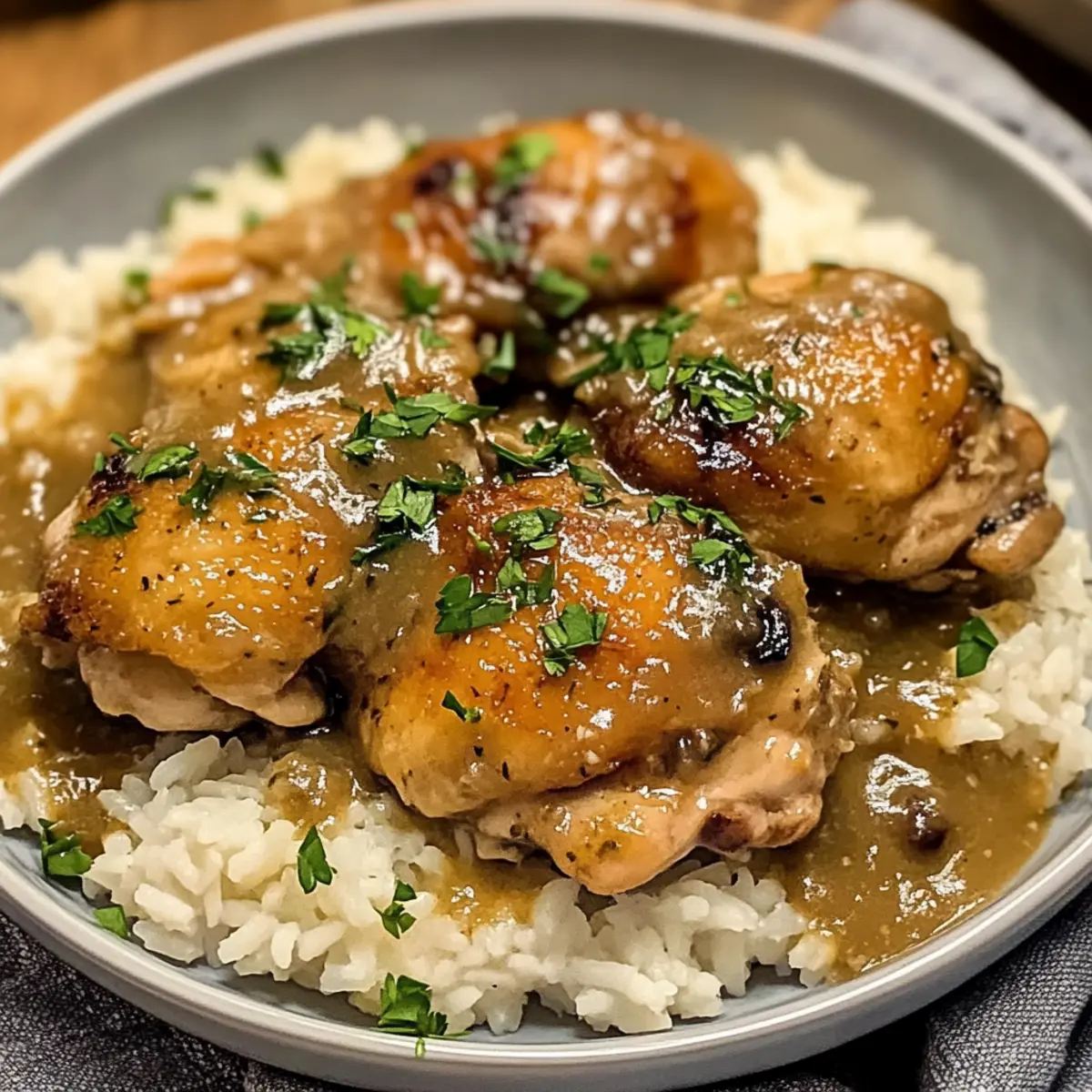 Wenn ich an gemütliche Abende denke, kommt mir sofort das Bild eines köstlichen, Überbackenen Hähnchens und Reis in den Sinn. Dieses Gericht ist nicht nur eine wahre Umarmung für die Seele, sondern auch ein schnelles und unkompliziertes Rezept, das in einer einzigen Pfanne zubereitet wird. Perfekt für stressige Wochentage, überzeugt es durch seine Vielseitigkeit – Sie können ganz nach Ihrem Geschmack variieren und Zutaten hinzufügen, die Sie gerade zur Hand haben. Ob mit knackigem Gemüse oder einer milderen Variante – die Möglichkeiten sind nahezu endlos! Lassen Sie sich von den Aromen in diesen herzhaften Gerichten verführen und erfahren Sie, wie einfach es ist, ein Stück südliche Küche auf Ihren Tisch zu zaubern. Was wäre, wenn ich Ihnen sage, dass Sie noch heute eine wundervolle Mahlzeit zaubern können? Warum lieben Sie Überbackenes Hähnchen und Reis? Einfachheit: Dieses Rezept erfordert nur grundlegende Kochfähigkeiten und ist in einer einzigen Pfanne zubereitet, was den Aufwand minimiert. Herzhafter Geschmack: Die Kombination aus zartem Hähnchen und würziger, cremiger Sauce entführt Sie sofort in die südliche Küche. Vielseitigkeit: Sie können das Gericht nach Belieben anpassen – fügen Sie Gemüse, verschiedene Reissorten oder Gewürze hinzu. Schnell zubereitet: Perfekt für hektische Wochentage, ist es in nur wenigen Schritten fertig und sorgt dennoch für einen unvergesslichen Genuss. Familienfreundlich: Dieses Gericht begeistert Groß und Klein und schafft eine behagliche Atmosphäre am Esstisch. Probieren Sie auch das Rezept für Kartoffel Und Kaese oder die Haehnchen Und Zucchini Pfanne als leckere Beilagen! Überbackenes Hähnchen und Reis Zutaten Hinweis: Hier sind die Zutaten für das köstliche Überbackene Hähnchen und Reis, perfekt für Ihr nächstes Familientreffen! Für das Hähnchen • Hähnchenschenkel mit Knochen – Diese sind saftig und geschmackvoll; Sie können auch entbeinte Stücke für eine schnellere Zubereitung verwenden. • Gemüseöl – Zum Anbraten des Hähnchens; verwenden Sie Olivenöl für zusätzlichen Geschmack. • Knoblauchpulver – Verleiht dem Gericht eine herzhaft-würzige Note; frischer Knoblauch ist eine großartige Alternative. Für die Reisgrundlage • Langkornreis – Der perfekte Grundbaustein für das Gericht; brauner Reis ist eine gesunde Option, benötigt jedoch mehr Kochzeit. • Hühnerbrühe – Für einen intensiven Geschmack; eine fettarme Variante hilft, das Gericht leichter zu machen. Für die Sauce • Schlagsahne – Macht die Sauce cremig; ersetzen Sie sie durch Kokosmilch für eine dairy-free Version. • Allzweckmehl – Verdickt die Sauce; verwenden Sie stattdessen Maisstärke für eine glutenfreie Option. • Zwiebel – Fügt Süße und Tiefe hinzu; Schalotten oder Lauch sind ebenfalls köstliche Alternativen. • Geschnittene Champignons – Sorgen für eine erdige Note; lassen Sie sie weg, wenn Sie eine leichtere Variante wünschen. • Salz und Pfeffer – Grundleger Gewürze; passen Sie die Menge nach Ihrem Geschmack an. Für die Garnitur • Frische Petersilie (optional) – Für ein frisches Finish und ein wenig Farbklecks auf dem Teller. Genießen Sie Ihre Kochzeit mit diesem Überbackenen Hähnchen und Reis und lassen Sie sich von den köstlichen Aromen verwöhnen! Schritt-für-Schritt-Anleitung für Überbackenes Hähnchen und Reis Schritt 1: Hähnchen würzen Würzen Sie die Hähnchenschenkel großzügig mit Salz, Pfeffer, Knoblauchpulver und Zwiebelpulver. Lassen Sie die Gewürze etwa 10 Minuten einziehen, damit das Hähnchen den Geschmack optimal aufnehmen kann. In der Zwischenzeit bereiten Sie die anderen Zutaten vor, um einen reibungslosen Kochablauf zu gewährleisten. Schritt 2: Hähnchen anbraten Erhitzen Sie in einer großen Pfanne bei mittlerer bis hoher Temperatur etwas Gemüseöl. Geben Sie die Hähnchenschenkel mit der Hautseite nach unten in die Pfanne und braten Sie sie 5-7 Minuten an, bis die Haut schön goldbraun ist. Wenden Sie die Schenkel und braten Sie sie weitere 5-7 Minuten, bis sie durchgegart sind. Nehmen Sie das Hähnchen aus der Pfanne und legen Sie es beiseite. Schritt 3: Gemüse anbraten Verwenden Sie die gleiche Pfanne, um die Zwiebeln und die geschnittenen Champignons bei mittlerer Hitze 3-4 Minuten lang anzubraten, bis sie weich und leicht golden sind. Rühren Sie gelegentlich um, um ein Anbrennen zu verhindern, und genießen Sie den wundervollen Duft, der jetzt in Ihrer Küche entsteht. Schritt 4: Sauce zubereiten Streuen Sie das Allzweckmehl über das angebratene Gemüse und rühren Sie für 1-2 Minuten, um das Mehl leicht zu rösten. Gießen Sie dann langsam die Hühnerbrühe dazu und rühren Sie kontinuierlich, um Klumpen zu vermeiden. Lassen Sie die Mischung 3-4 Minuten lang kochen, bis sie eine dicke, cremige Konsistenz erreicht hat. Schritt 5: Zutaten vermengen Fügen Sie die Schlagsahne zur Sauce hinzu und rühren Sie vorsichtig um. Legen Sie die angebratenen Hähnchenschenkel zurück in die Pfanne, decken Sie sie ab und lassen Sie alles bei niedriger Hitze 30 Minuten lang sanft köcheln. So nehmen die Hähnchenschenkel den köstlichen Geschmack der Sauce auf. Schritt 6: Reis kochen Bereiten Sie den Langkornreis gemäß der Packungsanleitung zu, indem Sie in der Regel 2 Tassen Wasser zum Kochen bringen und den Reis dann für etwa 15-20 Minuten köcheln lassen. Achten Sie darauf, den Reis nach dem Kochen gut zugedeckt ruhen zu lassen, damit er schön fluffig wird. Schritt 7: Servieren Servieren Sie den fluffigen Reis auf Tellern und toppen Sie ihn großzügig mit der cremigen Sauce und den zarten Hähnchenschenkeln. Garniert mit frischer Petersilie, wenn gewünscht, wird Ihr Überbackenes Hähnchen und Reis zu einem echten Genuss. Was passt gut zu Überbackenem Hähnchen und Reis? Genießen Sie einen herzhaften Abend mit einer köstlichen Kombination, die das Geschmackserlebnis perfekt abrundet. Frischer grüner Salat: Eine leichte, knack