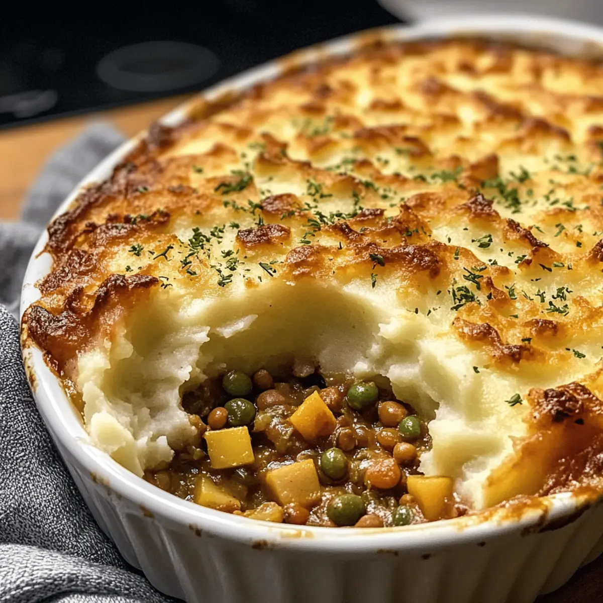 Wenn der Duft von frisch gebratenem Gemüse und würzigen Kräutern durch die Küche zieht, gibt es kaum etwas Besseres als ein warmes und einladendes Gericht, das den Tag erhebt. So ist es auch mit meiner vegetarischen Hirtenpastete, die einfach zuzubereiten ist und mit nur 10 Zutaten auskommt. Diese köstliche Comfort-Food-Option ist nicht nur eine tolle Wahl für Vegetarier, sondern verspricht auch eine gesunde Mahlzeit für alle, die sich von Fast Food verabschieden möchten. Die Kombination aus cremigem Kartoffelbrei und herzhaften Linsen und Gemüse schafft eine wunderbare Balance zwischen Geschmack und Nährstoffgehalt. Bist du bereit, deinen Gaumen mit dieser fantastischen, pflanzlichen Variante der klassischen Hirtenpastete zu verwöhnen? Warum wirst du diese Hirtenpastete lieben? Leichtigkeit: Die Zubereitung ist unkompliziert und erfordert keine speziellen Kochkünste, was sie perfekt für alle macht. Nahrhafte Zutaten: Mit gesunden Linsen und frischem Gemüse ist dieses Gericht nicht nur schmackhaft, sondern auch reich an Nährstoffen. Wohlfühl-Aroma: Der verlockende Duft von gebratenem Gemüse und Kräutern macht das Kochen zu einem genussvollen Erlebnis. Flexibel: Du kannst die Zutaten nach Belieben austauschen und anpassen, um dein persönliches, köstliches Rezept zu kreieren. Familienfreundlich: Diese vegetarische Hirtenpastete kommt bei jedem gut an und eignet sich hervorragend für ein gemeinsames Abendessen. Zeitsparend: In weniger als einer Stunde hast du ein herzhaftes Gericht fertig, das sich perfekt für vielbeschäftigte Wochen eignet. Vegetarische Hirtenpastete Zutaten Für die Füllung • Olivenöl – sorgt für Feuchtigkeit und Geschmack; du kannst auch Pflanzenöl oder Kokosöl verwenden. • Zwiebel (1, gewürfelt) – verleiht Süße und Tiefe; Schalotten können für einen milden Geschmack verwendet werden. • Karotten (2, gewürfelt) – tragen zur Süße und Textur bei; du kannst auch Pastinaken probieren. • Knoblauch (2 Zehen, fein gehackt) – verstärkt die Geschmacksvielfalt; frischer Knoblauch wird für den besten Geschmack empfohlen. • Champignons (1 Tasse, gehackt) – fügt Umami und Volumen zur Füllung hinzu; alternativ kannst du Auberginen oder Zucchini verwenden. • Gefrorene Erbsen (1 Tasse) – bietet Süße und einen guten Farbkick; frische Erbsen sind in der Saison besonders lecker. • Gekochte Linsen (1 Tasse) – liefert Protein und Substanz; Kichererbsen oder schwarze Bohnen können für eine andere Textur eingesetzt werden. • Tomatenmark (2 Esslöffel) – fügt Reichhaltigkeit und Tiefe hinzu; kann je nach Vorliebe reduziert werden für ein leichteres Gericht. • Getrockneter Thymian (1 Teelöffel) – sorgt für aromatische, erdige Noten; frischer Thymian kann in größerer Menge verwendet werden. Für die Kartoffelkruste • Kartoffelpüree (4 Tassen) – bildet die cremige Decke und bindet das Gericht; Süßkartoffeln machen das Ganze noch gesünder. Diese vegetarische Hirtenpastete ist nicht nur einfach zuzubereiten, sondern bietet auch jedem Bissen eine wunderbare Geschmackskombination. Lass dich von dieser genialen Rezeptidee inspirieren! Schritt-für-Schritt-Anleitung für die Vegetarische Hirtenpastete Step 1: Ofen vorheizen Heize deinen Ofen auf 200°C (400°F) vor. Dies ist entscheidend, um sicherzustellen, dass die Vegetarische Hirtenpastete gleichmäßig backt und die Kartoffelkruste schön golden wird. Bereite ein Backblech oder eine Auflaufform vor, indem du es leicht einfettest, damit die Füllung nicht anklebt. Step 2: Gemüse anbraten Erhitze 2 Esslöffel Olivenöl in einer großen Pfanne über mittlerer Hitze. Füge die gewürfelte Zwiebel und die Karotten hinzu und brate sie 5-7 Minuten lang an, bis sie weich sind. Achte darauf, dass sie leicht anfangen zu bräunen, was den Geschmack intensiviert und das Aroma entfaltet. Step 3: Knoblauch und Pilze hinzufügen Gib den fein gehackten Knoblauch und die gehackten Champignons in die Pfanne. Brate alles weitere 5 Minuten an, bis die Pilze ihre Flüssigkeit abgegeben haben und weich sind. Der Duft wird jetzt intensiv, was dir ein erstes Gefühl für die köstliche Füllung der Vegetarischen Hirtenpastete gibt. Step 4: Erbsen und Linsen einrühren Füge die gefrorenen Erbsen und die gekochten Linsen zur Gemüsepfanne hinzu. Rühre diese Zutaten gut ein und erhitze sie weitere 2-3 Minuten, bis alles gleichmäßig warm ist. Dies verleiht der Füllung eine gesunde Substanz und farbenfrohe Akzente, die die Hirtenpastete noch appetitlicher machen. Step 5: Tomatenmark und Gewürze hinzufügen Integriere 2 Esslöffel Tomatenmark und 1 Teelöffel getrockneten Thymian in die Mischung. Würze die Füllung mit Salz und Pfeffer nach Geschmack. Rühre alles erneut gut um, damit die Aromen optimal verschmelzen. Dies sorgt für eine intensive Geschmacksbasis deiner Vegetarischen Hirtenpastete. Step 6: Füllung in die Form geben Übertrage die Gemüse-Linsen-Mischung in die vorher vorbereitete Backform. Verteile die Füllung gleichmäßig, sodass der Boden gut bedeckt ist. Diese gleichmäßige Schicht sorgt dafür, dass jede Portion der Vegetarischen Hirtenpastete reichhaltig und ausgewogen ist. Step 7: Kartoffelpüree darauf verteilen Verteile das Kartoffelpüree gleichmäßig über die Füllung. Nutze einen Löffel oder eine Spatel, um die Oberfläche glatt zu streichen. Eine schöne, gleichmäßige Schicht hilft, die Füllung beim Backen zu versiegeln und sorgt für eine köstlich cremige Kruste. Step 8: Backen Schiebe die Form in den vorgeheizten Ofen und backe die Vegetarische Hirtenpastete 30-35 Minuten lang, bis die Oberseite goldbraun und leicht knusprig ist. Du wirst sehen, dass die Ränder beginnen, leicht zu blubbern, was ein gutes Zeichen für den perfekten Garpunkt ist. Step 9: Abkühlen lassen Lasse die Hirtenpastete 10-15 Minuten lang abkühlen, bevor du sie servierst. Dadurch können sich die Aromen setzen, und es wird einfacher, die Portionen zu schneiden, o