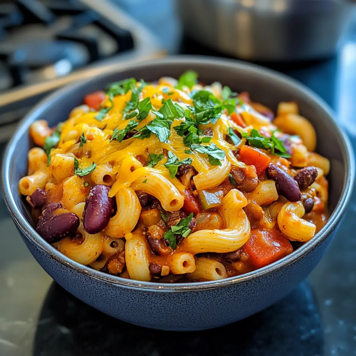 „Hast du schon einmal daran gedacht, dass die perfekte Mischung aus herzhaftem Chili und cremiger Mac and Cheese in einer Schüssel steckt? Mein vegetarisches Chili Mac ist genau das – ein schnelles, köstliches Gericht, das in nur 30 Minuten zubereitet ist und sich ideal für stressige Wochentage eignet. Diese köstliche One-Pot-Mahlzeit ist nicht nur eine großartige Möglichkeit, deine Familie glücklich zu machen, sondern bringt auch Abwechslung in deinen Speiseplan. Mit frischen Gemüsen, einer aromatischen Gewürzmischung und einer schönen Menge geschmolzenem Käse wird dieses Gericht zu einem echten Gewinner an jedem Tisch. Entdecke, wie einfach und schmackhaft die Zubereitung eines vegetarischen Abendessens sein kann. Bist du bereit, loszulegen?“ Warum wirst du dieses Rezept lieben? Einfache Zubereitung: In nur 30 Minuten zauberst du ein herzhaftes Gericht, das keine komplizierten Schritte braucht. Vielseitigkeit: Du kannst es nach Belieben anpassen – füge Fleisch hinzu oder bleibe vegetarisch! Familienfreundlich: Die cremige Textur und der köstliche Geschmack machen es zum Hit für Groß und Klein. Aromatische Gewürze: Die Kombination aus Chili und Käse sorgt für ein Geschmackserlebnis, das du lieben wirst. Ein Topf, wenig Aufwand: Mit einem einzigen Topf ist die Reinigung ebenso unkompliziert, perfekt für hektische Abende. Für viele Gelegenheiten: Ob als schnelles Abendessen oder für Gäste – dieses vegetarische Chili Mac passt immer! Für eine weitere einfache und schmackhafte Rezeptidee, probiere auch die Cremige Gnocchi Mit Spinat und Parmesan! Vegetarisches Chili Mac Zutaten Entdecke die Hauptzutaten, die dieses vegetarische Chili Mac zu einem wahren Genuss machen! Für das Gemüse • Olivenöl – Ideal zum Anbraten der Gemüse und sorgt für einen reichen Geschmack. • Zwiebeln, gehackt – Fügen Süße und Tiefe hinzu; können durch Schalotten oder Frühlingszwiebeln ersetzt werden. • Paprika – Gibt Farbe und Biss; jede Paprikafarbe kann für Abwechslung verwendet werden. • Karotten – Bringen natürliche Süße und Nährstoffe; können auch durch Zucchini oder Sellerie ersetzt werden. • Knoblauch – Verstärkt den Geschmack mit seinem aromatischen Duft; frischer Knoblauch ist bevorzugt. Für die Gewürze • Chilipulver – Sorgt für Wärme und Würze; nach Belieben anpassen, um die Schärfe zu variieren. • Kreuzkümmel, gemahlen – Fügt einen erdigen Geschmack hinzu; kann bei Bedarf durch Koriander ersetzt werden. • Salz – Verstärkt die Aromen aller Zutaten; nach diätetischen Bedürfnissen anpassen. Für die Basis • Stückige Tomaten – Bringt Säure und Feuchtigkeit; verwende geröstete Tomaten für einen rauchigeren Geschmack. • Stückige Tomaten mit grünen Chilis – Für einen ordentlichen Kick; kann durch normale Tomaten ersetzt werden, wenn du es milder magst. • Ellbogen-Makkaroni – Die Hauptkohlenhydratquelle; Vollkornnudeln sind eine gesündere Option. • Schwarze Bohnen – Fügen Protein und Ballaststoffe hinzu; können durch Pintobohnen oder Kichererbsen ersetzt werden. • Rote Kidneybohnen – Runden die Textur und den Proteingehalt ab; können für eine leichtere Version weggelassen werden. • Wasser – Notwendig für das Kochen der Pasta; kann zur Geschmacksverstärkung teilweise durch Gemüsebrühe ersetzt werden. Für die Krönung • Geriebener Käse – Sorgt für Cremigkeit; verwende eine Mischung aus Cheddar, Monterey Jack oder Mozzarella. Mit diesen Zutaten bereitest du schnell und einfach ein köstliches vegetarisches Chili Mac zu, das die ganze Familie lieben wird! Schritt-für-Schritt-Anleitung für Vegetarisches Chili Mac Schritt 1: Gemüse anbraten Erhitze in einer großen Pfanne oder einem Topf bei mittlerer Hitze 1 Esslöffel Olivenöl. Gib die gehackte Zwiebel, Paprika und Karotten hinzu und brate alles für etwa 6 Minuten an, bis das Gemüse weich und leicht angebraten ist. Achte darauf, dass alles regelmäßig umgerührt wird, sodass es gleichmäßig garen kann. Schritt 2: Gewürze hinzufügen Rühre den gehackten Knoblauch, Chilipulver, Kreuzkümmel und Salz unter das Gemüse. Lass die Mischung für weitere 30 Sekunden kochen, bis der Knoblauch aromatisch duftet. Diese Gewürzmischung wird das Vegetarische Chili Mac mit einer köstlichen Wärme und Tiefe bereichern. Schritt 3: Tomaten und Bohnen hinzufügen Füge die stückigen Tomaten, die stückigen Tomaten mit grünen Chilis, die Ellbogen-Makkaroni, die schwarzen Bohnen, die roten Kidneybohnen und 3 Tassen Wasser in die Pfanne. Rühre alles gut um, bis die Zutaten gleichmäßig verteilt sind und bringe die Mischung zum Kochen. Schritt 4: Kochen und köcheln lassen Erhöhe die Hitze auf mittelhoch, um eine kräftige simmernde Blasenbildung zu erreichen. Sobald es kocht, reduziere die Hitze, decke die Pfanne ab und lasse das Vegetarische Chili Mac 12 bis 15 Minuten köcheln, bis die Pasta zart und die Flüssigkeit größtenteils aufgenommen ist. Rühre gelegentlich um, um ein Anbrennen zu vermeiden. Schritt 5: Käse hinzufügen Nehme die Pfanne vom Herd und rühre den Großteil des geriebenen Käses unter das Chili Mac, bis er schön schmilzt. Behalte etwas Käse für die Garnitur zurück. Das geschmolzene Käse wird das Gericht cremig und reichhaltig machen. Schritt 6: Servieren und genießen Lasse das Vegetarische Chili Mac einige Minuten stehen, bevor du es servierst, damit sich die Aromen setzen. Garniere die Portionen mit dem restlichen Käse und serviere es mit frischem Brot oder einem Salat. Dieses herzhafte Gericht wird garantiert ein Hit bei der ganzen Familie sein! Was passt zu Vegetarischem Chili Mac? Ein köstliches vegetarisches Chili Mac ist nur der Anfang eines unvergesslichen Essens. Kombiniere es mit diesen köstlichen Begleitgerichten für ein rundum gelungenes Dinner. Frisches Brot: Serviere knuspriges Baguette oder Ciabatta, um die würzige Sauce aufzusaugen – ein Genuss! Cremiger Karottensalat: Dieser Salat 