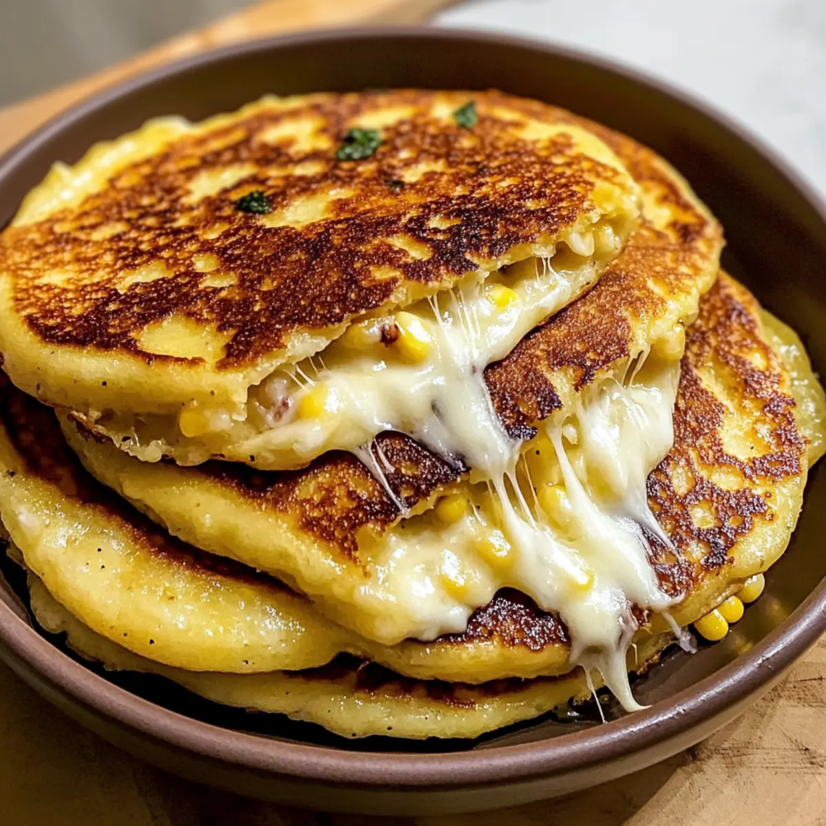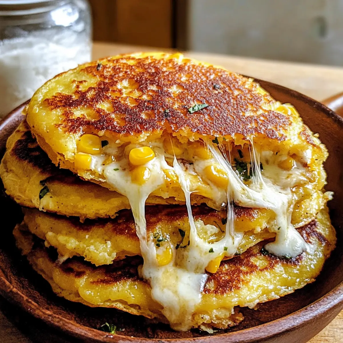 Die goldenen Strahlen der Sonne über Venezuela mögen längst verblasst sein, aber die köstlichen Aromen von Venezolanischen Süßmaisküchlein sind hier, um uns den Tag zu versüßen. Diese liebevoll zubereiteten Cachapas bringen den süßen Geschmack von frischem Mais und die cremige Schmelze von Mozzarella direkt auf euren Tisch. Perfekt für ein schnelles Frühstück oder als herzhaften Snack zwischendurch, sind diese kleinen Wunder nicht einfach nur glutenfrei und vegetarisch, sie sind auch der Inbegriff von Gemütlichkeit und Genuss. Lasst euch von dem Gedanken entführen, zu Hause ein Stück venezolanischer Esskultur zu entdecken. Welche köstliche Füllung würdet ihr für eure ersten Cachapas wählen? Warum sind Cachapas unverzichtbar? Vielfältigkeit, die Venezolanischen Süßmaisküchlein sind unglaublich anpassungsfähig! Du kannst mit verschiedenen Käsesorten experimentieren, seien es die klassische Mozzarella oder pflanzliche Optionen. Schnelle Zubereitung, sie sind im Nu fertig und perfekt für den hektischen Alltag. Köstlicher Geschmack, die perfekte Balance von süßem Mais und geschmolzenem Käse zaubert jedem ein Lächeln ins Gesicht. Gesund und nahrhaft, glutenfrei und vegetarisch passen sie in jede Diät. Authentisches Flair, dieses Rezept bringt euch die Kultur Venezuelas direkt nach Hause. Ergänze sie mit einer köstlichen Honigsoße oder Avocado für ein noch besseres Geschmackserlebnis! Zutaten für Venezolanische Süßmaisküchlein Entdecke die köstlichen Zutaten, die deine Cachapas zum Leben erwecken! Für den Teig Süßer Mais – sorgt für die zarte Süße und die perfekte Basis; verwende frischen oder aufgetauten gefrorenen Mais für das beste Aroma. Ei – bindet den Teig und verleiht ihm Reichhaltigkeit; essentiell für die Struktur. Weißmehl – sorgt für Stabilität und hilft, die Küchlein zusammenzuhalten. Salz – verstärkt die Aromen der Cachapas. Zucker – bringt eine angenehme Süße, die die herzhaften Käseschichten perfekt ergänzt; alternativ kann Honig verwendet werden, um einen blumigen Akzent zu setzen. Pflanzenöl – wird zum Braten der Cachapas verwendet und verleiht knusprige Ränder. Für die Füllung Buffalo-Mozzarella – klassischer Käse mit hervorragenden Schmelzeigenschaften; alternativ kannst du queso de mano oder queso fresco wählen. Ungesüßte Butter – verstärkt den Geschmack, wenn du sie vor dem Servieren auf die warmen Cachapas streichst. Bereite deine köstlichen Venezolanischen Süßmaisküchlein mit diesen sorgfältig ausgewählten Zutaten zu und lass den Geschmack dich verzaubern! Schritt-für-Schritt-Anleitung für Venezolanische Süßmaisküchlein mit schmelzendem Käse Step 1: Maisteig zubereiten Vermenge in einem Mixer oder einer Küchemaschine den süßen Mais, das Ei, das Weißmehl, Salz und Zucker. Mixe die Zutaten, bis der Teig größtenteils glatt ist, aber noch einige Stücke des Maises sichtbar bleiben, was für eine schöne Textur sorgt. Dies dauert etwa 1-2 Minuten. Der Teig sollte dickflüssig sein und leicht vom Mixer abfallen. Step 2: Pfanne erhitzen Heize eine große Pfanne oder eine Grillplatte bei mittlerer Hitze vor. Gib ausreichend Pflanzenöl hinzu, sodass der Boden leicht beschichtet ist. Lass das Öl einige Minuten heiß werden, bis es anfängt zu schimmern. Dies sorgt dafür, dass die Venezolanischen Süßmaisküchlein beim Braten eine goldbraune und knusprige Außenseite bekommen. Step 3: Küchlein braten Verwende eine Kelle, um etwa 60 ml des Teigs pro Cachapa in die heiße Pfanne zu gießen. Verteile den Teig sanft in eine runde Form. Brate die ersten Seiten für ca. 3-4 Minuten, bis die Ränder fest und goldbraun sind. Drehe die Cachapas um, wenn du siehst, dass die Unterseite eine goldene Farbe angenommen hat. Step 4: Käse hinzufügen Legen Sie einige Scheiben Buffalo-Mozzarella in die Mitte jeder gebratenen Cachapa. Klappe die Küchlein dann vorsichtig in der Mitte zusammen, sodass der Käse in der warmen Masse schmilzt. Lass die Cachapas für weitere 1-2 Minuten in der Pfanne, bis der Käse schön geschmolzen und die Außenseiten knusprig sind. Step 5: Servieren Nimm die frisch zubereiteten Venezolanischen Süßmaisküchlein aus der Pfanne und lege sie auf einen Teller. Bestreiche sie noch warm mit einem Stück ungesalzener Butter, damit sie zusätzlichen Geschmack erhalten und zart bleiben. Serviere die Cachapas sofort, entweder pur oder mit einer leckeren Dippsoße dazu. Variationen der Venezolanischen Süßmaisküchlein Entdecke die unendlichen Möglichkeiten, deine Cachapas zu personalisieren und noch leckerer zu gestalten! Dairy-Free: Verwende pflanzlichen Käse oder Schmelzkäse für eine vegane Version deiner Cachapas. Süßere Note: Ersetze den Zucker durch Honig oder Agavendicksaft, um eine natürliche Süße zu genießen. Käsevariation: Tausche die Buffalo-Mozzarella gegen Queso Fresco oder Cheddar für ganz andere Geschmacksnuancen. Experimentiere mit Käse, der gut schmilzt, um das Geschmackserlebnis zu erweitern! Würzige Variante: Füge eine Prise Cayennepfeffer oder Chili-Flocken zum Teig hinzu für einen kleinen Kick. Herzhafter Genuss: Ergänze die Füllung mit feinen Scheiben von salzigem Schinken oder knusprigem Speck für eine herzhafte Note. Dies bringt zusätzlichen Crunch und Geschmack! Gemüse-Inspiration: Mische klein gehacktes Gemüse wie Paprika oder Zwiebeln in den Teig für mehr Farbe und Textur. Kräuteraroma: Ergänze den Teig mit frischen Kräutern wie Koriander oder Schnittlauch für eine frische Note. Fruchtige Abwechslung: Serviere deine Cachapas mit einer Beilage aus fruchtiger Salsa oder einer süßen BBQ-Sauce für einen besonderen Twist. Hast du noch mehr Ideen? Lass deiner Kreativität freien Lauf und finde deine persönliche Lieblingskombination! Meal Prep für Venezolanische Süßmaisküchlein Die Venezolanischen Süßmaisküchlein sind ideal für die Vorbereitung im Voraus! Du kannst den Teig bis zu 24 Stunden im Kühlschrank aufb