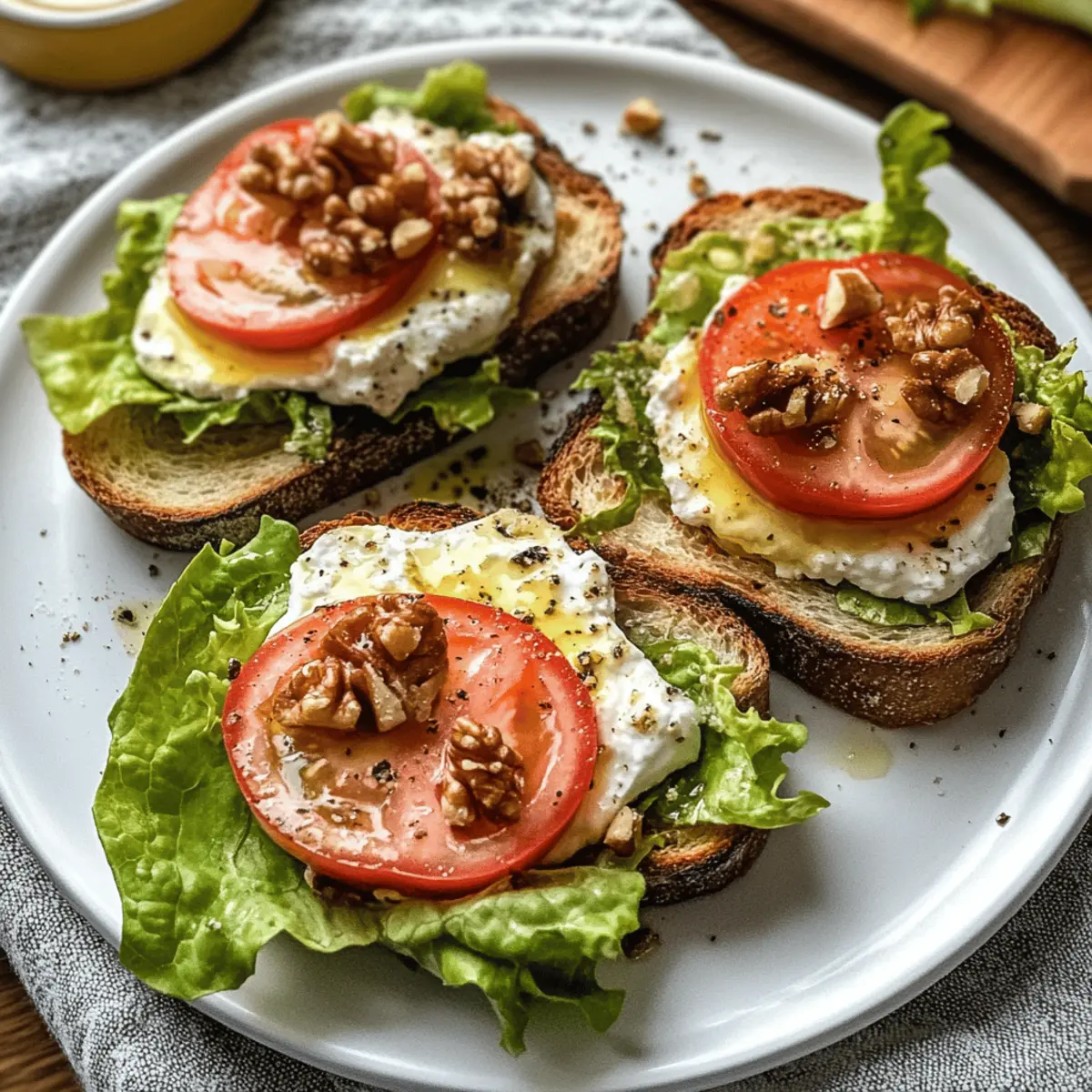 Hast du schon einmal die unverwechselbaren Aromen einer französischen Bistrotküche erlebt? Mein warmer Ziegenkäsesalat (Salade de Chèvre Chaud) bringt nicht nur einen Hauch von Frankreich auf deinen Tisch, sondern bietet auch die perfekte Balance zwischen dekadentem Käse und frischen Zutaten. Diese köstliche Speise verbindet knusprige Toasts mit schmelzendem Ziegenkäse und einer bunten Mischung aus knackigem Salat, saftigen Tomaten und herzhaften Walnüssen. Sie ist eine wunderbare Wahl für ein schnelles Mittagessen oder ein elegantes Abendessen, das selbst den anspruchsvollsten Gaumen erfreut. Und das Beste? Sie lässt sich ganz einfach zubereiten – perfekt für alle, die sich von Fast Food verabschieden möchten. Bist du bereit, dich in die französische Küche zu verlieben? Lass uns gemeinsam loslegen! Was macht diesen Ziegenkäsesalat besonders? Einfachheit: Die Zubereitung ist mühelos und erfordert nur grundlegende Kochkenntnisse, ideal für sowohl Anfänger als auch erfahrene Köche. Aromenvielfalt: Die Kombination aus warmem Ziegenkäse und frischen Zutaten sorgt für ein Geschmackserlebnis, das dich direkt nach Frankreich versetzt. Vielseitigkeit: Dieser Salat kann leicht angepasst werden, indem beispielsweise Bacon durch eine vegetarische Alternative ersetzt wird oder verschiedene Nüsse hinzugefügt werden. Zeitersparnis: Die Komponenten können im Voraus vorbereitet werden, was dir Zeit und Stress beim Servieren spart. Crowd-Pleaser: Ob für ein Dinner mit Freunden oder ein schnelles Mittagessen – dieser Salat kommt immer gut an und lässt sich perfekt mit Gerichten wie Französischen Deviled Eggs oder einer Blumenkohlsuppe kombinieren. Warmer Ziegenkäsesalat Zutaten • Diese Zutaten bilden die Grundlage für einen köstlichen und authentischen warmer Ziegenkäsesalat, der deinen Gaumen verwöhnt! Für die Toasts Ziegenkäse – sorgt für die cremige und reichhaltige Basis; wähle am besten AOP-zertifizierte Sorten für besten Geschmack. Bauernbrot oder Baguette – bildet die köstlichen Crunch-Basis für deine warmen Käse-Toast. Extra Virgin Olivenöl – verleiht den Toasts Geschmack und Reichtum. Schwarzer Pfeffer – hebt die Aromen hervor und fügt Tiefe hinzu. Für den Salat Lardons oder Speckstreifen – bringen eine herzhafte, salzige Note, die perfekt mit dem Käse harmoniert. Walnüsse – fügen einen köstlichen Crunch und erdigen Geschmack hinzu. Tomaten – sorgen für Frische und Säure, um die Reichhaltigkeit des Käses auszugleichen. Salat (Batavia, Römersalat oder Frisée) – bildet die Basis des Salats und sorgt für eine knackige Textur. Frische Petersilie – für eine aromatische Garnierung und zusätzliche Frische. Französisches Vinaigrette – vereint den Salat und fügt eine würzige Note hinzu. Mit dem warmer Ziegenkäsesalat wird jede Mahlzeit zu einem besonderen Erlebnis! Schritt-für-Schritt-Anleitung für Warmer Ziegenkäsesalat Step 1: Brot Toasten Heize den Ofen auf 180 Grad Celsius vor. Schneide das Bauernbrot oder Baguette in 1–2 cm dicke Scheiben und lege sie auf ein Backblech. Röste die Brotscheiben im Ofen für etwa 5–7 Minuten, bis sie goldbraun und leicht knusprig sind. Diese knusprige Basis wird das warme Ziegenkäse-Highlight deines Salats perfekt unterstützen. Step 2: Ziegenkäse Vorbereiten Schneide den Ziegenkäse in Scheiben von etwa 20 g. Platziere die Käsescheiben gleichmäßig auf den vorgetoasteten Brotscheiben. Das geschmolzene Innere des Käses wird sich wunderbar mit dem Crunch des Brotes verbinden und sorgt für das aromatische Herzstück des warmen Ziegenkäsesalat. Step 3: Mit Öl und Pfeffer Würzen Verteile einen kleinen Schuss Extra Virgin Olivenöl über die Käsescheiben, um ihnen zusätzlichen Geschmack und eine schöne Bräunung zu verleihen. Streue etwas frisch gemahlenen schwarzen Pfeffer über den Käse, um die Aromen zu intensivieren. Dies wird die Geschmacksrichtung des warmen Ziegenkäsesalats wunderbar abrunden. Step 4: Backen Schiebe das Backblech mit den Broten und dem Ziegenkäse in den vorgeheizten Ofen. Backe die Mischung für etwa 8–10 Minuten, bis der Käse schön warm und leicht geschmolzen ist, aber nicht komplett auseinanderfällt. Achte darauf, dass die Ränder des Brotes schön goldbraun werden; dies zeigt dir, dass sie perfekt sind. Step 5: Speck Braten Erhitze eine Pfanne auf mittlerer Hitze und gib die Lardons oder Speckstreifen hinein. Brate sie etwa 5–7 Minuten lang, bis sie knusprig und goldbraun sind. Diese salzige Komponente bringt eine köstliche Tiefe in den Salat und wird als herzhaftes Topping dienen, das die Geschmäcker harmonisch vereint. Step 6: Salat Vorbereiten Während der Käse backt und der Speck brät, wasche und trockne die Salatzutaten gründlich. Schneide die Tomaten in Scheiben und richte den gewaschenen Salat auf hübschen Tellern an. Die Frische der Rohzutaten wird den Geschmack des warmen Ziegenkäses wunderbar ergänzen. Step 7: Salat Anrichten Sobald der Käse fertig ist, nimm das Blech aus dem Ofen und lasse es kurz abkühlen. Setze die warmen Käsetoasts auf die vorbereiteten Salatgerichte. Füge die knusprigen Speckstücke und die gewaschenen Walnüsse hinzu, um zusätzliche Textur und Geschmack zu bieten. So wird der Warmer Ziegenkäsesalat zu einem wahren Fest. Step 8: Mit Vinaigrette Beträufeln Gib einige Tropfen der französischen Vinaigrette über den fertig dekorierten Salat, um das Gericht abzurunden. Stelle sicher, dass du dies kurz vor dem Servieren machst, damit der Salat frisch und knackig bleibt. Serviere den warmen Ziegenkäse-Salat sofort, um das volle Geschmackserlebnis zu genießen. Lagerungstipps für Warmer Ziegenkäsesalat Raumtemperatur: Du solltest den Salat idealerweise sofort nach der Zubereitung servieren, um die frischen Aromen und Texturen zu genießen. Kühlschrank: Wenn Reste bleiben, lagere Sie den Salat in einem luftdichten Behälter im Kühlschrank für bis zu 2 Tage. Achte darauf, die Vinaigrette sep