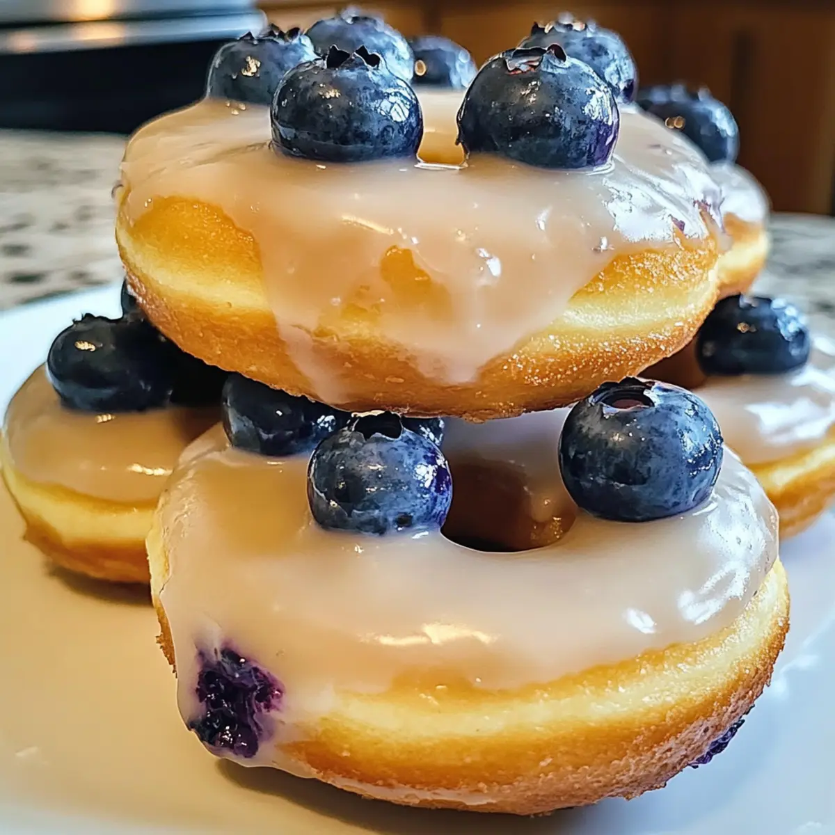 Für die Glasur mische den Puderzucker mit der Milch, bis eine glatte, etwas dickflüssige Konsistenz entsteht. Träufle die Glasur über die abgekühlten weichen gebackenen Heidelbeeren Donuts und lasse sie einige Minuten ruhen, damit die Glasur anziehen kann, bevor du sie servierst.