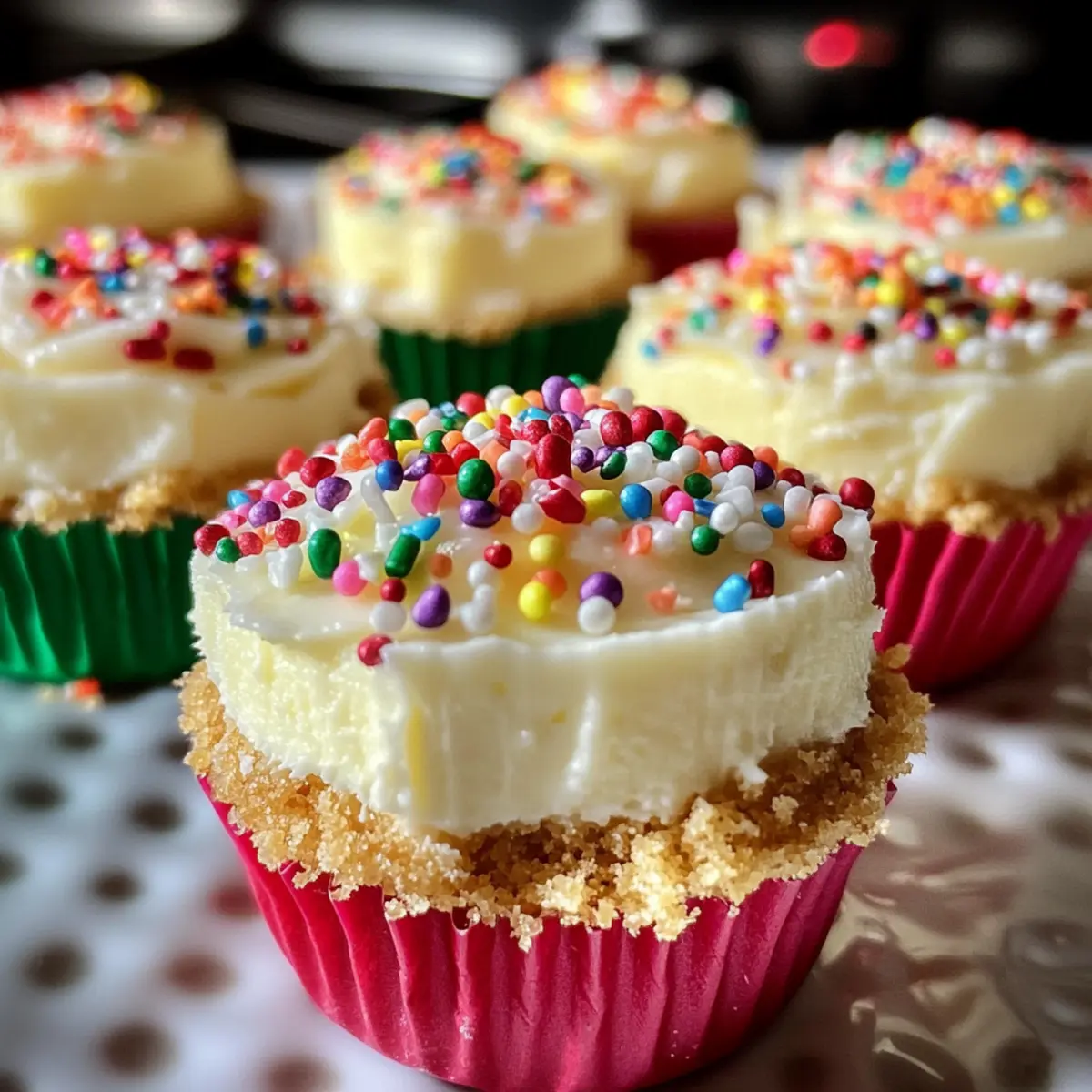 10. Dekorieren Sie die Käsekuchen mit bunten Streuseln vor dem Servieren.
