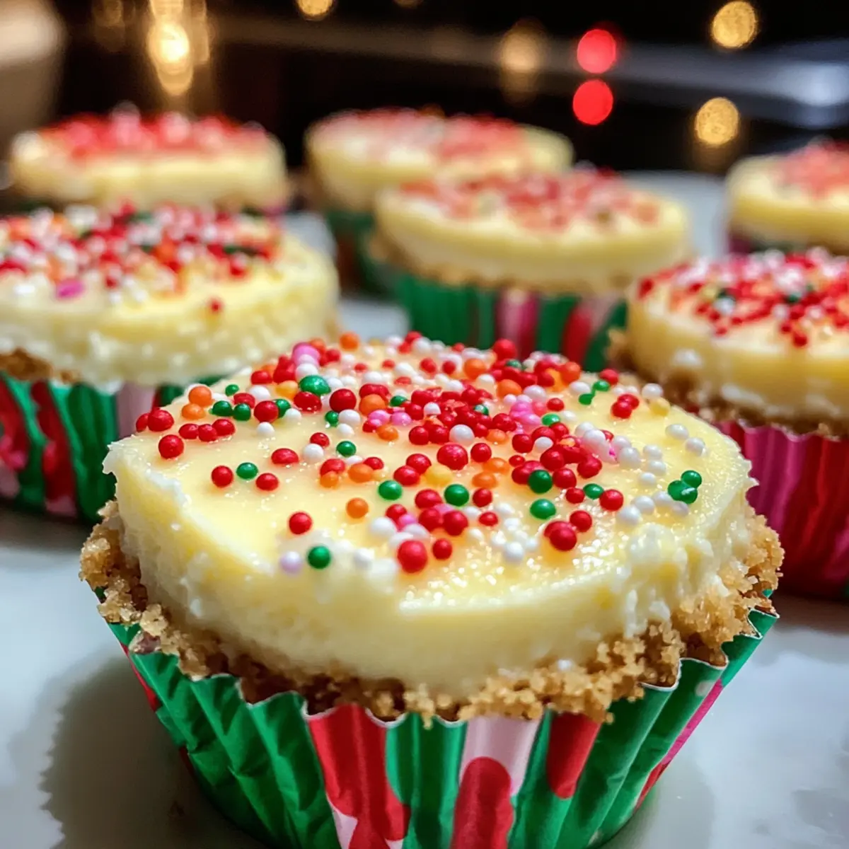 Bereiten Sie sich auf ein köstliches Fest vor, denn Mini Weihnachtskäsekuchen sind die süßen Überraschungen, die jede Festtafel verzaubern! Diese zarten Häppchen sind nicht nur ein visuelles Highlight mit ihren bunten Streuseln, sondern auch eine wahre Freude für den Gaumen. Der cremige Kern aus Frischkäse, umgeben von einem buttrigen Keksboden, lässt sich im Handumdrehen zubereiten und ist perfekt für alle, die traditionelle Desserts lieben, aber nach einer unkomplizierten Variante suchen. Diese weihnachtlichen Leckerbissen sind vegetarisch, machen jede Feier unvergesslich und bieten den ultimativen Komfort in einer kleinen Portion. Lassen Sie uns gemeinsam diesen festlichen Genuss entdecken – bereit für Ihre persönliche Note?