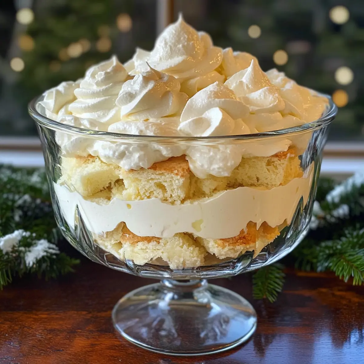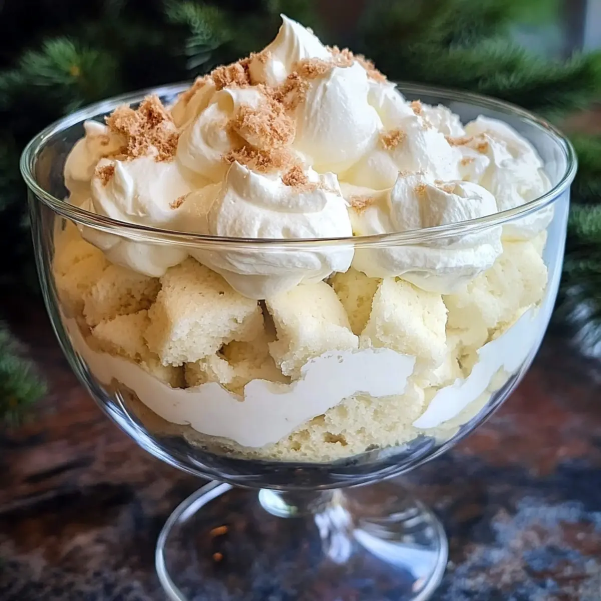 Während sich die ersten Schneeflocken sanft auf den Boden legen, steigt in mir die Vorfreude auf meine Lieblingszeit des Jahres: die Feiertage! Und was könnte besser sein, um den festlichen Geist zu feiern, als ein bezaubernder Weißer Winter-Trifle? Diese elegante Kreatur aus zartem Engelshaarkuchen und himmlischer weißer Schokolade verwandelt jede Zusammenkunft in ein wahres Geschmackserlebnis. Mit der einfachen Zubereitung ist dieses köstliche, no-bake Dessert nicht nur perfekt für Stressgeplagte, sondern auch ein echter Hingucker auf jedem Tisch. Warum sich also mit gewöhnlichen Desserts zufriedengeben, wenn man einen solchen Genuss zaubern kann? Neugierig, wie man diesen himmlischen Trifle selbst kreiert? Lass uns gemeinsam in die zarten Schichten eintauchen! Warum lieben alle diesen Winter-Trifle? Eleganz auf dem Teller: Der Weißer Winter-Trifle ist nicht nur ein Fest für die Augen, sondern vereint auch köstliche Aromen und Texturen. Einfache Zubereitung: Mit wenigen Schritten gelingt dieses elegante Dessert mühelos, ideal für alle, die sich nicht mit aufwendigen Rezepten befassen möchten. Festliche Atmosphäre: Die Kombination aus zartem Engelshaarkuchen und weißer Schokolade bringt im Handumdrehen festliche Stimmung auf jeden Tisch. Vielseitigkeit: Der Trifle kann leicht personalisiert werden – fügen Sie frische Beeren hinzu oder tauschen Sie die Schokolade für einen interessanten Twist aus. Keine Backzeit nötig: Dieses no-bake Dessert spart Zeit und bringt trotzdem großen Geschmack – perfekt für vielbeschäftigte Feiertage! Probieren Sie diese köstliche Variante und genießen Sie den besonderen Moment mit Ihren Liebsten. Weißer Winter-Trifle Zutaten • Um deinen eigenen, köstlichen Weißer Winter-Trifle zuzubereiten, benötigst du diese einfachen Zutaten! Für den Trifle Engelshaarkuchen – sorgt für die luftige Basis des Trifles; kann durch gekauften oder selbstgemachten Kuchen ersetzt werden. Weiße Schokoladenstückchen – verleihen dem Dessert eine luxuriöse Süße; wähle hochwertige Schokolade für das beste Ergebnis. Schlagsahne – sorgt für eine fluffige, himmlische Creme, die die Kuchenschichten umhüllt; 35%ige Schlagsahne kann durch 38%ige Schlagsahne ausgetauscht werden, wenn nötig. Für die Garnierung Frische Beeren – bringen eine fruchtige Frische hinzu; schön für die festliche Präsentation. Festliche Streusel – eine tolle Möglichkeit, um dem Servieren einen lustigen, saisonalen Touch zu verleihen; perfekt für den letzten Schliff. Mit diesen Zutaten kannst du deinen eigenen spektakulären Weißer Winter-Trifle kreieren! Schritt-für-Schritt-Anleitung für den Weißer Winter-Trifle Schritt 1: Weiße Schokolade schmelzen In einer mikrowellengeeigneten Schüssel kombinierst du 240 ml (1 Tasse) Schlagsahne mit 150 g weißen Schokoladenstückchen. Erhitze die Mischung in 30-Sekunden-Intervallen in der Mikrowelle und rühre zwischendurch um, bis die Schokolade vollständig geschmolzen und die Mischung glatt ist. Lasse die geschmolzene Schokolade anschließend auf Raumtemperatur abkühlen. Schritt 2: Sahne schlagen Sobald die weiße Schokolade abgekühlt ist, stelle die Schüssel für 30 Minuten in den Kühlschrank. Danach gießt du die restlichen 240 ml Schlagsahne in die Mischung und schlägst alles mit einem Handmixer oder einer Küchenmaschine auf hoher Stufe, bis die Sahne leicht und luftig ist. Achte darauf, dass die Mischung einen stabilen, cremigen Zustand erreicht. Schritt 3: Trifle schichten Nehme eine große Trifle-Schüssel oder dekorative Gläser zur Hand und beginne, die einzelnen Schichten des Weißer Winter-Trifle zu erstellen. Lege die Hälfte des gewürfelten Engelshaarkuchens gleichmäßig auf den Boden der Schüssel. Darauf kommt dann die Hälfte der weißen Schokolade-Sahne-Creme. Verteile beides sorgfältig, um eine schöne Präsentation zu gewährleisten. Schritt 4: Weitere Schichten hinzufügen Wiederhole den Schichtvorgang mit der verbleibenden Kuchenschicht und der restlichen weißen Schokolade-Sahne-Creme. Achte darauf, die Schichten gleichmäßig und ästhetisch anzuordnen, damit der Weißer Winter-Trifle schön aussieht. Diese harmonischen Schichten werden später jede Portion zum Erlebnis machen. Schritt 5: Kühlen Decke die Trifle-Schüssel oder die Gläser mit Frischhaltefolie ab und stelle sie für mindestens 2 Stunden in den Kühlschrank. Dies ermöglicht den Geschmäckern, sich zu vermischen, und sorgt dafür, dass der Trifle stabil bleibt. Wenn du ihn servierst, wird er als köstlicher, festlicher Höhepunkt auf deinem Tisch wirken. Lagerungstipps für den Weißer Winter-Trifle Kühlschrank: Lagere den Trifle abgedeckt im Kühlschrank für bis zu 3 Tage. Achte darauf, die Garnierungen bis zum Servieren separat zu halten, um die Frische zu bewahren. Frostschutz: Ein Einfrieren des Trifles wird nicht empfohlen, da die Textur der Sahne verfälscht werden könnte. Genieße das Dessert frisch für das beste Geschmackserlebnis. Wiederv Erwärmen: Falls du übrig gebliebene Schichten hast, bereite dich darauf vor, nur die Kuchenteile zu verwenden. Die cremigen Schichten sollten nicht wieder erhitzt werden. Vorbereitung: Du kannst den Weißer Winter-Trifle bis zu einem Tag im Voraus zubereiten, um die Festtagsvorbereitungen zu erleichtern, aber achte darauf, die Creme erst kurz vor dem Servieren zu schichten. Variationen & Alternativen für Weißer Winter-Trifle Lass deiner Kreativität freien Lauf und passe diesen köstlichen Trifle nach deinen Vorlieben an! Dunkle Schokolade: Ersetze die weiße Schokolade durch dunkle Schokolade für einen intensiveren Geschmack. Die kräftige Note der dunklen Schokolade harmoniert wunderbar mit dem luftigen Kuchen und der Sahne. Beeren-Boost: Füge frische Himbeeren oder Erdbeeren zwischen den Schichten hinzu. Die fruchtige Frische bringt Farbe und zusätzlichen Geschmack in jede Portion. Karamell-Twist: Integriere eine Schicht Karamellsoße für eine süße Überras