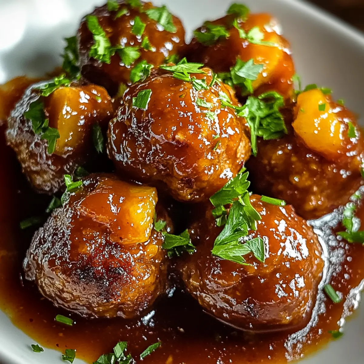 Bevor ich in die Welt der Whiskey Pfirsich BBQ Fleischbällchen eintauche, stellte ich neulich fest, dass manche Gerichte wie ein geschmacklicher Zaubertrick funktionieren. Diese fleischlichen Köstlichkeiten vereinen die Süße der Pfirsiche mit dem herzhaften Aroma von Fleisch und einer überraschenden Whiskey-Note. In diesem Rezept harmonieren saftiges Rinder- und Schweinehack perfekt mit aromatischen Gewürzen und frischen Zutaten, sodass sie die idealen Appetitanreger für deine nächste Feier sind. Der Clou? Sie sind nicht nur kinderleicht zuzubereiten, sondern auch ein echter Publikumsmagnet, der jeden Grillabend oder jede Familienfeier aufpeppen wird. Bist du bereit, deine Gäste mit diesem überraschenden Favoriten zu beeindrucken? Warum wirst du dieses Rezept lieben? Einzigartiger Geschmack: Die Kombination aus süßen Pfirsichen und herzhaftem Fleisch zaubert ein Geschmackserlebnis, das niemand widerstehen kann. Einfache Zubereitung: Du benötigst nur grundlegende Kochfähigkeiten, um diese köstlichen Fleischbällchen zuzubereiten. Perfekte Party-Appetizer: Diese Whiskey Pfirsich BBQ Fleischbällchen sind der Hit auf jeder Feier und ein echter Publikumsmagnet, der garantiert für Gespräche sorgt. Vielseitige Variationen: Du kannst verschiedene Fruchtmarmeladen ausprobieren oder sogar die Fleischsorten variieren, um immer wieder neue Geschmäcker zu entdecken. Schneller Genuss: Die Vielseitigkeit und Schnelligkeit machen sie zum idealen Snack für spontane Zusammenkünfte oder als Hauptgericht. Ein einfache Nudelgerichte oder ein frischer Slaw passen perfekt dazu und runden das Geschmackserlebnis ab! Whiskey Pfirsich BBQ Fleischbällchen Zutaten Für die Fleischbällchen • Rinderhack – sorgt für einen herzhaften Geschmack und eine zarte Textur. • Schweinehack – fügt herzhafte Tiefe hinzu und sorgt für saftige Bissen. • Paniermehl – hilft, die Fleischbällchen zusammenzuhalten und ihre Zartheit zu bewahren. • Zwiebel – sorgt für aromatische Süße und verstärkt das Geschmacksprofil. • Milch – befeuchtet das Paniermehl für eine weiche Innenseite. • Knoblauch – verleiht jedem Fleischbällchen würzige Wärme und komplexen Geschmack. • Eier – binden die Zutaten und halten die Struktur der Fleischbällchen beim Backen. • Salz und Pfeffer – heben die Aromen hervor und balancieren die Süße der Sauce. Für die Whiskey Pfirsich BBQ Sauce • Pfirsichmarmelade – sorgt für fruchtige Süße und bildet die Basis der Sauce. • BBQ-Sauce – bietet rauchige Untertöne und trägt zur samtigen Konsistenz bei. • Whiskey – verleiht der Sauce eine warme, alkoholische Note mit Karamellgeschmack. • Worcestershire-Sauce – bringt umami Tiefe, die den Gesamtschmack intensiviert. • Apfelessig – bringt Helligkeit und Ausgewogenheit zur Süße. • Dijon-Senf – fügt der Sauce eine scharfe, pikante Note hinzu. • Brauner Zucker – erhöht die Süße und hilft, die Sauce zu verdicken. Schritt-für-Schritt-Anleitung für Whiskey Pfirsich BBQ Fleischbällchen Schritt 1: Ofen vorheizen Heize deinen Ofen auf 190 °C (375 °F) vor. Während der Ofen aufheizt, kannst du bereits alles vorbereiten, um die Zubereitung der Whiskey Pfirsich BBQ Fleischbällchen zu beschleunigen. Lege ein Backblech mit Backpapier aus, um sicherzustellen, dass die Fleischbällchen nicht ankleben. Schritt 2: Fleischmischung zubereiten In einer großen Rührschüssel vermischst du das Rinderhack, das Schweinehack, das Paniermehl, die fein gewürfelte Zwiebel, die Milch, den gehackten Knoblauch, die Eier sowie Salz und Pfeffer. Knete die Zutaten mit deinen Händen oder einem Holzlöffel gut durch, bis eine homogene Mischung entsteht. Der Duft deiner Fleischmischung wird schon jetzt deine Vorfreude steigern! Schritt 3: Fleischbällchen formen Nimm eine Portion der Mischung und forme mit deinen Händen gleichmäßige Bällchen, etwa so groß wie ein Golfball (ca. 2,5 cm Durchmesser). Platziere die geformten Whiskey Pfirsich BBQ Fleischbällchen auf dem vorbereiteten Backblech. Achte darauf, dass genügend Platz zwischen den Bällchen bleibt, damit sie gleichmäßig garen können. Schritt 4: Fleischbällchen backen Schiebe das Backblech in den vorgeheizten Ofen und backe die Fleischbällchen für 18 bis 20 Minuten. Sie sind fertig, wenn sie goldbraun sind und eine Innentemperatur von mindestens 74 °C (165 °F) erreichen. Die Außenseite sollte schön knusprig sein, was dir anzeigt, dass sie gut durchgegart sind. Schritt 5: Sauce vorbereiten Während die Fleischbällchen im Ofen backen, kannst du die Whiskey Pfirsich BBQ Sauce zubereiten. In einem kleinen Topf vermischst du die Pfirsichmarmelade, die BBQ-Sauce, den Whiskey, die Worcestershire-Sauce, den Apfelessig, den Dijon-Senf und den braunen Zucker. Erwärme diese Mischung bei mittlerer Hitze unter ständigem Rühren, bis sie leicht zu köcheln beginnt. Schritt 6: Sauce reduzieren Reduziere die Hitze und lasse die Sauce 5 Minuten sanft köcheln, damit sich die Aromen gut verbinden und die Sauce etwas eindickt. Du erhältst eine geschmackvolle, glänzende Sauce, die perfekt zu deinen Whiskey Pfirsich BBQ Fleischbällchen passt. Schritt 7: Fleischbällchen in der Sauce schwenken Sobald die Fleischbällchen fertig gebacken sind, nimm sie vorsichtig aus dem Ofen und gib sie direkt in die heiße Sauce im Topf. Rühre die Bällchen sanft mit einem Holzlöffel um, bis sie gleichmäßig mit der BBQ-Sauce überzogen sind. Lass sie für weitere 5 Minuten bei niedriger Hitze ziehen, damit sie den köstlichen Geschmack aufnehmen. Schritt 8: Servieren Serviere die Whiskey Pfirsich BBQ Fleischbällchen warm, vielleicht garniert mit frisch gehackter Petersilie für einen Farbtupfer. Diese köstlichen Fleischbällchen sind nicht nur ein Hit auf jeder Party, sondern auch ein wahrer Genuss für jeden Anlass. Expert Tips für Whiskey Pfirsich BBQ Fleischbällchen • Fleischwahl beachten: Wähle hochwertiges Rinder- und Schweinehack, um den best
