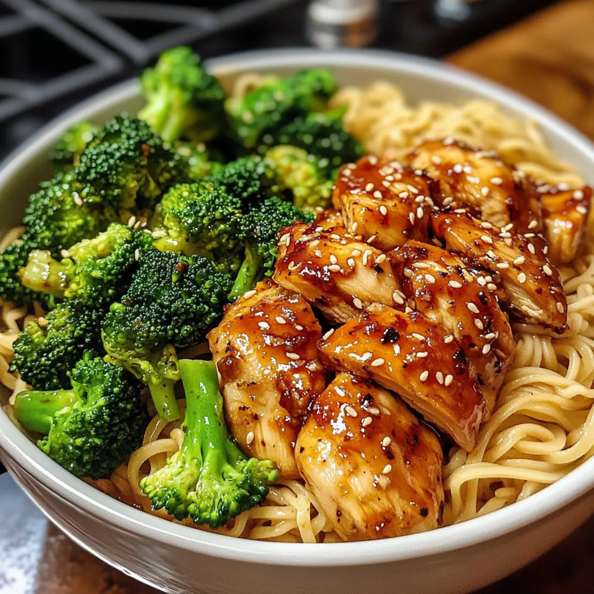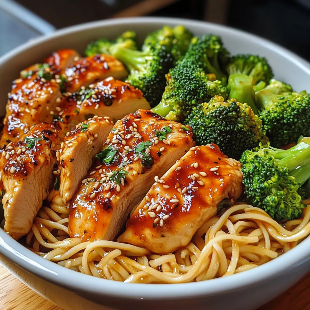 Als ich neulich in meiner Küche stand und den verlockenden Duft von frisch angebratenem Knoblauch einatmete, wusste ich sofort, dass ich etwas Besonderes zubereiten wollte. Heute teile ich mit euch mein Rezept für die würzigen Knoblauch-Hähnchen- und Brokkoli-Nudel-Schalen. Dieses Gericht ist nicht nur in 35 Minuten fertig, sondern es vereint auch gesunde Zutaten wie zartes Hähnchen und knackigen Brokkoli mit köstlichen weichen Nudeln in einer scharfen Knoblauchsoße. Egal, ob ihr einen stressigen Wochentag hinter euch habt oder einfach nur euren Liebsten etwas Leckeres servieren möchtet, diese Schalen sind die perfekte Lösung. Seid ihr bereit, eure Geschmacksknospen mit einem aufregenden Abendessen zu verwöhnen? Warum werden Sie dieses Rezept lieben? Einfachheit pur: Die Zubereitung der würzigen Knoblauch-Hähnchen- und Brokkoli-Nudel-Schalen ist unkompliziert und benötigt nur grundlegende Kochfähigkeiten. Würziger Genuss: Die Kombination aus frischem Knoblauch, Hähnchen und knackigem Brokkoli sorgt für einen intensiven, aromatischen Geschmack, der Genießer begeistert. Gesund und nährstoffreich: Diese Schalen sind nicht nur lecker, sondern bieten auch gesunde Zutaten mit einem hohen Proteingehalt und vielen Vitaminen. Schnell zubereitet: In nur 35 Minuten stehen Sie mit einer leckeren Mahlzeit am Tisch – ideal für hektische Wochentage oder spontane Dinnerpartys. Vielfältige Anpassungsmöglichkeiten: Ob mit Tofu für eine vegetarische Variante oder zusätzlichen Gemüse für noch mehr Nährstoffe, dieses Rezept lässt sich leicht nach Ihrem Geschmack anpassen. Perfekt für die ganze Familie: Die gesamte Familie wird dieses Gericht lieben, und es ist eine großartige Möglichkeit, die Essgewohnheiten Ihrer Lieben zu verändern. Probieren Sie auch eine glutenfreie Option aus, um den Bedürfnissen aller gerecht zu werden! Würzige Knoblauch-Hähnchen- und Brokkoli-Nudel-Schalen Zutaten • Diese Zutatenliste hilft Ihnen, alle notwendigen Komponenten für unser würziges Gericht zusammenzustellen. Für das Hähnchen und Gemüse Hähnchenbrust – Liefert Protein und eine zarte Textur; kann durch Tofu für eine vegetarische Variante ersetzt werden. Brokkoli-Röschen – Fügt einen knackigen Biss und viele Nährstoffe hinzu; können durch Zuckerschoten oder grüne Bohnen ersetzt werden. Für die Nudeln Nudeln – Die Basis dieses Gerichts; verwenden Sie Reisnudeln, Soba oder Vollkornnudeln nach Wahl. Achten Sie darauf, sie leicht zu wenig zu garen. Für die Soße Olivenöl – Zum Anbraten; kann durch Sesamöl für zusätzlichen Geschmack ersetzt werden. Knoblauch – Sorgt für ein köstliches Aroma; frischer Knoblauch ist am besten, aber auch Knoblauchpulver ist möglich. Sojasoße – Verleiht Umami und notwendige Feuchtigkeit; wählen Sie eine glutenfreie Variante, wenn nötig. Chilipaste – Fügt Schärfe hinzu; passen Sie die Menge nach Ihrem persönlichen Schärfewunsch an—lassen Sie sie weg für eine mildere Version. Salz & Pfeffer – Zum Würzen nach Geschmack. Schritt-für-Schritt-Anleitung für Würzige Knoblauch-Hähnchen- und Brokkoli-Nudel-Schalen Schritt 1: Nudeln kochen Bringen Sie einen großen Topf mit Wasser zum Kochen. Fügen Sie die Nudeln hinzu und kochen Sie sie gemäß den Anweisungen auf der Verpackung für etwa 8–10 Minuten. Achten Sie darauf, sie leicht al dente zu garen, damit sie ihre Bissfestigkeit behalten. Nach dem Kochen abgießen und beiseite stellen. Schritt 2: Öl erhitzen Erhitzen Sie in einer großen Pfanne bei mittlerer Wärme 2 Esslöffel Olivenöl, bis es schimmert. Dies dauert etwa 1–2 Minuten. Stellen Sie sicher, dass das Öl heiß genug ist, um die Aromen der Zutaten freizusetzen, und bereiten Sie sich darauf vor, das Hähnchen hinzuzufügen. Schritt 3: Knoblauch anbraten Fügen Sie 3 bis 4 gehackte Knoblauchzehen in die Pfanne hinzu. Sautieren Sie den Knoblauch für etwa 30 Sekunden, bis er aromatisch ist, aber achten Sie darauf, dass er nicht verbrennt, da dies bitter werden kann. Der Duft von frisch angebratenem Knoblauch wird sich schnell verbreiten. Schritt 4: Hähnchen hinzufügen Legen Sie die in Streifen geschnittene Hähnchenbrust in die Pfanne und braten Sie sie für etwa 5–7 Minuten an, bis sie goldbraun und durchgegart ist. Rühren Sie das Hähnchen gelegentlich um, damit es gleichmäßig gart und eine schöne Farbe annimmt. Schritt 5: Brokkoli hinzufügen Streuen Sie die Brokkoli-Röschen über das Hähnchen in der Pfanne und kochen Sie beides zusammen für weitere 3–4 Minuten. Der Brokkoli sollte zart, aber noch knackig sein. Achten Sie darauf, regelmäßig umzurühren, damit alle Zutaten gut durchmischt werden. Schritt 6: Soße hinzufügen Gießen Sie 3 Esslöffel Sojasauce und 1–2 Esslöffel Chilipaste in die Pfanne. Mischen Sie alles gut, sodass das Hähnchen und der Brokkoli gleichmäßig mit der würzigen Soße überzogen sind. Lassen Sie die Mischung 1–2 Minuten köcheln, damit sich die Aromen entfalten können. Schritt 7: Nudeln einmischen Fügen Sie die vorgekochten Nudeln in die Pfanne hinzu und wenden Sie alles vorsichtig. Tossieren Sie die Nudeln, bis sie gut mit der Soße und den anderen Zutaten vermischt sind. Achten Sie darauf, dass die Nudeln gleichmäßig in das Gericht eingearbeitet werden. Schritt 8: Abschmecken und servieren Schmecken Sie das Gericht ab und würzen Sie es mit Salz und Pfeffer nach Geschmack. Servieren Sie die würzigen Knoblauch-Hähnchen- und Brokkoli-Nudel-Schalen heiß in Schalen und garnieren Sie sie nach Belieben mit Sesamsamen oder frischen Zwiebelscheiben. Was passt zu Würzigen Knoblauch-Hähnchen- und Brokkoli-Nudel-Schalen? Entdecken Sie eine wunderbare Ergänzung zu Ihrem Abendessen, die jeden Bissen Ihrer Schalen bereichert und Ihre Geschmacksknospen zum Tanzen bringt. Cremige Erdnusssoße: Ergänzen Sie die Schalen mit einer köstlichen, cremigen Erdnusssoße, die das würzige Aroma perfekt ausbalanciert. Gedämpfter Jasminreis: Dieser weiche, duftend