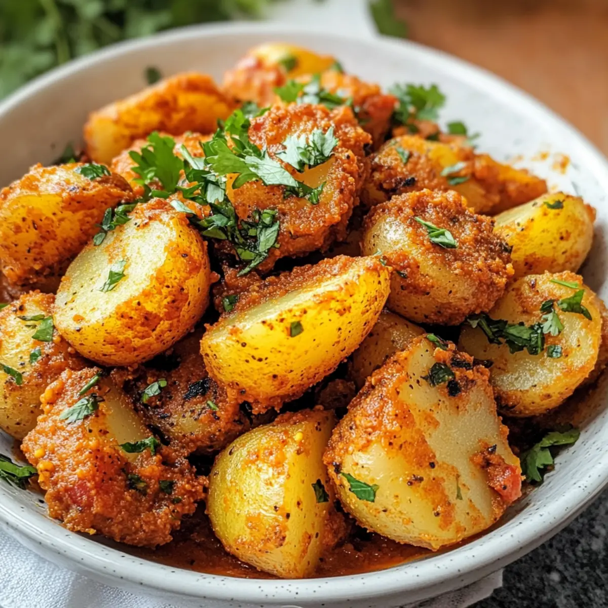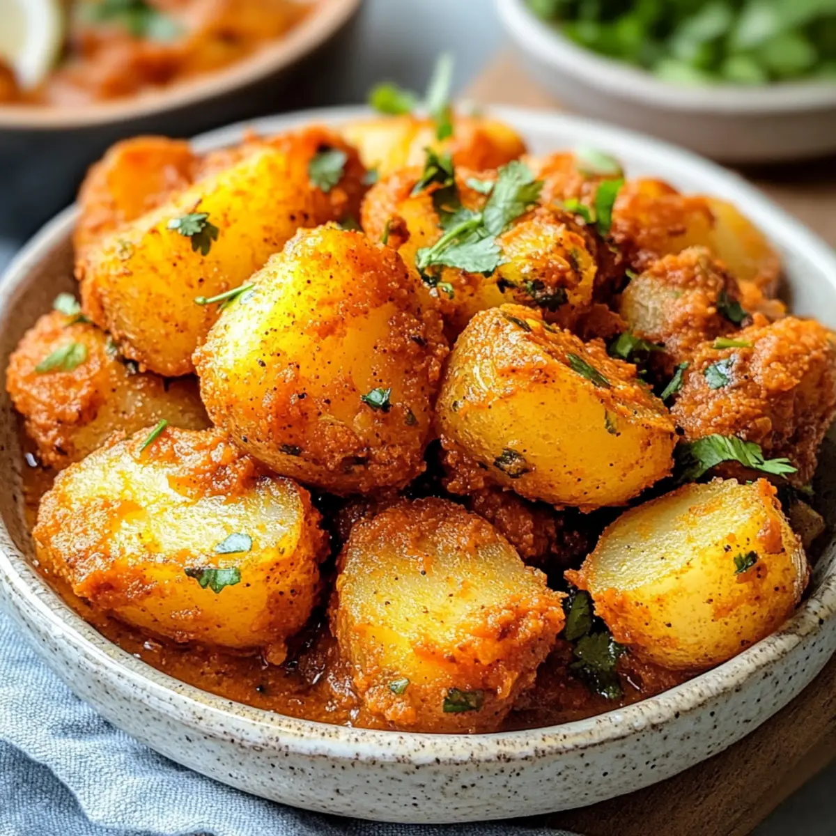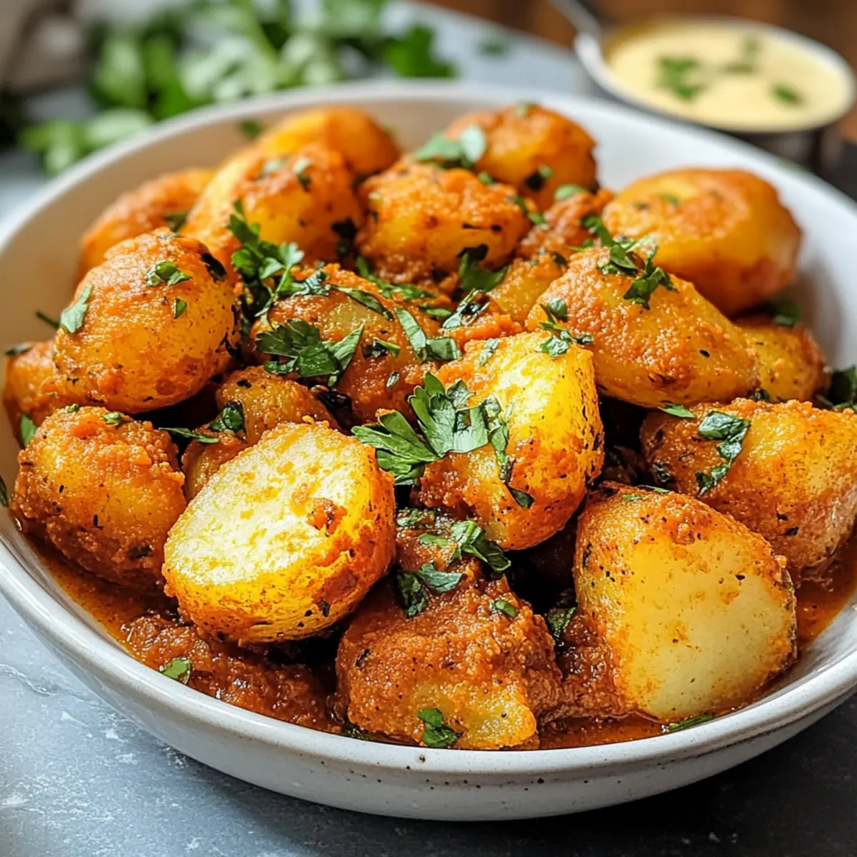 Das Herzstück vieler indischer Feste sind die unverwechselbaren Aromen, und unser Rezept für würziges indisches Kartoffelmasala bringt genau das auf deinen Tisch. Dieses Rezept verwandelt einfache, goldene Kartoffeln in einen würzigen Snack, der selbst die geschmacklich wählerischsten Esser begeistert. Die gelungene Kombination aus knusprigen Kartoffeln und einer aromatischen Tomatensauce macht dieses Gericht zur perfekten Wahl für gesellige Abende oder gemütliche Familienessen. Mit nur wenigen Zutaten ist die Zubereitung kinderleicht – auch für Kochanfänger! Ganz egal, ob du es würziger oder milder bevorzugst, diese vielseitige Rezeptur lässt sich wunderbar anpassen. Bist du bereit, in die köstliche Welt des Kartoffelmasalas einzutauchen und deinen Gaumen mit einem Hauch sensationeller indischer Küche zu verwöhnen? Warum wirst du dieses Rezept lieben? Einfachheit: Die Zubereitung dieses Kartoffelmasalas erfordert nur wenige Schritte und grundlegende Kochkenntnisse, sodass auch Kochanfänger sich mühelos an das Rezept wagen können. Vielseitigkeit: Mit der Möglichkeit, die Schärfe nach deinem Geschmack anzupassen, bleibt kein Gaumen unzufrieden. Du kannst auch andere Gemüse hinzufügen oder sogar Süßkartoffeln verwenden! Aromatische Würze: Die Kombination aus frischen Zutaten und aromatischen Gewürzen bringt eine Fülle an Geschmack auf deinen Teller und sorgt für ein wahres Geschmackserlebnis. Gesellige Stimmung: Ob als Vorspeise oder als Hauptgericht, dieses Gericht ist perfekt für gesellige Abende und beeindruckt immer deine Gäste. Und wenn du Zeit sparen möchtest, kannst du es im Voraus zubereiten und einfach wieder aufwärmen – leicht und lecker! Würziges indisches Kartoffelmasala Zutaten • Die Basis für dein aromatisches Erlebnis! Für die Kartoffeln Kartoffeln – Sie bilden die Hauptstruktur; koche sie, bis sie gerade zart sind, um ein Zerfallen zu vermeiden. Frische grüne Chilis – Fügen Schärfe hinzu; passe die Menge deinem persönlichen Schärfewunsch an. Für die Sauce Tomaten – Bringen eine fruchtige Note; frische Tomaten verleihen den besten Geschmack, für eine glattere Sauce püriere sie gut. Senfkörner – Zum Würzen; sie entfalten ihr volles Aroma beim Temperieren, achte darauf, sie nicht zu verbrennen. Kreuzkümmelsamen – Sorgen für einen zusätzlichen Geschmackskick; röste sie leicht, bevor du sie hinzufügst. Ingwer-Knoblauch-Paste – Fügt der Sauce Kraft und gesundheitliche Vorteile hinzu; unterstütze die Verdauung und verbessere den Geschmack. Für das Finish Korianderblätter – Für Frische und Garnitur; sie bringen zusätzlich Vitamin K in das Gericht. Dieses würzige indische Kartoffelmasala ist ein Genuss, den du unbedingt ausprobieren solltest! Schritt-für-Schritt-Anleitung für Würziges indisches Kartoffelmasala Step 1: Kartoffeln kochen Beginne, indem du die Kartoffeln gründlich wäscht und in einen Topf mit kaltem Wasser gibst. Koche sie bei mittlerer Hitze etwa 15-20 Minuten, bis sie gerade zart sind, aber noch fest. Prüfe den Gargrad mit einer Gabel. Wenn sie fertig sind, gieße das Wasser ab und lasse die Kartoffeln etwas abkühlen, bevor du sie in Würfel schneidest. Step 2: Gewürze temperieren Erhitze in einer großen Pfanne 2 Esslöffel Öl bei mittlerer Hitze. Füge die Senfkörner und Kreuzkümmelsamen hinzu und lasse sie für etwa 1-2 Minuten brutzeln, bis sie beginnen zu springen. Achte darauf, dass sie nicht verbrennen, und rühre gelegentlich um, damit sie gleichmäßig temperiert werden. Step 3: Aromatische Mischung zubereiten Gib anschließend die Ingwer-Knoblauch-Paste und die fein gehackten grünen Chilis in die Pfanne. Sauté die Mischung für etwa 2-3 Minuten, bis sie duftet und die Zwiebel eine goldene Farbe annimmt. Achte darauf, dass die Hitze nicht zu hoch ist, um ein Anbrennen zu vermeiden. Step 4: Tomaten hinzufügen Füge nun die gehackten frischen Tomaten zur Pfanne hinzu. Rühre gut um und lasse die Mischung bei mittlerer Hitze für etwa 5-7 Minuten köcheln, bis die Tomaten weich sind und eine dicke Sauce entsteht. Du kannst ein wenig Wasser hinzufügen, wenn die Mischung zu dick wird. Step 5: Kartoffeln einmischen Sobald die Tomatensauce fertig ist, gib die vorgekochten Kartoffelwürfel in die Pfanne. Mische vorsichtig alles zusammen, sodass die Kartoffeln gleichmäßig mit der Sauce bedeckt sind. Lass das Würzige indische Kartoffelmasala für 5 Minuten bei niedriger Hitze köcheln, um die Aromen optimal zu vermischen. Step 6: Abschmecken und servieren Schmecke das Gericht vor dem Servieren ab und füge nach Belieben Salz oder zusätzliche Gewürze hinzu. Garniere das Kartoffelmasala mit frischen Korianderblättern und serviere es heiß. Dieses würzige indische Kartoffelmasala passt hervorragend zu Reis oder Naan und bringt ein Stück indische Küche auf deinen Tisch. Expertentipps für Würziges indisches Kartoffelmasala Die richtige Konsistenz: Achte darauf, die Kartoffeln nur bis zur Zartheit zu kochen, um ein Zerfallen zu verhindern. Ideal sind festkochende Sorten. Spice Level anpassen: Wenn du empfindlich auf Schärfe reagierst, beginn mit einem Minimum an grünen Chilis und taste dich langsam heran. Ähnliche Gewürze verwenden: Senfkörner und Kreuzkümmel entfalten ihre Aromen am besten, wenn sie vor dem Hinzufügen leicht geröstet werden. So bleibt das würzige indische Kartoffelmasala geschmacklich intensiv. Frische Zutaten bevorzugen: Verwende nach Möglichkeit frische Tomaten, da sie einen deutlich besseren Geschmack bieten als Konserven. Garnitur für den letzten Schliff: Frische Korianderblätter verleihen dem Gericht nicht nur Geschmack, sondern auch ein einladendes Aussehen. Perfect für deinen Esstisch! Vorbereitung für dein würziges indisches Kartoffelmasala Unser würziges indisches Kartoffelmasala ist ideal für dein Meal Prep! Du kannst die Kartoffeln bis zu 24 Stunden im Voraus kochen und kühl lagern, um die Zubereitungszeit zu verkürzen. Achte 