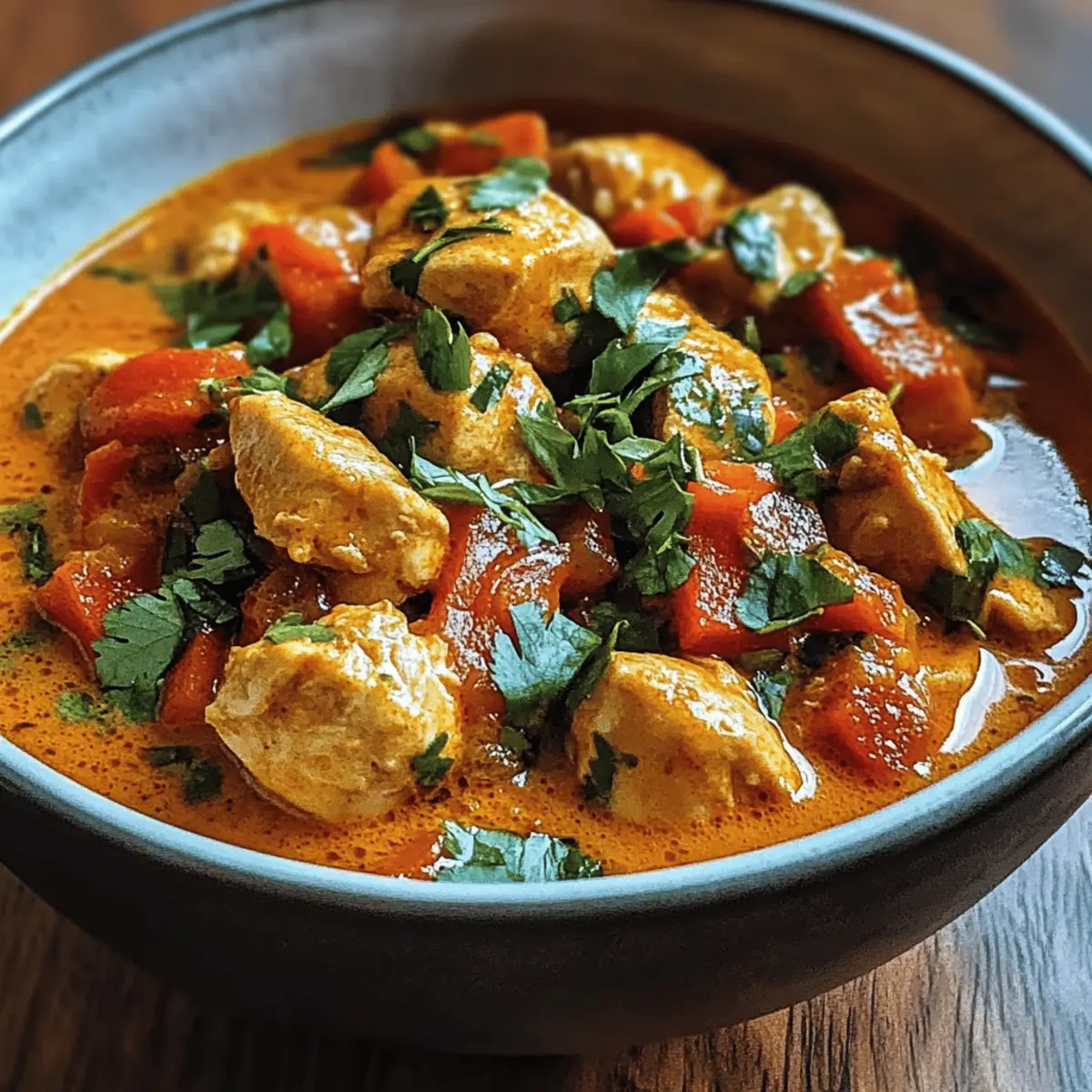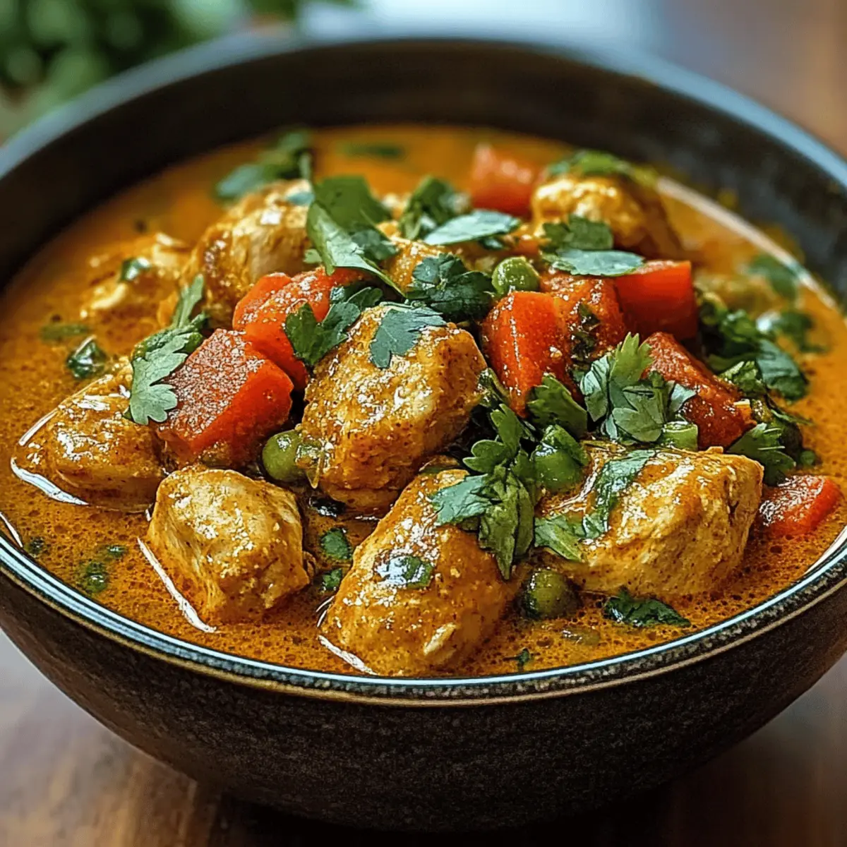 Eines Abends, während ich in meiner Küche stand und die verschiedenen Gewürze erkundete, wurde ich von den verlockenden Aromen meines neuen Lieblingsgerichts, dem würzigen Kokosnuss-Hähnchen-Curry, überwältigt. Dieses Rezept vereint die perfekte Kombination aus scharfen, herzhaften und süßen Noten und zeigt, wie einfach und schnell man eine nahrhafte Mahlzeit zaubern kann – in nur 45 Minuten! Die Vielseitigkeit des Kokosnuss-Hähnchen-Currys macht es zum idealen Gericht für jedes Familienessen, während beispielsweise auch eine vegetarische Option möglich ist, die selbst Skeptiker überzeugt. Möchtest du herausfinden, wie du mit wenigen Zutaten ein Geschmackserlebnis der besonderen Art kreieren kannst? Lass uns gemeinsam in die Welt der asiatischen Küche eintauchen! Warum ist dieses Curry so besonders? Vielseitigkeit: Dieses Würzige Kokosnuss-Hähnchen-Curry lässt sich leicht an deine Vorlieben anpassen, egal ob du Fleischliebhaber oder Vegetarier bist. Schnelle Zubereitung: In nur 45 Minuten steht ein köstliches Gericht auf dem Tisch, perfekt für entspannte Wochentage. Intensive Aromen: Die harmonische Kombination aus Gewürzen und Kokosmilch bietet ein Geschmacksfeuerwerk, das alle überzeugt. Gesund und nahrhaft: Mit frischen Zutaten ist dieses Curry eine tolle Wahl für ein gesundes Familienessen. Für jeden Anlass: Ob für das Alltagsessen oder besondere Anlässe – dieses Rezept bringt Wärme und Freude auf den Tisch. Probiere auch mal unsere Variationen für zusätzliche Inspiration! Würziges Kokosnuss-Hähnchen-Curry Zutaten Entdecke die Zutaten für ein unwiderstehliches Geschmackserlebnis! Für das Curry • Hähnchenbrust – Diese Hauptproteinquelle kann alternativ durch Pute oder Schweinefleisch ersetzt werden. • Kokosmilch – Sorgt für die cremige Basis; alternativ kannst du auch Mandel- oder Sojamilch verwenden, beachte jedoch, dass dies den Geschmack verändert. • Rote Currypaste – Fügt Tiefe und Schärfe hinzu; für mehr Hitze kannst du zusätzlich frische Chilis oder mehr Currypaste verwenden. • Gemüse (z.B. Paprika, Zucchini) – Sorgt für wertvolle Nährstoffe und Textur; variiere je nach Saison und Vorliebe. • Zwiebel – Das aromatische Fundament für dein Curry. • Knochenbrühe (oder Wasser) – Sorgt für zusätzliche Feuchtigkeit und Geschmack. Für die Garnitur • Frische Kräuter (z.B. Koriander) – Bringt ein frisches Aroma; ideal für die Verfeinerung des Geschmacks. • Limettenschnitze – Ein Spritzer Limette bringt zusätzliche Frische und Säure ins Spiel. Mit diesen Zutaten zauberst du im Handumdrehen dein eigenes Würziges Kokosnuss-Hähnchen-Curry und verwöhnst deine Liebsten mit einem herzhaften Gericht! Schritt-für-Schritt-Anleitung für Würziges Kokosnuss-Hähnchen-Curry Step 1: Hähnchen anbraten Schneide die Hähnchenbrust in Würfel und erhitze einen großen Topf bei mittlerer Hitze. Füge etwas Öl hinzu und brate das Hähnchen für etwa 5-7 Minuten an, bis es goldbraun und durchgegart ist. Rühre regelmäßig um, damit das Fleisch gleichmäßig brät und nicht anklebt. Step 2: Zwiebeln hinzufügen Gib die gewürfelten Zwiebeln zum angebratenen Hähnchen im Topf. Brate alles zusammen für weitere 3-5 Minuten an, bis die Zwiebeln weich und leicht glasig sind. Diese aromatische Basis sorgt dafür, dass das Würzige Kokosnuss-Hähnchen-Curry einen intensiven Geschmack bekommt. Step 3: Rote Currypaste einrühren Rühre die rote Currypaste in den Topf, sodass sie mit dem Hähnchen und den Zwiebeln gut vermischt ist. Lasse die Mischung für 1-2 Minuten anbraten, um die Aromen freizusetzen. Dies wird dem Curry eine köstliche, würzige Tiefe verleihen. Step 4: Kokosmilch und Brühe hinzufügen Gieße die Kokosmilch und die Knochenbrühe (oder Wasser) in den Topf und rühre alles gut um. Erhöhe die Hitze, bis die Mischung anfängt zu kochen, und reduziere dann die Hitze auf niedrig. Lass das Curry für etwa 5 Minuten sanft köcheln. Step 5: Gemüse hinzufügen Füge das gewürfelte Gemüse, wie Paprika und Zucchini, hinzu und rühre alles gut um. Lasse das Würzige Kokosnuss-Hähnchen-Curry für weitere 20-30 Minuten bei mittlerer Hitze köcheln, bis das Gemüse weich ist und die Aromen sich entfalten. Step 6: Abschmecken und servieren Schmecke das Curry ab und würze nach Belieben mit Salz, Pfeffer oder zusätzlicher Currypaste. Serviere das Würzige Kokosnuss-Hähnchen-Curry heiß, garniert mit frischen Kräutern und Limettenschnitzen für ein frisches Finish. Würziges Kokosnuss-Hähnchen-Curry Variationen Du wirst begeistert sein, wie einfach es ist, dein Gericht nach eigenem Geschmack anzupassen und zu verfeinern! Vegetarisch: Ersetze das Hähnchen durch Tofu oder Kichererbsen für eine schmackhafte vegetarische Option. Diese Proteinquellen nehmen die köstlichen Aromen des Currys optimal auf. Dairy-Free: Verwende Kokoscreme anstelle von Kokosmilch, um eine noch intensivere Cremigkeit und einen reichhaltigen Geschmack zu erzielen, ideal für alle, die Milchprodukte meiden. Gemüse-Boost: Füge saisonales Gemüse wie Karotten, grüne Bohnen oder Brokkoli hinzu, um dem Curry mehr Farbe und Nährstoffe zu verleihen. Es bringt Abwechslung auf den Teller! Heat Level: Magst du es schärfer? Erhöhe die Menge der roten Currypaste oder füge frische Chilis hinzu. Für einen milden Geschmack kannst du die Currypaste reduzieren oder durch milde gewürzte Varianten ersetzen. Frische Kräuter: Ergänze die frischen Kräuter mit Basilikum oder Minze für ein aufregendes Aroma. Diese Kräuter bringen Frische und eine harmonische Note ins Curry. Exotische Note: Experimentiere mit Ananas oder Mango, um eine fruchtige Süße hinzuzufügen. Diese fruchtigen Akzente bringen eine herrlich neue Dimension in dein Curry, die überraschend lecker ist. Ungewohnte Aromen: Probiere eine Limonenblätter- oder Zitronengras-Infusion, um deinem Curry einen zusätzlichen, frisch-erfrischenden Kick zu geben. Perfekt für die, die neue G