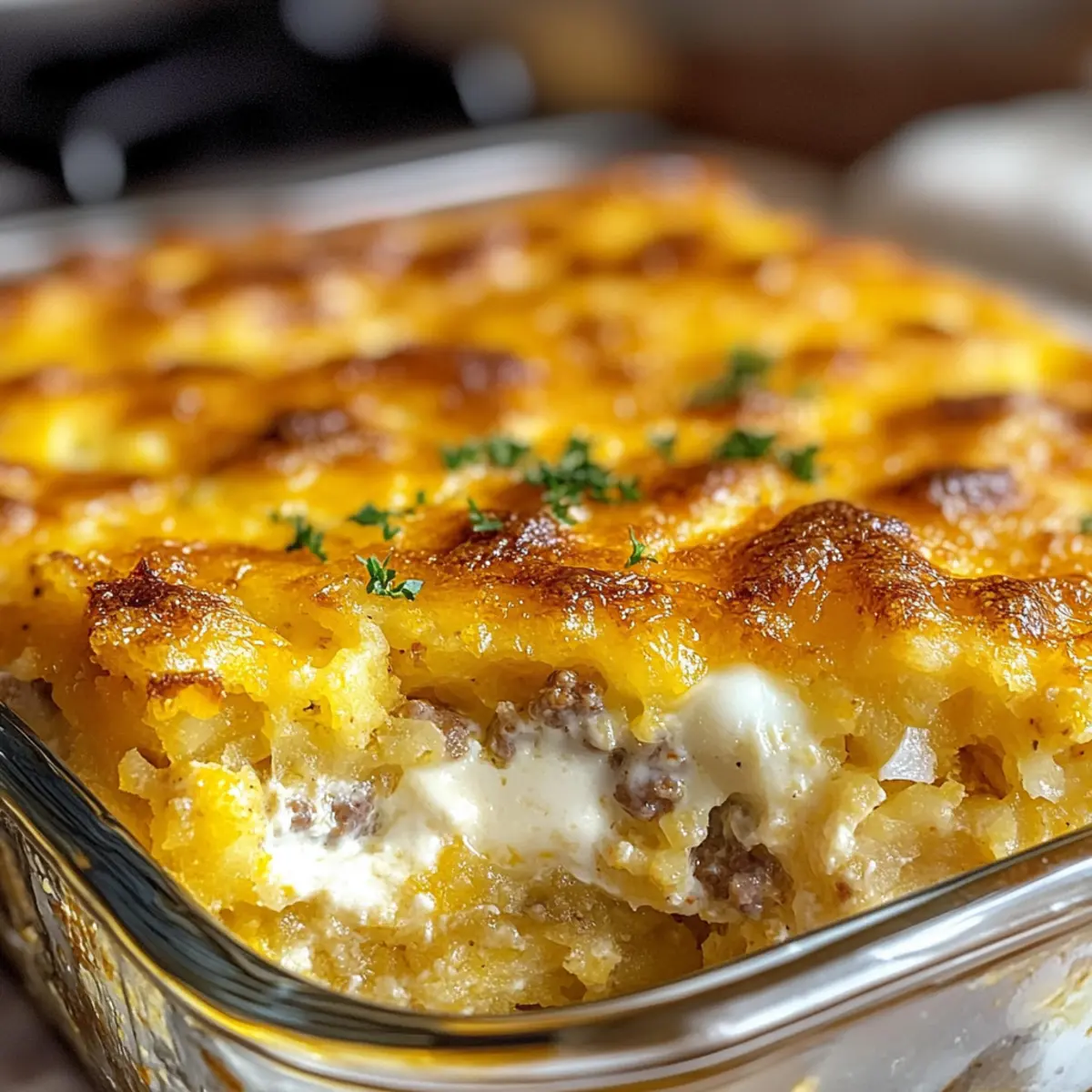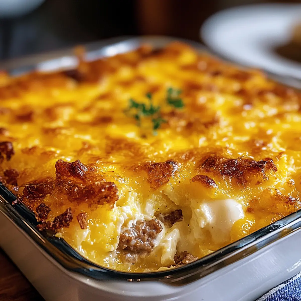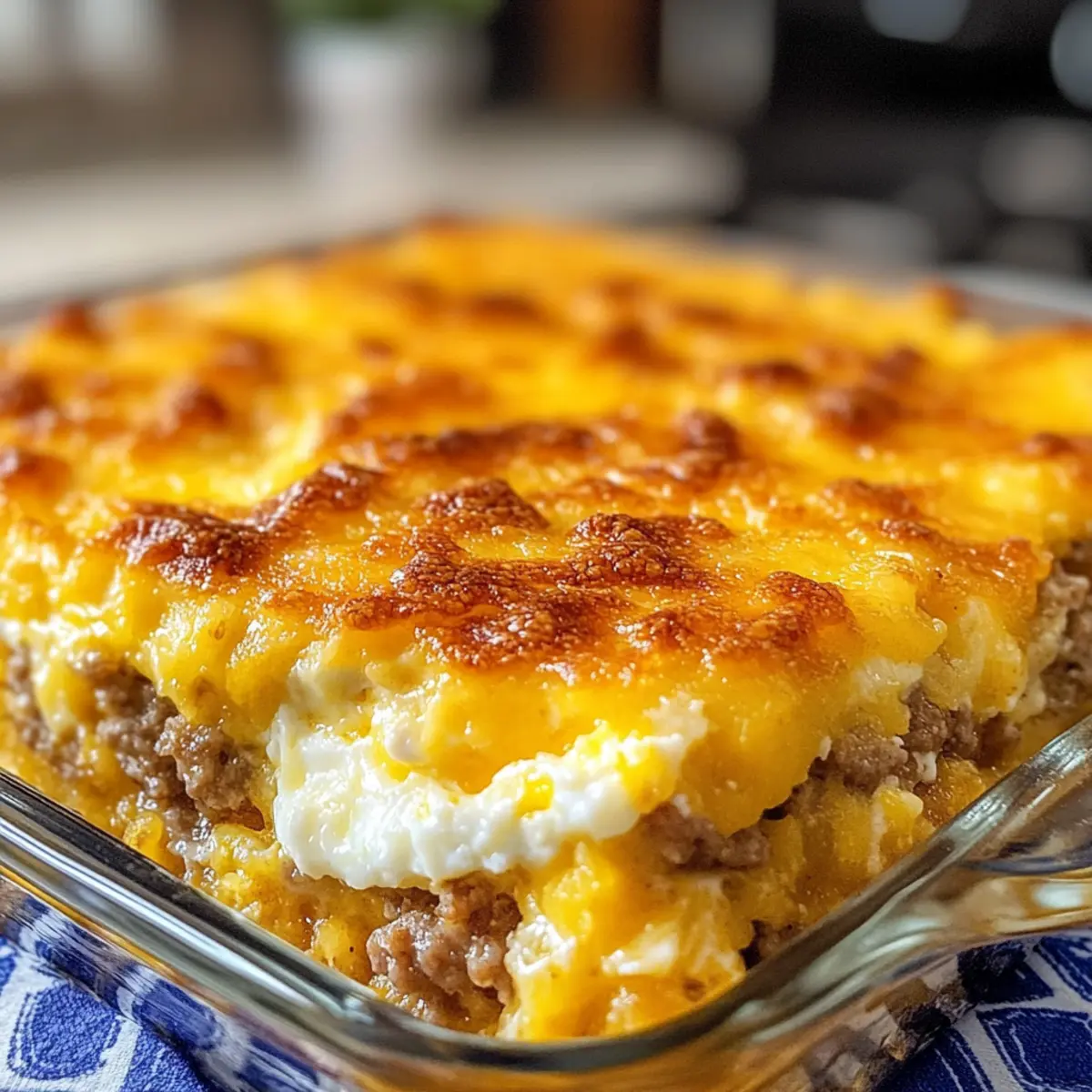 Egal, wie hektisch der Morgen ist, ein duftender Auflauf kann das Chaos in ein Frühstücksmärchen verwandeln. Mein Wurst Eier und Frischkäse Rösti Auflauf gehört zu unseren absoluten Favoriten, weil er nicht nur köstlich, sondern auch unglaublich einfach zuzubereiten ist. Mit knusprigen Rösti, herzhaftem Wurst, fluffigen Eiern und cremigem Frischkäse wird jeder Biss zu einem wärmenden Genuss. Diese Rezeptvariation eignet sich perfekt für die Vorbereitung, sodass du es am Abend vorher zusammenstellen und am Morgen einfach in den Ofen schieben kannst – kein Stress, nur leckerer Genuss. Egal, ob du es für ein Familienfrühstück oder einen Brunch mit Freunden zubereitest, dieser Auflauf wird garantiert zum Star auf jedem Tisch. Was hältst du davon, deine eigene köstliche Version zu entdecken? Warum wirst du dieses Rezept lieben? Einfache Zubereitung: Der Wurst Eier und Frischkäse Rösti Auflauf ist kinderleicht, selbst für Kochanfänger! Vielseitigkeit: Du kannst Zutaten nach deinem Geschmack anpassen – sei es vegetarisch oder mit anderen Wurstsorten. Zeitersparnis: Perfekt für stressige Morgen, da du ihn am Abend vorher vorbereiten kannst. Zufriedenstellender Geschmack: Die Kombination aus knusprigen Rösti und cremigem Frischkäse sorgt für ein rundum befriedigendes Geschmackserlebnis. Familienfreundlich: Ideal für das ganze Familienfrühstück oder einen Brunch mit Freunden, der garantiert jeden begeistert! Gesunde Optionen: Mit einfachen Anpassungen kannst du ihn auch leichter oder keto-freundlich gestalten, wie z.B. mit Blumenkohl statt Rösti. Wurst Eier und Frischkäse Rösti Auflauf Zutaten Für die Füllung Wurst – sorgt für einen herzhaften Geschmack; du kannst auch Speck oder Schinken verwenden. Eier – sind unerlässlich, um den Auflauf zu binden und ihm eine luftige Textur zu verleihen. Frischkäse – verleiht Cremigkeit; für eine leichtere Option ist eine laktosefreie Variante möglich. Für die Basis Rösti – bildet die Grundlage; benutze aufgetautes gefrorenes Rösti, um Zeit zu sparen, oder frische Kartoffeln als Ersatz. Geriebener Cheddar – fügt einen scharfen, käsigen Geschmack hinzu und sorgt für eine köstliche Oberfläche. Piper Jack kann für zusätzlichen Schwung verwendet werden. Vollmilch – hilft, die Eiermasse geschmeidig zu machen. Mandelmilch ist eine gute laktosefreie Alternative. Würzen und Extras Salz & Pfeffer – essentielle Gewürze zur Geschmacksverstärkung. Butter (optional) – zum Einfetten der Form; kann für eine leichtere Variante weggelassen werden. Dieser Wurst Eier und Frischkäse Rösti Auflauf ist der perfekte Start in den Tag! Schritt-für-Schritt-Anleitung für Wurst Eier und Frischkäse Rösti Auflauf Schritt 1: Ofen vorheizen Heize deinen Ofen auf 175 °C (350 °F) vor. Dies ist eine wichtige Vorbereitung, damit der Wurst Eier und Frischkäse Rösti Auflauf gleichmäßig und perfekt gebacken wird. Stelle sicher, dass alle Zutaten bereit sind, während der Ofen vorheizt, um Zeit zu sparen und einen reibungslosen Ablauf beim Kochen zu gewährleisten. Schritt 2: Wurst anbraten Erhitze eine große Pfanne bei mittlerer Hitze und brate die Wurst an, bis sie schön gebräunt ist, etwa 5–7 Minuten. Achte darauf, das überschüssige Fett abzugießen, damit der Auflauf nicht zu fettig wird. Während die Wurst kocht, verteilt sich ein köstlicher Duft in deiner Küche, der das Frühstücksgefühl verstärkt. Schritt 3: Frischkäse einrühren Sobald die Wurst angebraten ist, füge den Frischkäse hinzu und rühre gut um, damit er schmilzt und sich perfekt mit der Wurst verbindet. Dies sollte nur etwa 2 Minuten dauern. Achte darauf, dass keine Klumpen zurückbleiben, damit die Mischung schön cremig wird, was deinem Wurst Eier und Frischkäse Rösti Auflauf ein köstliches Aroma verleiht. Schritt 4: Backform vorbereiten Fette eine 9×13-Zoll (ca. 23×33 cm) Backform mit Butter ein oder benutze eine antihaftbeschichtete Variante, um ein Ankleben zu verhindern. Verteile die aufgetauten Rösti gleichmäßig auf dem Boden der Form und würze sie mit Salz und Pfeffer. Diese Basis gibt deinem Auflauf eine knusprige Textur, die hervorragend zu den cremigen Füllungen passt. Schritt 5: Wurstmischung verteilen Löffle die Wurst- und Frischkäsemischung gleichmäßig über die vorbereiteten Rösti. Verteile die Mischung sorgfältig, damit jede Portion des Wurst Eier und Frischkäse Rösti Auflaufs die köstlichen Aromen aufnimmt. Diese Schicht sorgt dafür, dass der Auflauf saftig und geschmackvoll bleibt. Schritt 6: Käse darüber streuen Streue die Hälfte des geriebenen Cheddarkäses gleichmäßig über die Wurstmischung. Achte darauf, dass der Käse gleichmäßig verteilt ist, damit er beim Backen schmilzt und eine wunderbare, goldene Kruste bildet. Der Käse wird dem Auflauf eine zusätzliche Cremigkeit und eine köstliche Käsenote verleihen, die jeder lieben wird. Schritt 7: Eiermasse zubereiten In einer großen Schüssel die Eier mit der Milch, Salz und Pfeffer gut verquirlen. Diese Mischung sorgt für die Bindung deines Wurst Eier und Frischkäse Rösti Auflaufs und macht ihn schön fluffig. Gieße die Eiermasse gleichmäßig über die gesamte Auflaufform, sodass alle Zutaten gut miteinander verbunden sind. Schritt 8: Käse finalisieren Streue den restlichen Cheddar-Käse als letzte Schicht über den Auflauf. Dies wird dem Wurst Eier und Frischkäse Rösti Auflauf eine köstliche, goldene Oberseite verleihen, die beim Backen blubbert und schmilzt. Die goldene Kruste macht das Gericht besonders einladend und appetitlich. Schritt 9: Backen Backe den Auflauf offen im vorgeheizten Ofen für 45–50 Minuten. Der Auflauf ist fertig, wenn die Mitte fest ist und die Oberseite goldbraun wird. Überprüfe nach etwa 40 Minuten den Fortschritt, um sicherzustellen, dass er nicht zu dunkel wird, und genieße die himmlischen Düfte, die durch die Küche ziehen. Schritt 10: Ruhen lassen und servieren Lass den Wurst Eier und Frisc