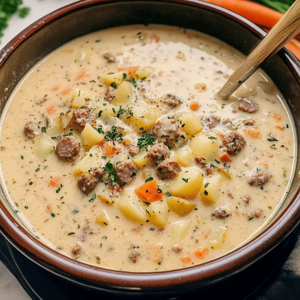Der Winter klopft an die Tür und mit ihm die Sehnsucht nach warmen, herzhaften Gerichten. Lassen Sie mich Ihnen mein geheimes Rezept für eine köstliche Wurst Kartoffel Suppe vorstellen, die nicht nur reichhaltig und cremig ist, sondern auch an langen, kalten Tagen für Wohlfühlmomente sorgt. Die Kombination aus würziger italienischer Wurst und zarten Baby-Kartoffeln sorgt für schnelles, unkompliziertes Kochen, das die ganze Familie begeistern wird. Diese Suppe ist der Inbegriff von Comfort Food und passt perfekt zu einer gemütlichen Runde an kalten Abenden. Bereit, sich von diesem herzhaften Leckerbissen verführen zu lassen? Warum Sie diese Wurst Kartoffel Suppe lieben werden Herzhaft und wohltuend: Mit ihrer cremigen Konsistenz ist diese Suppe der ultimative Wärmebringer an kalten Tagen. Schnell zubereitet: In weniger als 30 Minuten stehen Sie am Tisch und genießen diesen köstlichen Leckerbissen. Familienfreundlich: Die Kombination aus italienischer Wurst und Baby-Kartoffeln begeistert Groß und Klein. Einfache Anpassungen: Variieren Sie mit saisonalem Gemüse oder nutzen Sie alternative Proteine für eine leichtere Version! Vielleicht möchten Sie auch unser Rezept für deftige Kräuterbrötchen dazu ausprobieren. Perfekt für Reste: Diese Suppe lässt sich wunderbar aufbewahren und schmeckt am nächsten Tag sogar noch besser. Wurst Kartoffel Suppe Zutaten Für die Brühe Italienische Wurst – sorgt für Würze und reichhaltigen Geschmack; wählen Sie milde Wurst für einen sanfteren Genuss oder scharfe für einen Kick. Olivenöl – dient zum Anbraten; kann durch Pflanzenöl ersetzt werden. Mirepoix (Karotten, Sellerie, Zwiebel) – bringt aromatische Basisnoten; vorgefertigte Mischungen verkürzen die Vorbereitungszeit. Gehackter Knoblauch – verstärkt den Geschmack; kann durch Knoblauchpulver ersetzt werden. Baby-Kartoffeln – sorgt für Sämigkeit und ist leicht zuzubereiten; rote Kartoffeln sind eine gute Alternative. Hühnerbrühe – die Flüssigkeitsbasis; verwenden Sie natriumarme Varianten für mehr Kontrolle über das Salz. Mehl – zum Andicken der Suppe. Milch – verleiht Cremigkeit; kann durch jede Milchvariante, wie Mandel- oder Hafermilch, ersetzt werden. Schlagsahne – fügt Reichtum hinzu; halb und halb ist eine leichtere Alternative. Für die Würze Getrocknete Petersilie und Basilikum – für zusätzlichen Geschmack; frische Kräuter sind für einen lebendigeren Geschmack sehr empfehlenswert. Salz und Pfeffer – grundlegende Würze nach Geschmack anpassen. Für die leckeren Toppings Extra-scharfer Cheddar-Käse – verleiht die Käsenote; frisch geriebener Käse schmilzt besser als der vorgeriebene. Sauerrahm – sorgt für einen tollen säuerlichen Geschmack; griechischer Joghurt kann ebenfalls verwendet werden. Herzhafte Butterbrötchen – optionale Servierempfehlung, perfekt zum Eintunken. Erleben Sie die Geheimnisse dieser Wurst Kartoffel Suppe und bringen Sie Wärme direkt auf Ihren Tisch! Schritt-für-Schritt-Anleitung für Wurst Kartoffel Suppe Step 1: Wurst anbraten Erhitzen Sie einen großen Topf bei mittlerer bis hoher Hitze und geben Sie die italienische Wurst hinzu. Braten Sie die Wurst etwa 5-7 Minuten lang an, bis sie schön braun ist und sich krümelige Teile bilden. Nehmen Sie die Wurst anschließend aus dem Topf und legen Sie sie auf einen Teller. Step 2: Aromaten sautieren In dem gleichen Topf das Olivenöl erhitzen und die Mirepoix (Karotten, Sellerie, Zwiebel) hinzufügen. Sautieren Sie die Mischung für 5–10 Minuten, bis das Gemüse weich ist und die Aromen freisetzt. Fügen Sie dann den gehackten Knoblauch hinzu und sautieren Sie für weitere 30 Sekunden, bis er duftet. Step 3: Kartoffeln kochen Streuen Sie die gewürfelten Baby-Kartoffeln, getrocknete Petersilie, getrocknetes Basilikum, Salz und Pfeffer in den Topf. Gießen Sie die Hühnerbrühe darüber und bringen Sie alles zum Kochen. Senken Sie die Hitze und lassen Sie die Mischung 15–20 Minuten lang köcheln, bis die Kartoffeln zart sind und leicht mit einer Gabel durchstochen werden können. Step 4: Creme-Basis herstellen In einem separaten kleinen Topf die restliche Butter bei niedriger Hitze schmelzen. Rühren Sie das Mehl ein und kochen Sie die Mischung 1 Minute lang unter ständigem Rühren. Gießen Sie langsam die Milch dazu und rühren Sie weiter, bis die Mischung dick wird. Fügen Sie dann die Schlagsahne hinzu und nehmen Sie den Topf von der Hitze. Step 5: Suppe kombinieren Sobald die Kartoffeln schön zart sind, geben Sie die cremige Mischung in den großen Topf und rühren Sie alles gut um. Fügen Sie nach und nach den geriebenen Cheddar-Käse hinzu und rühren Sie weiter, bis der Käse vollständig geschmolzen ist. Geben Sie zuletzt die angebratene Wurst hinzu und passen Sie die Würze nach Geschmack an. Step 6: Servieren Servieren Sie die Wurst Kartoffel Suppe heiß und genießen Sie sie optional mit herzhafter Butterbrötchen. Diese Suppe ist nicht nur sättigend, sondern auch perfekt für gemeinsame Abende mit der Familie. Vorbereitung für die Wurst Kartoffel Suppe Diese Wurst Kartoffel Suppe eignet sich hervorragend für die Vorbereitung im Voraus, was Ihnen wertvolle Zeit an hektischen Tagen spart! Sie können die italienische Wurst und das Gemüse bis 24 Stunden vor dem Kochen anbraten und im Kühlschrank aufbewahren, um die Aromen zu bewahren. Auch die Baby-Kartoffeln können bereits gewürfelt und in Wasser gelegt werden, um ein Anbräunen zu verhindern. Wenn Sie bereit sind, die Suppe zu genießen, erwärmen Sie einfach die vorgefertigten Zutaten, kochen Sie sie mit der Brühe und folgen Sie den letzten Kochschritten. Für beste Ergebnisse empfehle ich, die Sahne erst kurz vor dem Servieren hinzuzufügen, um eine cremeige Konsistenz zu erhalten. So bleibt Ihre Wurst Kartoffel Suppe einfach köstlich! Expert Tips für Wurst Kartoffel Suppe Gemüse gleichmäßig schneiden: Achten Sie darauf, dass die Gemüsewürfel gleichmäßig groß sind, dami