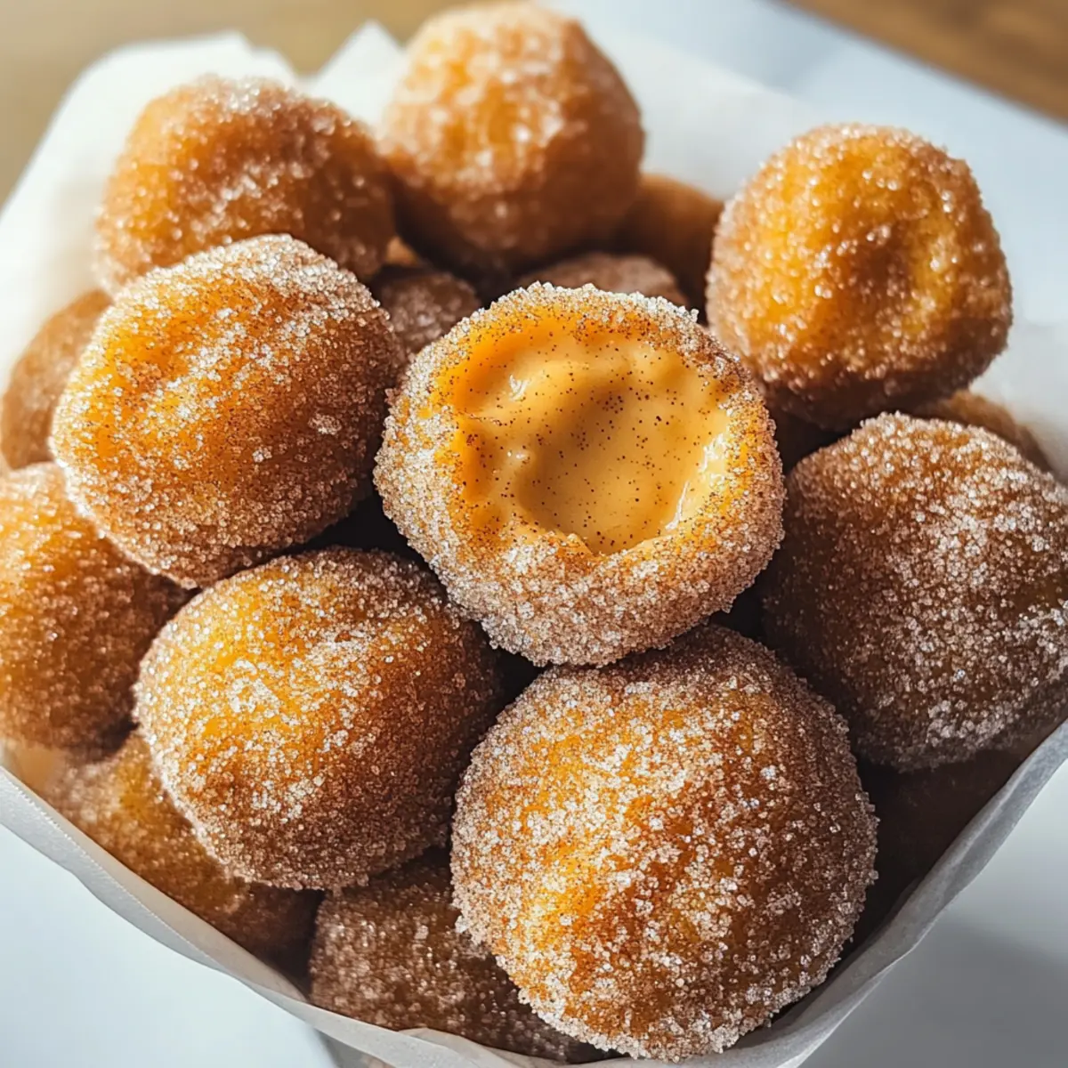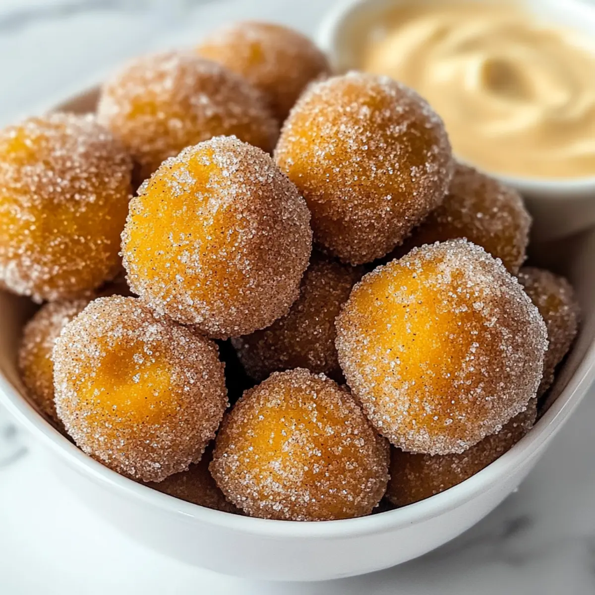 Ein warmes, verführerisches Aroma umhüllte meine Küche, als ich die Zimt Zucker Kürbis Donut Löcher zubereitete – wahre Herbstfreuden, die gleich aus einem Märchen entsprungen scheinen. Diese kleinen Leckerbissen sind nicht nur einfach zu machen, sondern auch perfekt für gesellige Runden, wenn man etwas Gemütlichkeit zaubern möchte. Die Kombination aus fluffigem Teig, dem subtilen Geschmack von Kürbis und einer süßen Zimt-Zucker-Hülle entfaltet sich mit jedem Biss und lässt uns das Gefühl von behaglichen Herbstabenden erleben. Und wenn du noch einen Sahne-Genuss hinzufügst, wird es zu einem unwiderstehlichen Highlight! Bereit, deine Küche in eine duftende Herbstoase zu verwandeln? Warum wirst du diese Donut Löcher lieben? Einfachheit pur: Die Zubereitung dieser Zimt Zucker Kürbis Donut Löcher ist kinderleicht und benötigt nur wenig Zeit – perfekt für alle, die frische, hausgemachte Leckereien mögen. Wärme und Gemütlichkeit: Jedes Stück entfaltet einen wunderbar wärmenden Geschmack, der an die goldenen Herbsttage erinnert. Vielseitige Variationen: Du kannst sie je nach Laune mit verschiedenen Gewürzen oder einem leckeren Sahne-Dip anpassen – die Möglichkeiten sind unbegrenzt! Geselliges Vergnügen: Ob als Snack bei einem Herbstfest oder als süßes Extra zum Kaffeeklatsch – diese kleinen Leckerbissen werden deine Gäste begeistern. Perfekte Textur: Die fluffigen Donut Löcher sind außen knusprig und innen wunderbar saftig – ein Genuss, der einfach umwerfend ist! Zimt Zucker Kürbis Donut Löcher Zutaten Für den Teig Butter – Fügt Reichtum und Feuchtigkeit hinzu. Verwende eine pflanzliche Alternative für eine vegane Variante. Brauner Zucker – Sorgt für Süße und Tiefe. Kann durch Kokoszucker ersetzt werden, um den glykämischen Index zu senken. Ei – Bindet die Zutaten. Für eine vegane Alternative probiere Apfelmus oder ein Leinsamen-Ei. Ahornextrakt – Verleiht einen reichen, süßen Geschmack. Vanilleextrakt ist ein guter Ersatz. Milch & Zitronensaft – Erzeugt einen Buttermilch-Ersatz für Säure und Feuchtigkeit. Jede pflanzliche Milch kann verwendet werden. Kürbispüree – Die Hauptzutat, die Geschmack und Feuchtigkeit liefert. Achte darauf, überschüssige Feuchtigkeit zu entfernen, um die richtige Textur zu erzielen. Weizenmehl – Gibt den Donut Löchern Struktur. Für glutenfreie Varianten kann ein glutenfreies Mehlgemisch verwendet werden. Backpulver & Natron – Treibmittel für die gewünschte Fluffigkeit. Koshersalz – Balanciert die Süße. Gewürze (Zimt, Muskatnuss, Ingwer, Nelken) – Sorgen für einen warmen, gemütlichen Geschmack. Füge gern Piment für zusätzliche Würze hinzu. Für die Zimt-Zucker-Beschichtung Zucker – Verleiht Süße und ist die Basis für die Zimt-Zucker-Mischung. Zimt – Fügt das unverwechselbare Aroma hinzu, das perfekt zum Kürbis passt. Butter – Wird geschmolzen, um die Donut Löcher damit zu beschichten und die Zimt-Zucker-Mischung haften zu lassen. Für den optionalen Sahne-Dip Frischkäse – Die Basis des Dips, sorgt für eine cremige Konsistenz. Zucker – Süßt den Dip zusätzlich. Ahornextrakt – Verstärkt den köstlichen Geschmack. Sahne – Ergänzt die Hauptzutaten, um die gewünschte Konsistenz zu erreichen. Entdecke die Wunder der Zimt Zucker Kürbis Donut Löcher und lass dich von der köstlichen Kombination aus Gewürzen und saisonalem Kürbis verzaubern! Schritt-für-Schritt-Anleitung für Zimt Zucker Kürbis Donut Löcher Step 1: Feuchte Zutaten vorbereiten In einer großen Schüssel schmelze die Butter und füge den braunen Zucker, das Ei und den Ahornextrakt hinzu. Rühre alles gut um, bis eine glatte Konsistenz entsteht. Dies dauert etwa 2-3 Minuten. Diese Mischung bildet die Grundlage für die Zimt Zucker Kürbis Donut Löcher und sorgt für Süße und Feuchtigkeit. Step 2: Buttermilch herstellen In einer separaten Schüssel vermische die Milch und den Zitronensaft. Lass die Mischung 5 Minuten stehen, damit sie eindickt und Buttermilch-ähnlich wird. Dieser Schritt verleiht den Donut Löchern die nötige Säure und hilft, eine fluffige Textur zu erreichen. Step 3: Kürbispüree vorbereiten Lege das Kürbispüree auf ein paar Papiertücher und tupfe es vorsichtig ab, um überschüssige Feuchtigkeit zu entfernen. Dies ist wichtig, damit die Zimt Zucker Kürbis Donut Löcher perfekt gebacken werden und nicht zu feucht werden. Dieser Schritt dauert nur ein paar Minuten und sorgt für die richtige Konsistenz. Step 4: Zutaten kombinieren Füge die Buttermilch und das vorbereitete Kürbispüree zu den feuchten Zutaten in der großen Schüssel hinzu. Rühre alles gut um, bis die Mischung vollständig glatt ist. Dadurch erhältst du eine reichhaltige Basis für die Zimt Zucker Kürbis Donut Löcher. Step 5: Trockene Zutaten mischen In einer separaten Schüssel vermische das Weizenmehl, Backpulver, Natron, Koshersalz und die warmen Gewürze (Zimt, Muskatnuss, Ingwer, Nelken). Vermenge die trockenen Zutaten gründlich mit einem Schneebesen. Füge diese dann langsam zur feuchten Mischung hinzu und falte sie vorsichtig ein, bis alles gerade so verbunden ist. Vermeide Übermischung, damit die Donut Löcher luftig bleiben. Step 6: Backen Heize den Ofen auf 180 °C vor. Fette ein Mini-Muffinblech ein und fülle jedes Fach zu drei Vierteln mit dem Teig. Backe die Zimt Zucker Kürbis Donut Löcher für 10-12 Minuten, bis ein Zahnstocher sauber herauskommt. Lass sie einige Minuten abkühlen, bevor du sie aus der Form nimmst. Step 7: In Zimt-Zucker wälzen Schmelze die Butter in einer kleinen Schüssel. In einer anderen Schüssel vermische den Zucker mit Zimt. Tauche die warmen Donut Löcher in die geschmolzene Butter und rolle sie anschließend in der Zimt-Zucker-Mischung, bis sie vollständig bedeckt sind. Dies verleiht den Donut Löchern einen unwiderstehlich süßen Finish. Step 8: optionalen Sahne-Dip zubereiten Schlage den Frischkäse in einer kleinen Schüssel mit etwas Zuc
