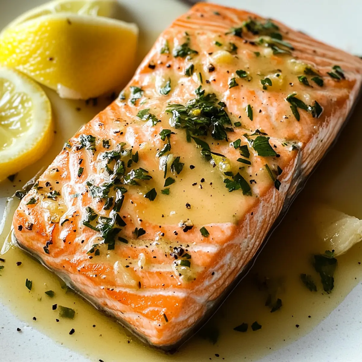 Als ich das erste Mal in einem Restaurant Zitronen-Braune-Butter-Lachs bestellte, war ich komplett überwältigt von der harmonischen Kombination aus knusprigem Lachs und nussiger Butter mit einem spritzigen Zitrus-Twist. Diese 15-Minuten-Rezept ist wie ein magischer Zauber; es verwandelt alltägliche Zutaten in ein köstliches Abendessen, das sowohl leicht zuzubereiten als auch nährstoffreich ist. Mit minimaler Vorbereitungszeit und kaum Aufwand zauberst du ein Gericht, das sicher bei deiner Familie und deinen Freunden begeistert. Die knackige Haut des Lachses gepaart mit dem reichhaltigen, aromatischen Buttergeschmack macht jeden Bissen zu einem Fest für die Sinne. Wenn du also auf der Suche nach einem schnellen und beeindruckenden Rezept bist, das du ganz ohne Stress zubereiten kannst, wird dir dieser Zitronen-Braune-Butter-Lachs sicherlich ein Lächeln ins Gesicht zaubern. Bist du bereit, dein Abendessen auf ein neues Level zu heben? Warum wirst du dieses Rezept lieben? Einfachheit: Der Prozess ist unkompliziert und erfordert nur grundlegende Kochfähigkeiten. Ideal für beschäftigte Abende! Reichhaltiger Geschmack: Die Kombination aus Zitronenfrische und nussiger Butter zaubert ein Aroma, das deine Geschmacksknospen begeistern wird. Vielseitigkeit: Ob mit Haut oder ohne, du kannst dieses Rezept an deine Vorlieben anpassen. Probiere verschiedene Kräuter für eine individuelle Note! Schnell und nahrhaft: In nur 15 Minuten erhältst du ein proteinreiches Gericht, das perfekt für gesundheitsbewusste Esser ist. Beeindruckend für Gäste: Serviere diesen Zitronen-Braune-Butter-Lachs für ein Dinner-Date oder Familie – es wird sicher für Begeisterung sorgen! Zitronen-Braune-Butter-Lachs Zutaten Für den Lachs • Neutrales Öl – Ideal zum Braten, um eine knusprige Haut zu erreichen. Ersetze es durch Raps- oder Pflanzenöl. • Lachsfilets mit Haut (4 x 170 g) – Die Hauptproteinquelle, die gesunde Fette und Geschmack liefert. Kann durch Hautlose Filets ersetzt werden (Kochzeit um 1 Minute reduzieren). • Koshersalz – Verstärkt den Geschmack des Lachses, nach Geschmack würzen. • Zitrone (1) – Fügt Säure und Frische hinzu; Saft und Zesten werden beide verwendet. Verwende Limette für einen anderen Zitrusgeschmack. • Ungesalzene Butter (4 EL, gewürfelt) – Schafft die braune Buttersauce; definiert die Reichhaltigkeit. Verwende gesalzene Butter, passe jedoch zusätzliches Salz im Rezept an. • Knoblauch (1 große Zehe, fein gehackt) – Verleiht einen milden Geschmack, der das Gericht unterstützt. Wenn du einen stärkeren Knoblauchgeschmack bevorzugst, füge mehr hinzu. • Frisch gehackte Petersilie oder Dill (1 EL) – Für Garnitur und zusätzliche Frische; frische Schnittlauch oder Basilikum können ersetzt werden. Für die Garnitur • Frische Kräuter – Siehe oben, für zusätzliche Frische und Geschmack. • Zitronenscheiben – Perfekt zum Servieren und für einen zusätzlichen Zitrus-Kick. Denke daran: Dieser Zitronen-Braune-Butter-Lachs ist nicht nur schnell und einfach zuzubereiten, sondern bringt auch viele gesunde Nährstoffe auf den Tisch! Schritt-für-Schritt-Anleitung für Zitronen-Braune-Butter-Lachs Step 1: Zutaten vorbereiten Beginne, indem du die Lachsfilets mit Koshersalz würzt, um den Geschmack zu verstärken. Dies sollte gleichmäßig auf beiden Seiten verteilt werden. Lass die Filets für etwa 5 Minuten ruhen, damit sie die Aromen aufnehmen können. Dies ist eine wichtige Vorstufe zu deinem Zitronen-Braune-Butter-Lachs. Step 2: Öl erhitzen Erhitze in einer großen, schweren Pfanne bei mittlerer Hitze 2 Esslöffel neutrales Öl. Warte, bis das Öl schimmernd und heiß ist, aber nicht raucht, etwa 2-3 Minuten. Ein heißes Öl ist entscheidend, um eine knusprige Haut beim Braten des Lachses zu erreichen. Step 3: Lachs anbraten Lege die Lachsfilets mit der Hautseite nach unten in die heiße Pfanne. Brate sie für 4-5 Minuten, bis die Haut schön goldbraun und knusprig aussieht. Die Filets sollten sich leicht vom Pfannenboden lösen lassen, was ein gutes Zeichen für die richtige Bräunung ist. Step 4: Butter und Knoblauch hinzufügen Drehe die Lachsfilets vorsichtig um und füge 4 Esslöffel gewürfelte ungesalzene Butter, 1 fein gehackte Knoblauchzehe sowie den Saft und die Zesten von 1 Zitrone hinzu. Koche alles zusammen für weitere 3-4 Minuten, bis der Lachs durchgegart ist und die Butter eine nussige, goldene Farbe annimmt. Step 5: Garnieren und servieren Nimm die Pfanne vom Herd und bestreue den Zitronen-Braune-Butter-Lachs mit frisch gehackter Petersilie oder Dill. Serviere ihn sofort, eventuell mit Zitronenscheiben zur Dekoration. Der Lachs sollte zart und schmelzend in der Mitte sein, während die Buttersauce perfekt darüber fließt. Expert Tipps für Zitronen-Braune-Butter-Lachs • Heißes Öl verwenden: Beginne mit einer gut erhitzten Pfanne, um eine knusprige Haut zu gewährleisten. Mit kaltem Öl kann der Lachs nicht richtig braten. • Nicht überladen: Achte darauf, die Pfanne nicht zu überfüllen; koche den Lachs in Chargen, wenn nötig, um gleichmäßige Bräunung und Knusprigkeit zu erreichen. • Frische Zutaten: Verwende frischen Zitronensaft und frische Kräuter für das beste Aroma in deinem Zitronen-Braune-Butter-Lachs. Getrocknete Kräuter können das Geschmacksprofil verderben. • Gare den Lachs richtig: Überprüfe, ob der Lachs zart und durchgegart ist, ohne ihn zu lange zu kochen, um ein Austrocknen zu vermeiden. Eine Kerntemperatur von 62 Grad Celsius ist ideal. • Variieren nach Geschmack: Experimentiere mit verschiedenen Zitronensorten oder füge einen Hauch von rotem Pfeffer hinzu, um deinen Zitronen-Braune-Butter-Lachs zu personalisieren. Vorbereitung für einen stressfreien Abend mit Zitronen-Braune-Butter-Lachs Der Zitronen-Braune-Butter-Lachs ist ideal für Meal Prep! Du kannst die Lachsfilets bis zu 24 Stunden im Voraus mit Koshersalz würzen und im Kühlschrank marinieren – das sorgt dafür, dass d