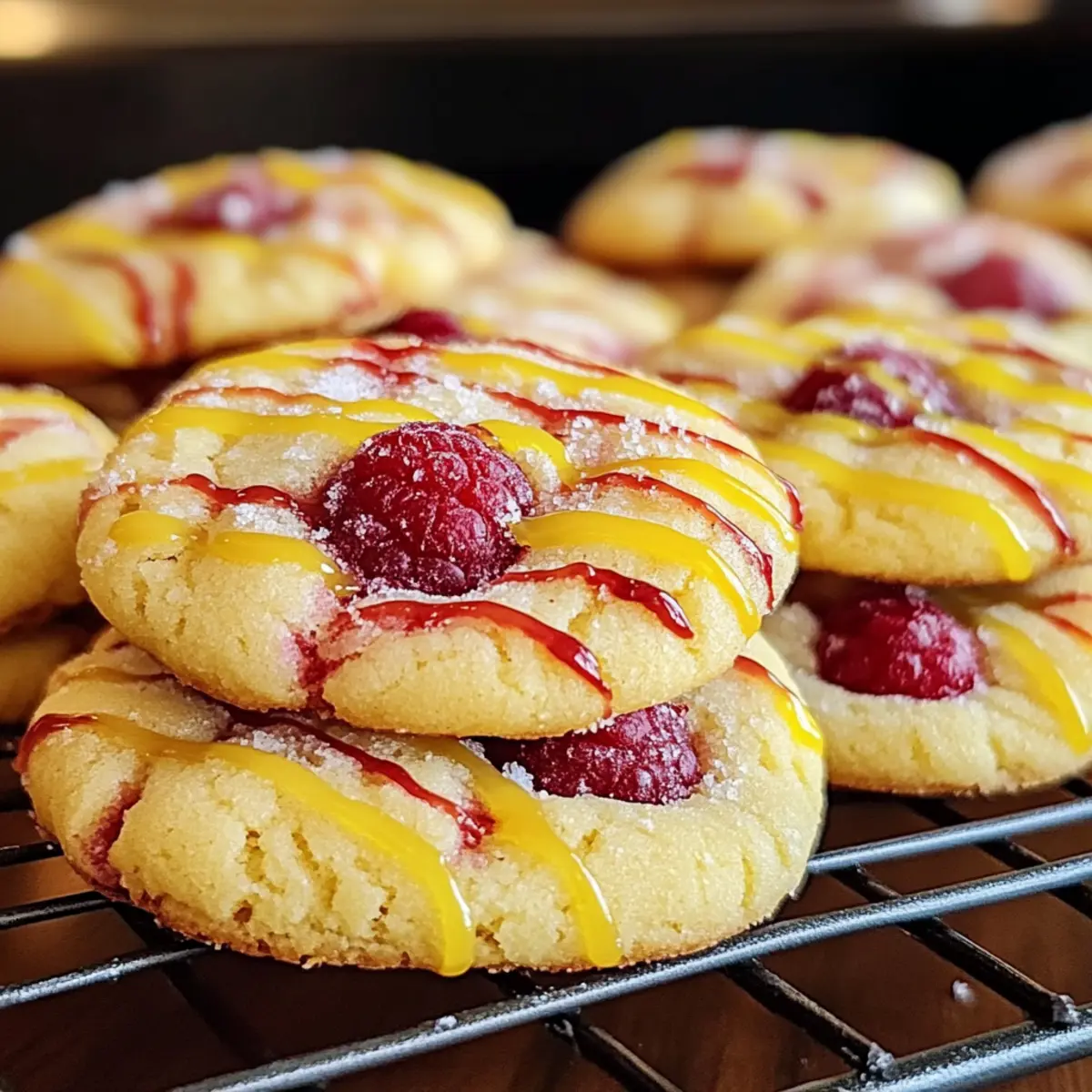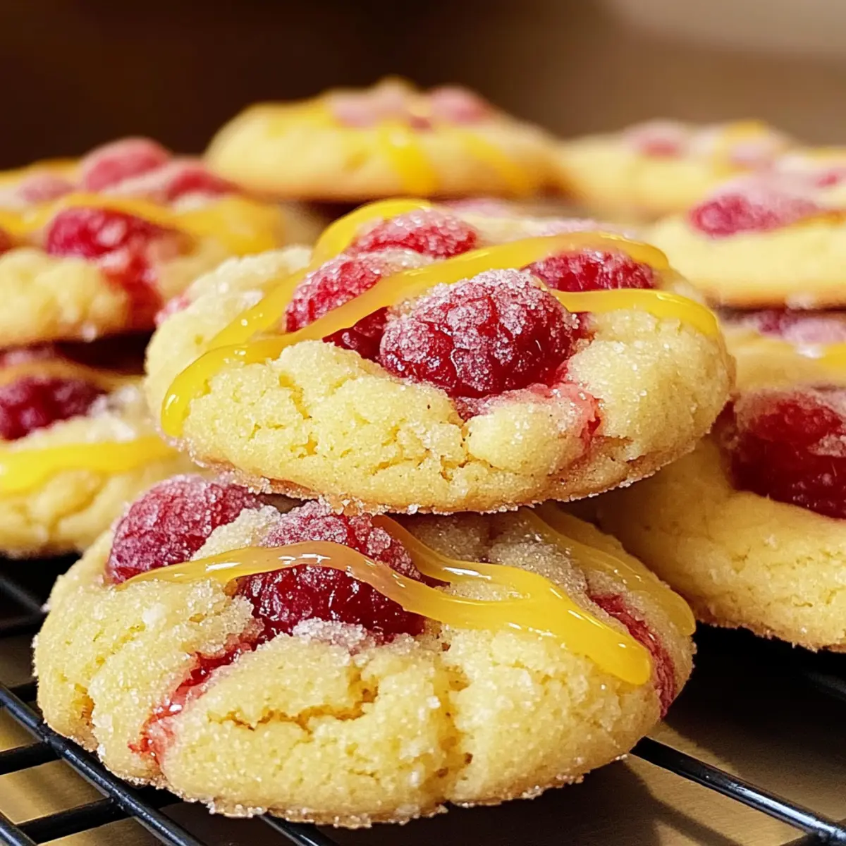 Jede Küche hat ihre Geheimnisse, und eines meiner Lieblingsrezepte ist die Kombination aus spritziger Zitrone und saftigen Himbeeren in Form von Zitronen-Himbeerkeksen. Diese kleinen Köstlichkeiten haben nicht nur eine unwiderstehlich chewy Konsistenz, sondern bringen mit ihrem frischen Geschmack auch einen Hauch Sommer auf jeden Tisch. Die Zubereitung dieser Kekse ist denkbar einfach, was sie zu einem perfekten Blickfang bei gemütlichen Nachmittagen oder festlichen Anlässen macht. Noch besser: Sie sind eine fantastische Möglichkeit, mit frischen Zutaten zu experimentieren und können im Voraus zubereitet werden. Neugierig, wie du diese süßen Snacks selbst backen kannst? Lass uns direkt loslegen! Warum wird dieses Rezept deine Sinne begeistern? Frische Zutaten: Die Kombination aus spritziger Zitrone und saftigen Himbeeren sorgt für ein einmaliges Geschmackserlebnis, das die Sinne belebt. Einfachheit: Mit wenigen grundlegenden Zutaten und Schritt-für-Schritt-Anweisungen ist das Backen dieser Kekse ein Kinderspiel. Vielseitigkeit: Verwende andere Beeren oder füge weiße Schokolade hinzu, um die Kekse nach deinem Geschmack zu variieren. Perfekt für jede Gelegenheit: Ob bei einer Teeparty oder als Nachtisch zum Familienessen, diese Kekse kommen immer gut an. Vorratshaltung: Bereite sie im Voraus zu und friere sie ein für spontane Back-Momente! Zitronen-Himbeerkeks-Zutaten Für den Teig: Ungesalzene Butter – sorgt für Fülle und Feuchtigkeit im Teig; sollte weich sein für eine einfachere Verarbeitung. Zucker – liefert die nötige Süße und trägt zur luftigen Textur bei. Große Eier – binden alle Zutaten und sorgen für Feuchtigkeit; bei Zimmertemperatur verwenden für optimale Ergebnisse. Vanilleextrakt – verstärkt den Geschmack mit warmen, aromatischen Noten; setze auf reinen Vanilleextrakt für das beste Ergebnis. Zitronenschale – liefert intensives Zitronenaroma; frisch gerieben ist der Schlüssel für maximale Frische. Frischer Zitronensaft – bringt Säure und Helligkeit in die Kekse; wesentlich für das zitronige Profil. Allzweckmehl – stellt die Hauptstruktur der Kekse dar; unentbehrlich für die gewünschte Textur. Backpulver – wirkt als Treibmittel und sorgt für eine weiche, luftige Textur. Salz – balanciert die Süße und hebt den Gesamteindruck hervor. Hakbare gefrorene Himbeeren – sorgen für süß-saftige Akzente in jedem Biss; gefroren halten für eine optimale Textur bis zur Verarbeitung. Optionale Glasur: Puderzucker – süßt und verleiht eine glatte Textur, ideal zum Drizzeln. Frischer Zitronensaft – verdünnt die Glasur und gibt noch mehr Zitronengeschmack hinzu. Diese Zutaten für die Zitronen-Himbeerkekse bieten alles, was du für ein unvergessliches Backerlebnis benötigst! Step-by-Step Instructions for Zitronen-Himbeerkekse Step 1: Zutaten vorbereiten & Ofen vorheizen Sammle alle Zutaten und benötigten Utensilien in deiner Küche. Heize den Ofen auf 190°C (375°F) vor und lege die Backbleche mit Backpapier aus, um ein Ankleben der Kekse zu verhindern. Step 2: Butter und Zucker cremig rühren In einer großen Schüssel die weiche, ungesalzene Butter mit dem Zucker auf mittlerer Stufe 3 bis 5 Minuten lang cremig schlagen, bis die Mischung hell und fluffig ist. Diese Schritt sorgt für die Grundlage der köstlichen Zitronen-Himbeerkekse. Step 3: Eier und Aromastoffe hinzufügen Füge die großen Eier nacheinander hinzu und rühre nach jeder Zugabe gut um. In diesem Schritt auch den Vanilleextrakt, die Zitronenschale und den frischen Zitronensaft hinzufügen und alles nur kurz vermengen, bis die Zutaten gerade so kombiniert sind. Step 4: Trockene Zutaten mischen In einer separaten Schüssel das Allzweckmehl, Backpulver und Salz gut vermischen. Diese Mischung sorgt für Struktur und das perfekte Aufgehen der Zitronen-Himbeerkekse. Step 5: Teig mischen Gieße die trockenen Zutaten nach und nach in die feuchten Zutaten und vermische sie bei niedriger Geschwindigkeit, bis alles gerade so zusammenkommt. Achte darauf, nicht zu lange zu rühren, damit die Kekse weich und zäh bleiben. Step 6: Himbeeren vorsichtig unterheben Füge nun die gehackten gefrorenen Himbeeren hinzu und falte sie mit einem Teigschaber vorsichtig unter den Teig. Achte darauf, die Himbeeren nicht zu zerdrücken, um die frischen Fruchtakzente in den Zitronen-Himbeerkeksen zu bewahren. Step 7: Portionieren und backen Nimm etwa 1,5 bis 2 Esslöffel des Teigs und setze sie mit genügend Abstand auf die vorbereiteten Backbleche. Backe die Kekse für 10 bis 12 Minuten, bis die Ränder goldbraun sind und die Mitte fest aussieht. Step 8: Abkühlen lassen Lass die Kekse nach dem Backen 5 Minuten auf den Backblechen abkühlen, bevor du sie vorsichtig auf ein Kuchenrost zum vollständigen Abkühlen überträgst. So bleiben sie schön weich und zäh. Step 9: Optionale Glasur vorbereiten Für die Glasur mische den Puderzucker mit etwas frischem Zitronensaft, bis eine glatte und fließfähige Konsistenz entsteht. Diese Glasur wird den Keksen den letzten Schliff geben. Step 10: Glasur (optional) auftragen Träufle die Glasur oder tauche die Kekse in die Mischung und lass sie auf einem Kuchengitter für 15 bis 20 Minuten trocknen, damit die Glasur fest werden kann. Step 11: Lagern Platziere die abgekühlten Kekse in einem luftdichten Behälter bei Raumtemperatur, wo sie bis zu 3 Tage frisch bleiben. Alternativ kannst du sie auch einfrieren, um sie für später aufzubewahren. Tipps für die besten Zitronen-Himbeerkekse Butter richtig vorbereiten: Stelle sicher, dass die Butter weich, aber nicht geschmolzen ist, um ein Verbreiten der Kekse zu verhindern. Luftigkeit im Teig: Schlage Butter und Zucker gründlich cremig, um Luft einzuarbeiten; so werden die Kekse schön leicht und fluffig. Nicht übermixen: Mische die trockenen Zutaten nur leicht unter die feuchten, um eine zarte Textur der Zitronen-Himbeerkekse zu erhalten. Einfrieren der Himbeeren: Verwende gefrorene Himbeeren, um ein 