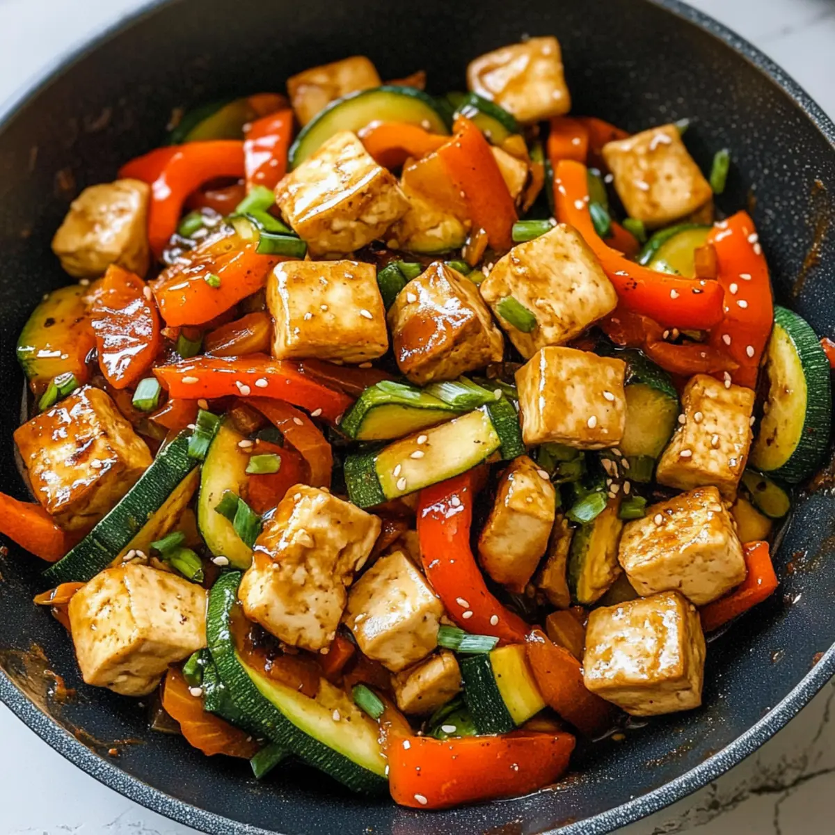 Als ich letztens in meinem Kühlschrank nach frischen Zutaten stöberte, entdeckte ich eine wunderschöne Zucchini, die nur darauf wartete, zum Leben erweckt zu werden. Dieses Zucchini Pfannengericht mit Tofu vereint die knackigen Aromen von Zucchini, Karotten und Paprika, gekrönt von einer schmackhaften Soße, die einfach alles zusammenbringt. Es ist nicht nur blitzschnell zubereitet, sondern auch eine gesunde und nahrhafte Option, die perfekt für stressige Wochentage oder Meal Prep ist. Mit einer Vielzahl von Anpassungsmöglichkeiten, einschließlich der Wahl zwischen Tofu, Garnelen oder Huhn, wird sich jeder in dieses farbenfrohe Gericht verlieben. Neugierig, wie man diesen einfachen, aber köstlichen Genuss zaubert? Lass uns gemeinsam in die Zubereitung eintauchen!
