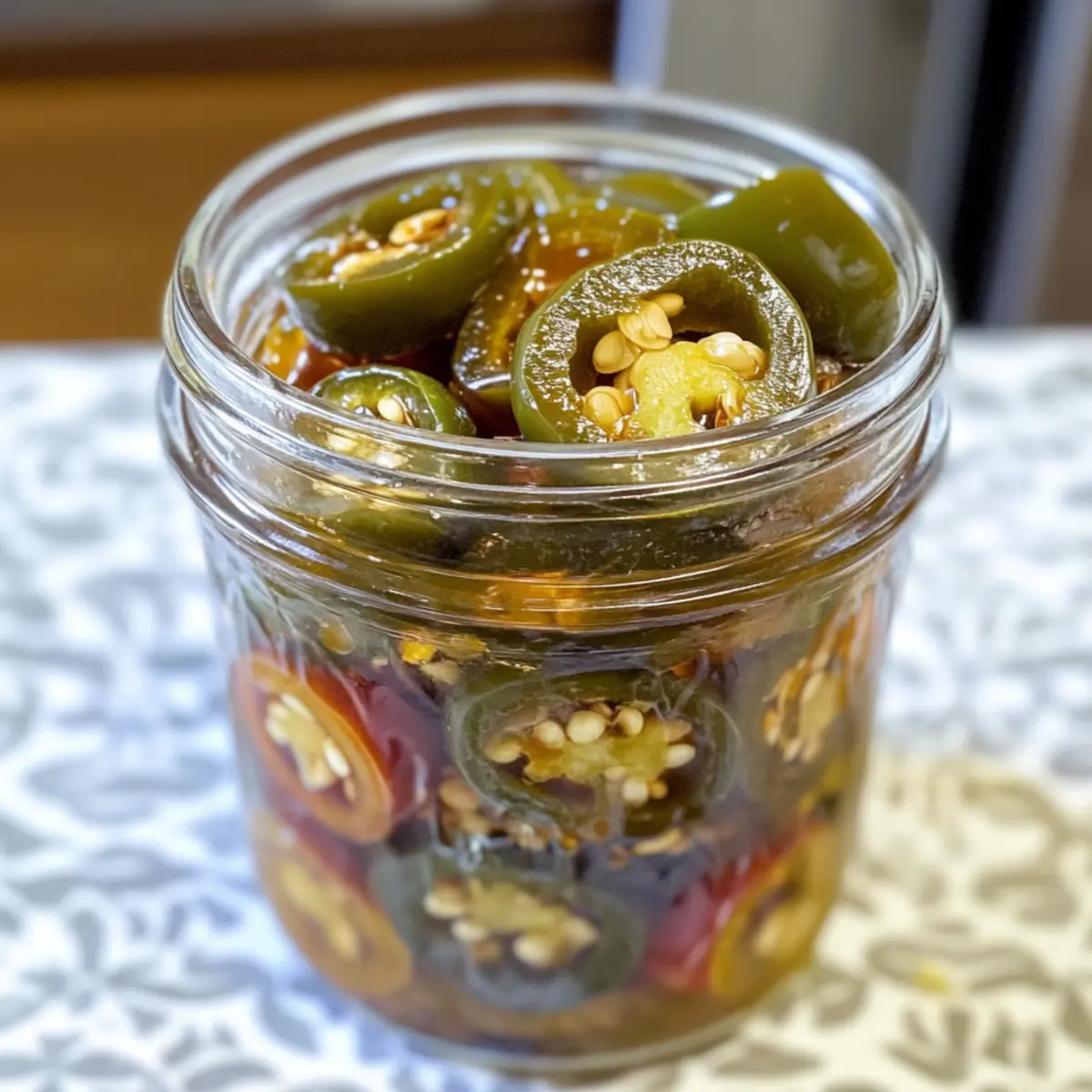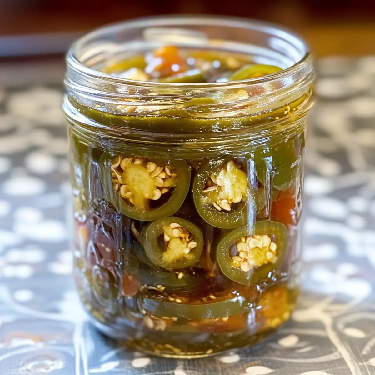 Ein knisterndes Geräusch durchbricht die Stille in meiner Küche, als ich die frischen Jalapeños unter Wasser halte. Die Vorfreude auf dieses Rezept für Zucker eingelegte Jalapeños, auch bekannt als Cowboy Candy, wächst mit jedem Schritt. Diese verlockenden kleinen Leckereien bieten genau die richtige Balance zwischen Süße und Schärfe und verwandeln jede Mahlzeit in ein geschmackliches Abenteuer. Egal, ob als würziger Belag auf Ihren Burgern oder als überraschender Snack, sie sind eine perfekte Möglichkeit, überschüssige Jalapeños aus dem Garten zu konservieren. Die Zubereitung ist schnell und einfach, und nachdem Sie sie einmal selbst gemacht haben, werden Sie nie wieder auf Fertigprodukte zurückgreifen wollen. Neugierig auf den Zauber dieser bunten Köstlichkeit? Lassen Sie uns gemeinsam in das Rezept eintauchen! Warum werden Sie dieses Rezept lieben? Einfachheit: Das Rezept ist unkompliziert und erfordert nur grundlegende Kochfähigkeiten, die jeder meistern kann. Vielseitigkeit: Diese Zucker eingelegten Jalapeños passen wunderbar zu verschiedenen Gerichten – seien es Burger, Sandwiches oder sogar als Topping für gegrilltes Fleisch. Herzhafter Geschmack: Die Kombination aus Süße und Schärfe verwandelt jedes Gericht in ein Geschmackserlebnis! Lange Haltbarkeit: Ideal, um überschüssige Jalapeños aus dem Garten zu konservieren – richtig eingemacht, halten sie ein ganzes Jahr. Gesellige Freude: Perfekt für Partys oder als kreatives Geschenk. Überraschen Sie Familie und Freunde mit diesen köstlichen Leckereien! Wenn Sie noch mehr über das Einmachen und die vielseitigen Einsatzmöglichkeiten von Zucker eingelegten Jalapeños erfahren möchten, bleibt kein Wunsch offen! Zucker eingelegte Jalapeños Zutaten Für die Sirupbasis • Jalapeños – Sorgen für den Hauptgeschmack und die Schärfe; frische, feste Paprika wählen und andere scharfe Sorten sind als Ersatz möglich. • Apfelessig – Fügt Säure und einen fruchtigen Kick hinzu; kann bei Bedarf durch weißen Essig ersetzt werden. • Zucker – Süßt den Sirup und balanciert die Schärfe der Jalapeños; herkömmlicher Zucker sorgt für die richtige Konsistenz. • Kurkuma – Verleiht Farbe und einen erdigen Hauch; kann weggelassen werden, wenn nicht vorhanden. • Selleriesamen – Bringt eine milde, kräuterige Note; Senfkörner können als Ersatz genutzt werden. • Granulierter Knoblauch – Verstärkt die herzhaften Noten des Sirups; frischer Knoblauch kann verwendet werden, die Menge jedoch anpassen. • Gemahlener Cayennepfeffer – Fügt einen scharfen Kick hinzu; nach Belieben anpassen oder weglassen für eine mildere Variante. Für die Einmachung • Sterilisierte Gläser – Achten Sie darauf, dass die Gläser und Deckel vor der Verwendung sterilisiert werden. • Wasser für das Wasserbad – Stellt sicher, dass die Gläser korrekt verarbeitet werden; mindestens 2 Zoll Wasser über den Gläsern. Mit diesen Zutaten sind Sie bereit, Ihre persönlichen Zucker eingelegten Jalapeños zu zaubern! Schritt-für-Schritt-Anleitung für Zucker eingelegte Jalapeños Schritt 1: Paprika vorbereiten Waschen Sie die frischen Jalapeños gründlich unter fließendem Wasser und lassen Sie sie gut abtropfen. Um Hautreizungen zu vermeiden, tragen Sie Handschuhe. Schneiden Sie die Jalapeños in ⅛ bis ¼ Zoll dicke Scheiben. Achten Sie darauf, die Kappen zu entfernen, um den vollen Geschmack der Zucker eingelegten Jalapeños zu entfalten. Schritt 2: Die Lake ansetzen In einem großen Topf bringen Sie den Apfelessig, Zucker, Kurkuma, Selleriesamen, Granuliertem Knoblauch und Cayennepfeffer zum Kochen. Rühren Sie gelegentlich um, bis sich der Zucker vollständig aufgelöst hat. Reduzieren Sie die Hitze und lassen Sie die Mischung etwa 5 Minuten sanft köcheln, bis sie leicht eingedickt ist. Achten Sie darauf, die Aromen gut zu vermischen. Schritt 3: Jalapeños kochen Fügen Sie die geschnittenen Jalapeños mit der Lake in den Topf hinzu. Lassen Sie alles zusammen für etwa 4 Minuten sanft köcheln, bis die Jalapeño-Scheiben weich und durchscheinend werden. Die Farben sollten lebendig sein und die Aromen werden intensiv. Rühren Sie die Mischung vorsichtig, um sicherzustellen, dass die Jalapeños gleichmäßig mit der Lake überzogen sind. Schritt 4: Paprika in Gläser füllen Verwenden Sie einen Schöpflöffel, um die Jalapeños vorsichtig in sterilisierten Gläsern zu füllen. Achten Sie darauf, mindestens ½ Zoll Platz zum Rand des Glases zu lassen. Füllen Sie jedes Glas gleichmäßig mit den noch warmen Jalapeños und der fertigen Lake. Dies stellt sicher, dass die Wärme die Gläser erhitzen und die Konservierung unterstützen kann. Schritt 5: Gläser verschließen Kochen Sie die Lake erneut für 6 Minuten, um sicherzustellen, dass sie richtig eindickt. Gießen Sie die heiße Lake über die Jalapeños in den Gläsern und wischen Sie die Ränder der Gläser gründlich ab, um sicherzustellen, dass keine Rückstände den Verschluss beeinträchtigen. Setzen Sie die verschlossenen Deckel auf die Gläser und ziehen Sie diese fest an. Schritt 6: Einmachprozess Stellen Sie die Gläser in einen Einkochtopf, der mit mindestens 2 Zoll Wasser bedeckt ist. Bringen Sie das Wasser zum Kochen und lassen Sie die Gläser für 15 Minuten bei mittlerer Hitze einkochen. Überprüfen Sie, ob Anpassungen an der Kochzeit für Ihre Höhenlage nötig sind, damit die Zucker eingelegten Jalapeños optimal haltbar sind. Schritt 7: Abkühlen Nach dem Einkochen nehmen Sie die Gläser vorsichtig aus dem Wasserbad und lassen Sie sie bei Raumtemperatur für 12 bis 24 Stunden abkühlen. Achten Sie darauf, dass die Deckel gut abdichten, indem Sie nach dem Abkühlen die Mitte jedes Deckels drücken – wenn er nachgibt, ist der Verschluss nicht sicher. Genießen Sie die Sicherheit Ihrer selbstgemachten Zucker eingelegten Jalapeños! Vorausplanen mit Zucker eingelegten Jalapeños Diese Zucker eingelegten Jalapeños sind perfekt für die effiz