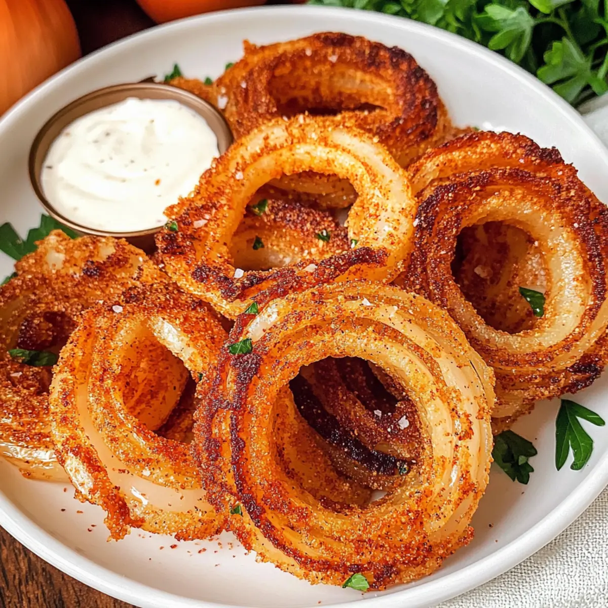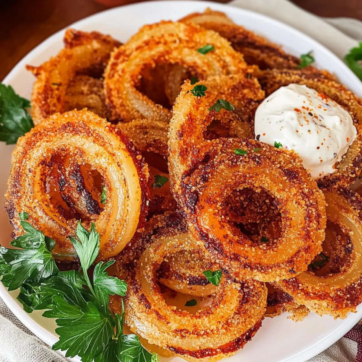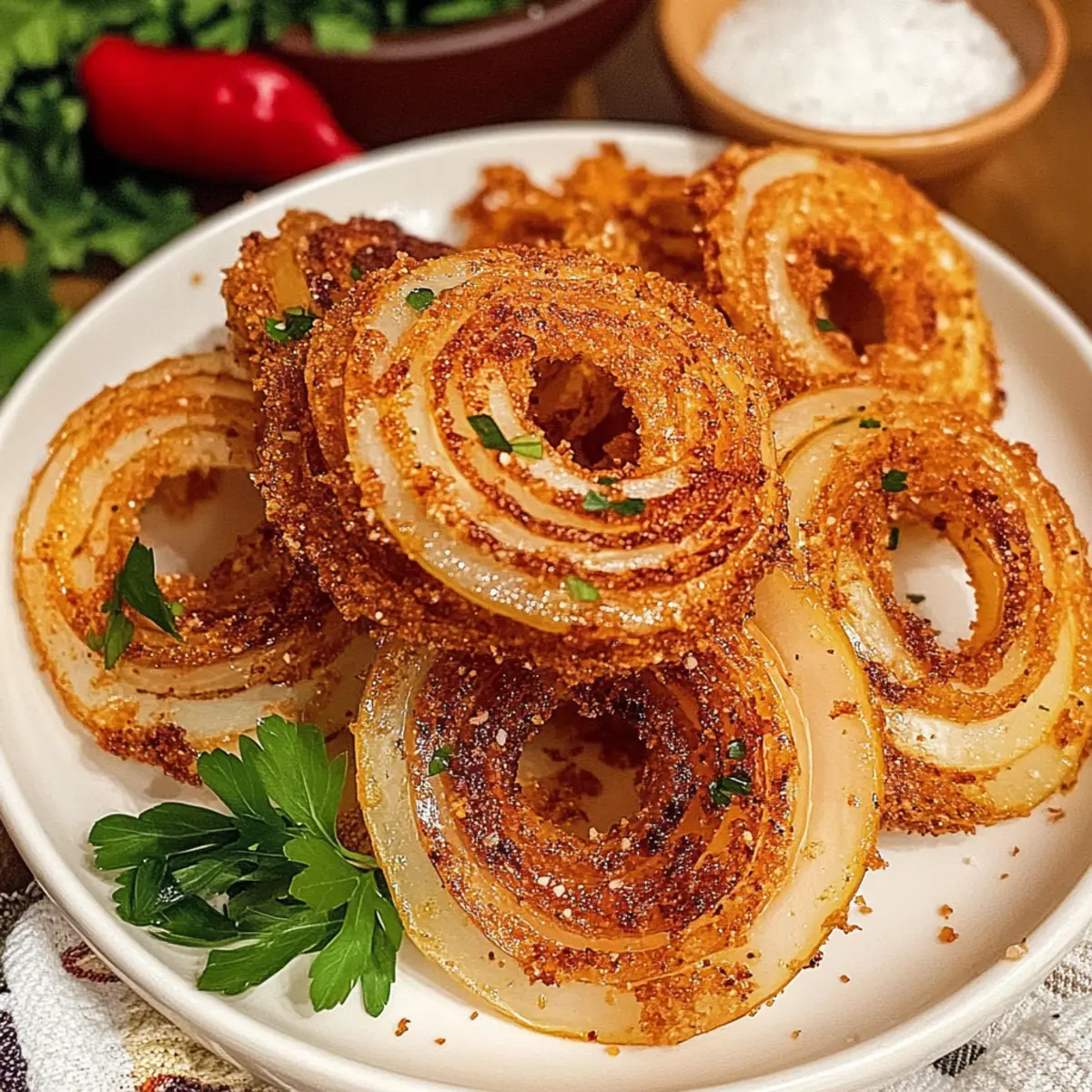 Ich kann gar nicht anders, als beim Gedanken an diese knusprigen Zwiebelringchips ein bisschen vor Freude zu strahlen! Diese köstliche Kreation bringt die Aromen von klassischen Zwiebelringen mit der unwiderstehlichen Knusprigkeit von Parmesan-Crisps zusammen. Mit nur wenigen Zutaten, darunter frisch geriebener Parmesan und zarteste Zwiebeln, sind diese Zwiebelringchips nicht nur ein Traum für jeden Snackliebhaber, sondern auch eine perfekte Wahl für alle, die sich low carb oder keto ernähren. Die einfache Zubereitung und die heiße Aus dem Ofen Entstehung machen sie zu einem schnellen Genuss, der sich hervorragend als gesunde Snackalternative zu Fast Food eignet. Bist du bereit, deine Snack-Gewohnheiten zu revolutionieren? Lass uns gemeinsam in die Welt der Zwiebelringchips eintauchen! Warum sind Zwiebelringchips so unwiderstehlich? Knusprigkeit, die begeistert: Diese Zwiebelringchips sind ein wahrer Genuss und bieten die perfekte Kombination aus zartem Zwiebelgeschmack und knusprigem Parmesan. Einfachheit und Schnelligkeit: Mit nur wenigen Zutaten und einer einfachen Zubereitung sind sie in kürzester Zeit fertig – ein echter Gewinn für jede Küche! Gesundheitliche Vorteile: Low Carb und keto-freundlich, eignen sich diese Chips perfekt für alle, die auf ihre Ernährung achten, ohne auf Genuss verzichten zu wollen. Vielseitigkeit: Ob als Snack für den Filmabend oder als Beilage zu Burgern – die Einsatzmöglichkeiten sind grenzenlos! Crowd-Pleaser: Diese Chips sind bei Freunden und Familie immer ein Hit und machen jeden Snack-Moment zu etwas Besonderem. Zutaten für Zwiebelringchips • Für die Chips Parmesankäse – sorgt für den unverwechselbaren Geschmack und die perfekte Knusprigkeit; frisch gerieben ist am besten. Gelbe Zwiebeln – sind die Hauptzutat für den herzhaften Geschmack; normale Zwiebeln sind dafür geeignet. Avocadoöl – wird zum Bestreichen der Zwiebeln verwendet und fügt gesunde Fette hinzu, die beim Knusprigwerden helfen. Paprika – verleiht Geschmack und Farbe; je nach Vorliebe kann die Menge angepasst werden. Grobes Meersalz – hebt den Geschmack hervor; kann durch normales Salz oder nach Geschmack ersetzt werden. Knoblauchpulver – sorgt für eine tiefere Geschmacksnote; optional und je nach Vorliebe anpassbar. Gewürzsalz – verbessert den Gesamtschmack; kann bei Bedarf durch zusätzliches Salz ersetzt werden. Schwarzer Pfeffer – fügt Tiefe und eine leichte Schärfe hinzu; je nach Geschmack anpassen. Diese Zwiebelringchips sind nicht nur einfach zuzubereiten, sondern auch ein fantastisches Highlight für jeden Snack-Moment! Step-by-Step Instructions für Zwiebelringchips Step 1: Ofen vorheizen Heize deinen Ofen auf 200 °C (400 °F) vor und lege ein großes Backblech mit Backpapier aus. Diese Vorbereitung ist wichtig, damit deine Zwiebelringchips gleichmäßig knusprig werden. Wenn der Ofen heiß ist, bist du bereit, mit der Zubereitung fortzufahren. Step 2: Parmesan verteilen Verteile den frisch geriebenen Parmesankäse gleichmäßig in einer dünnen Schicht auf dem Backpapier. Achte darauf, dass der Käse nicht zu dick ist, damit er beim Backen schön knusprig wird. Dies bildet die Grundlage für deine köstlichen Zwiebelringchips. Step 3: Zwiebeln schneiden Schneide die gelben Zwiebeln in dünne Ringe, etwa ⅙ Zoll dick. Lege die Zwiebelringe gleichmäßig auf den Parmesan, sodass sie sich nicht überlappen. Diese Schichtung ist entscheidend, damit jede Zwiebelringchip den perfekten Geschmack und die richtige Textur erhält. Step 4: Zwiebeln bestreichen Bestreiche die Zwiebelringe großzügig mit Avocadoöl, um sicherzustellen, dass sie gut gewürzt sind und beim Backen goldbraun werden. Das Öl sorgt dafür, dass die Zwiebelringchips knusprig werden und nicht an der Backform haften bleiben. Step 5: Würzen Streue Paprika, grobes Meersalz, Knoblauchpulver, Gewürzsalz und schwarzen Pfeffer gleichmäßig über die Zwiebelringe. Diese Gewürze verleihen den Zwiebelringchips ihren köstlichen Geschmack und machen sie unwiderstehlich. Experimentiere mit den Gewürzen, um deine persönliche Note hinzuzufügen. Step 6: Backen Schiebe das Backblech in den vorgeheizten Ofen und backe die Zwiebelringchips für 25 bis 30 Minuten. Achte darauf, dass sie goldbraun und knusprig sind. Beobachte sie während des Backens, um sicherzustellen, dass sie nicht verbrennen, da die Backzeit je nach Ofen variieren kann. Step 7: Abkühlen lassen Nimm die Zwiebelringchips aus dem Ofen und lasse sie für etwa 10 Minuten auf dem Blech abkühlen. Dies hilft ihnen, ihre knusprige Konsistenz zu bewahren und erleichtert das Brechen in Stücke. Nach dem Abkühlen kannst du sie nach Belieben genießen und teilen! Was passt gut zu Zwiebelringchips? Erlebe, wie die Kombination aus knusprigen Zwiebelringchips und köstlichen Beilagen eine kulinarische Symphonie für deine Geschmacksknospen schafft. Cremiger Dip: Ein klassischer Ranch-Dip, der den würzigen Geschmack der Zwiebelringchips perfekt ergänzt und die Knusprigkeit hervorhebt. Frischer Salat: Ein knackiger gemischter Salat mit einem leichten Dressing sorgt für einen erfrischenden Kontrast zur gehaltvollen Knusprigkeit. BBQ-Sauce: Die süßlich-rauchige Note einer BBQ-Sauce bringt ein köstliches Aroma, das die Zwiebelringchips wunderbar ergänzt. Herzhafte Burger: Reichhaltige Burger sorgen für eine sättigende Mahlzeit, während die Zwiebelringchips als vorheriger Snack für zusätzlichen Genuss sorgen. Crispy Chicken: Serviere die Zwiebelringchips als charmantes Side-Gericht zu knusprigem Hühnchen für eine Kombination, die das Beste aus beiden Welten vereint. Spritziger Weißwein: Ein trockener Weißwein, der die würzige Note der Zwiebelringchips ausbalanciert, rundet das Geschmackserlebnis perfekt ab. Genieße deine Zwiebelringchips mit diesen hervorragenden Begleitern zu einem unvergesslichen Snackabend! Expert Tips für Zwiebelringchips Küchenhelfer nutzen: Verwende einen Mandolinen-Schneider für glei